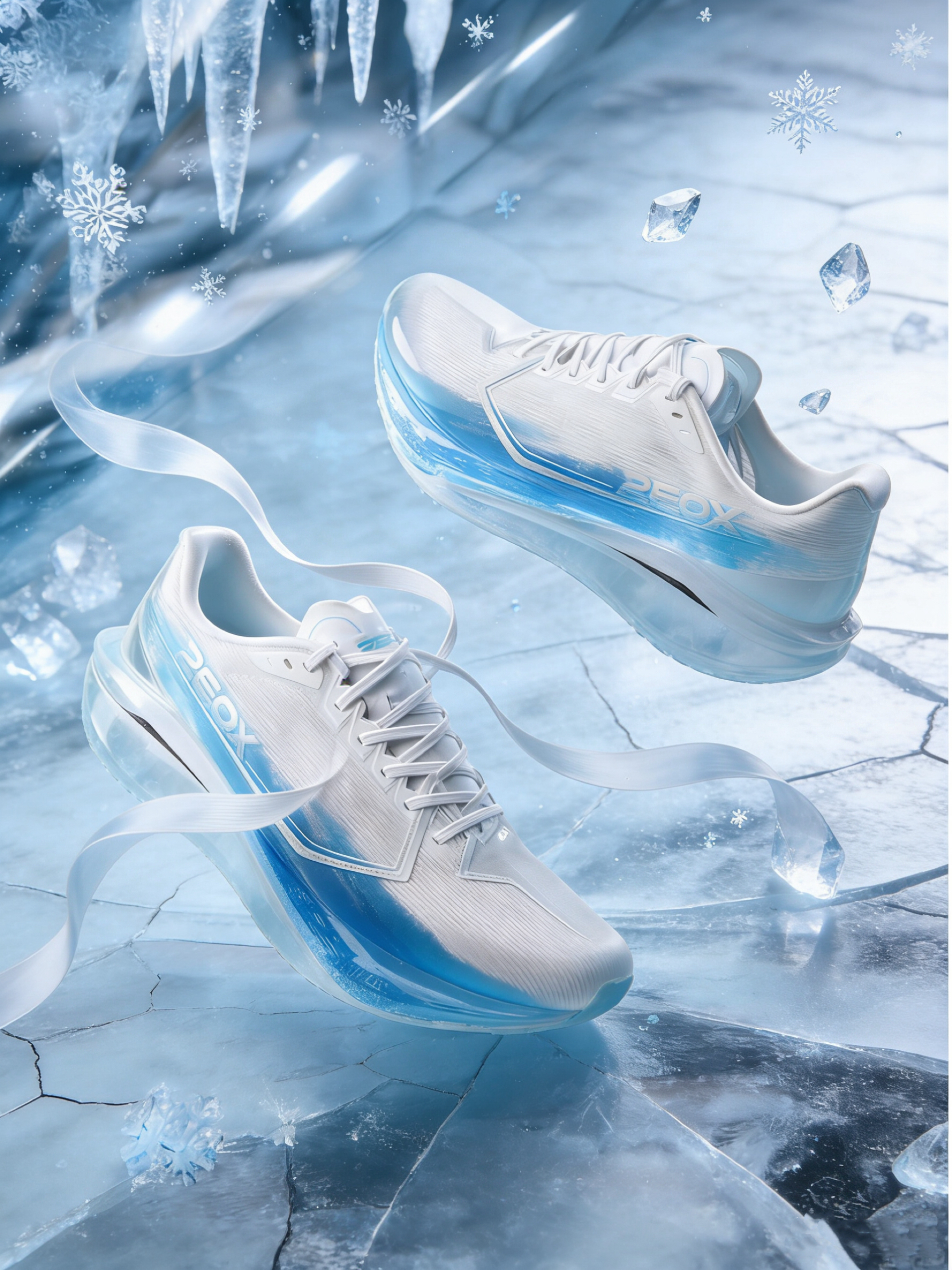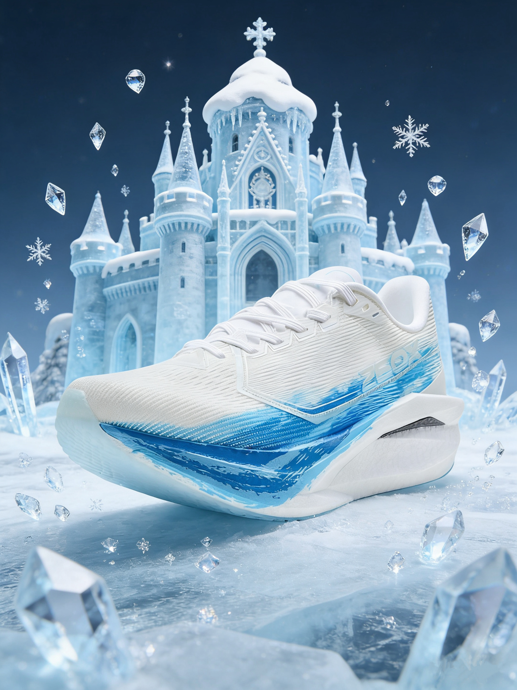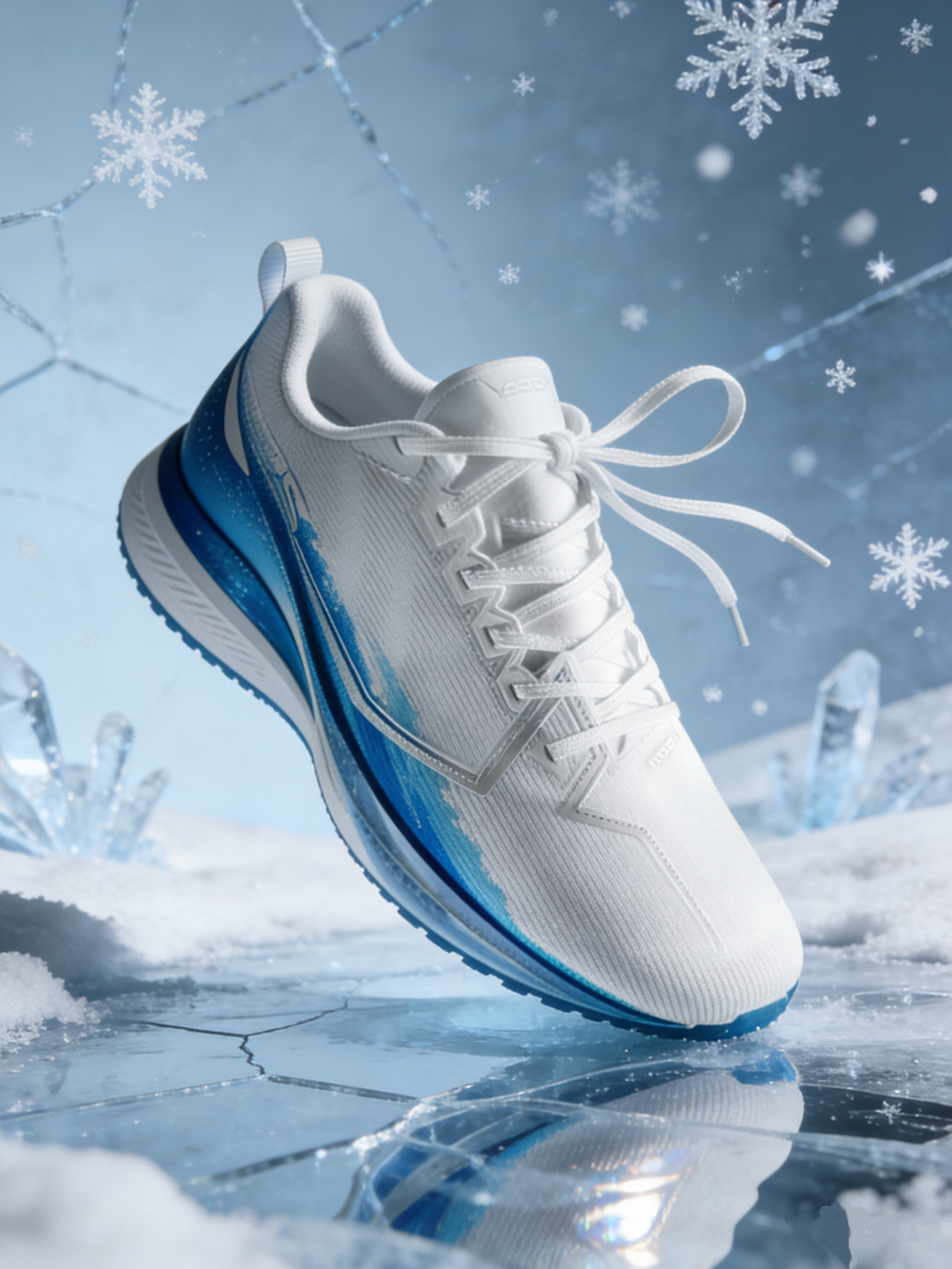 这款冰雪配色颜值拉满, 白蓝渐变搭配冰雪纹理超吸睛; 中底科技加持,缓震和回弹表现亮眼, 适合竞速训练。 但鞋面材质偏薄,低温环境下保暖性不足, 且大底纹路较浅,湿滑路面抓地力稍弱。