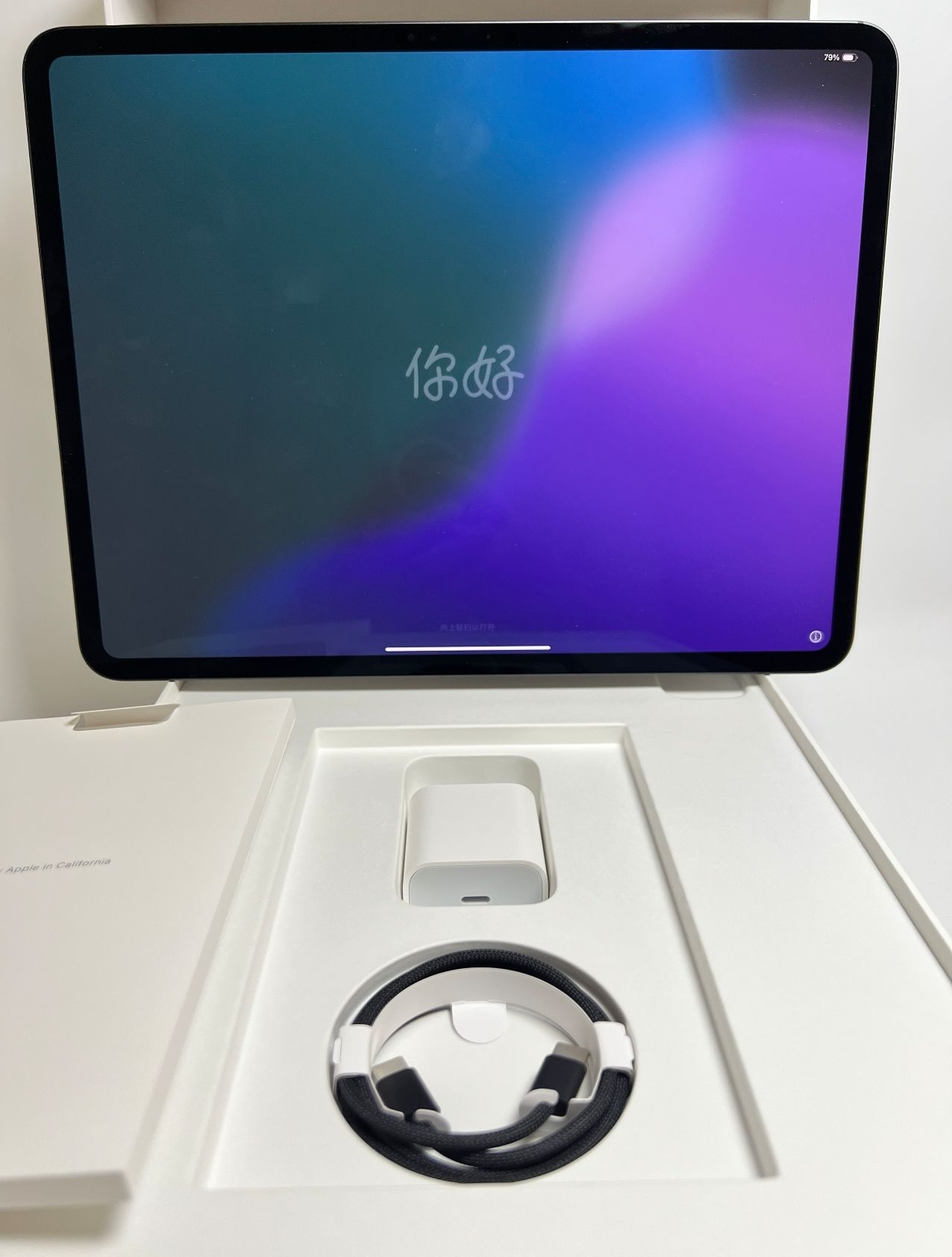 沉浸式开箱我的新生产力工具一一iPad Pro!包装盒极简设计,配件只有充电线+快充头,环保但够用。重点夸夸屏幕,原彩显示+P3广色域,对比我之前的旧平板,色彩层次肉眼可见的丰富;M2芯片启动软件几乎秒开,多任务切换毫无压力。作为一枚重度笔记党+追剧狂魔,已经能预判它会成为我接下来的贴身搭档了!