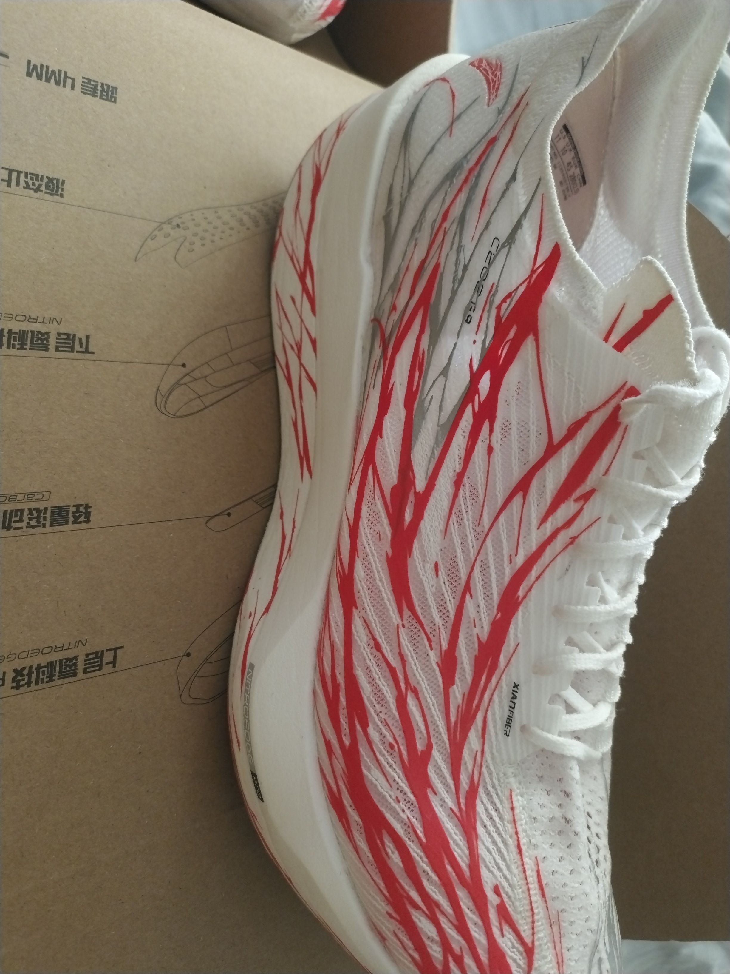 鞋底韧弹鞋面透气性好碳板激进G9一出就是六边形,发货很快,心跳配色算是最好看的,前掌偏硬