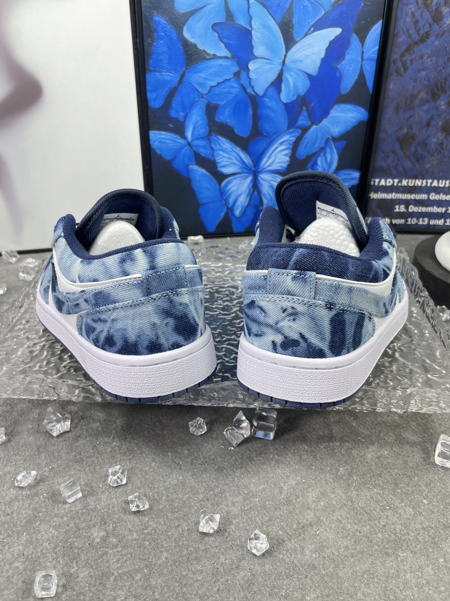 穿这双AJ1 Low扎染丹宁逛了一周,先夸夸它的亮点✨:扎染丹宁的鞋面质感绝了,蓝白渐变的纹理超有层次感,搭牛仔裤、运动裤都超百搭,出门回头率贼高;低帮设计比高帮更轻便,日常走路没束缚感;鞋型做的很正,脚感虽然是AJ1一贯的硬,但穿久了也能适应。
