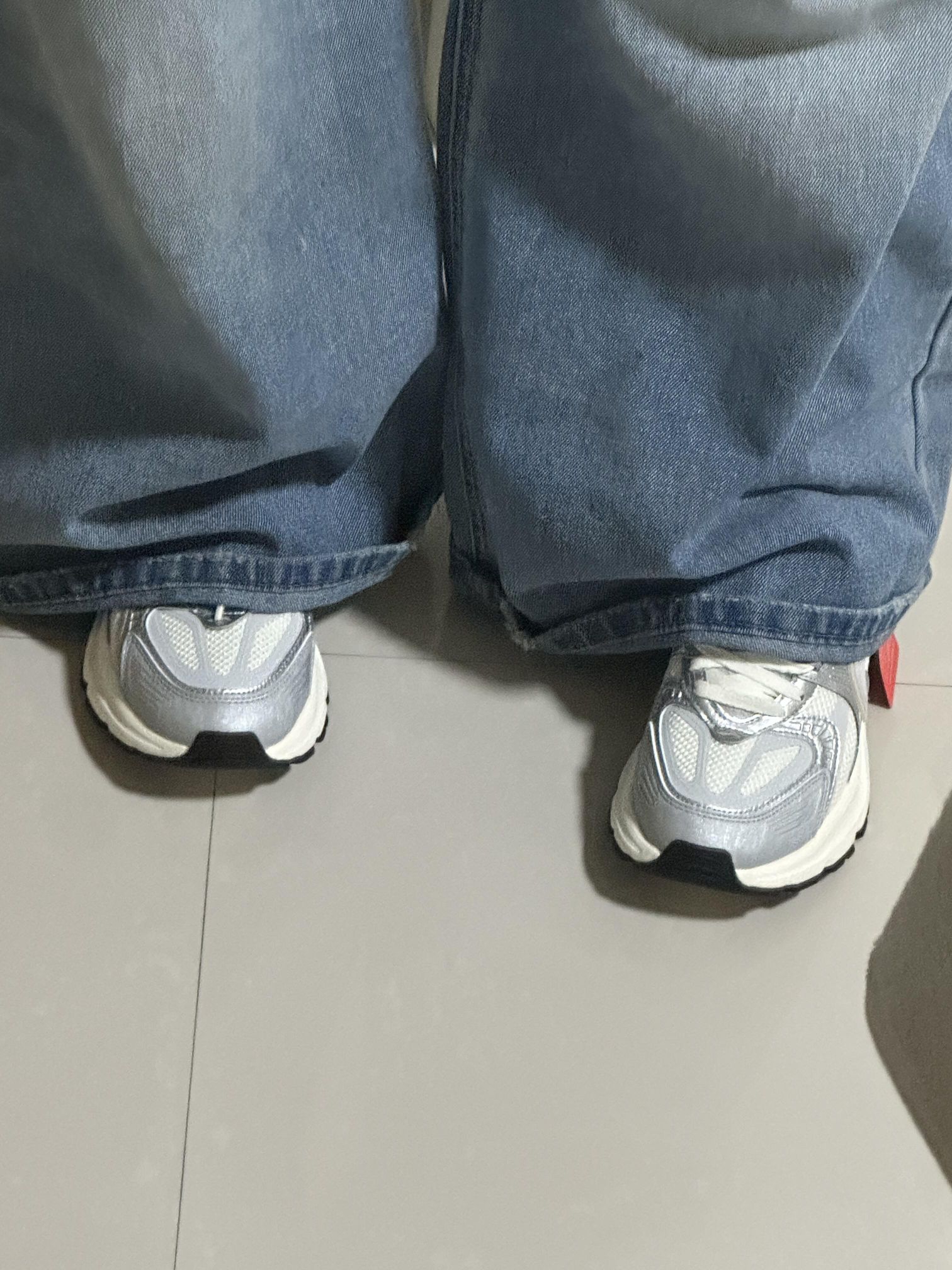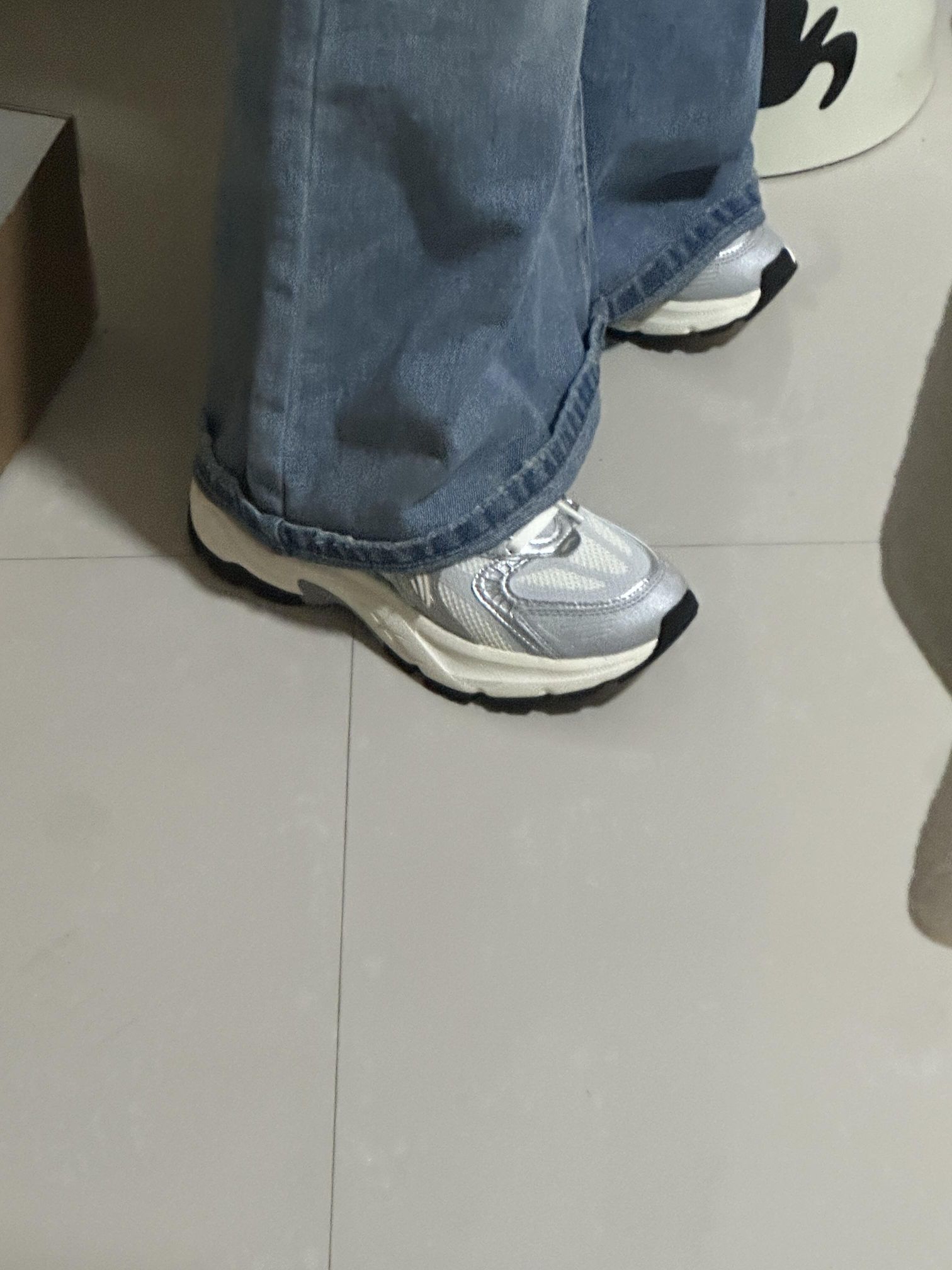 设计风格:走千禧年Y2K复古风,银白配 色搭配多层网布与皮革拼接,线条极具未来感,是当下流行的老爹鞋版型。 功能属性:鞋底做了厚底增高设计,兼具透气网面材质,日常穿搭舒适且有视觉增高效果。 搭配性:适配阔腿裤、运动裤、牛仔装等多种休闲风格。