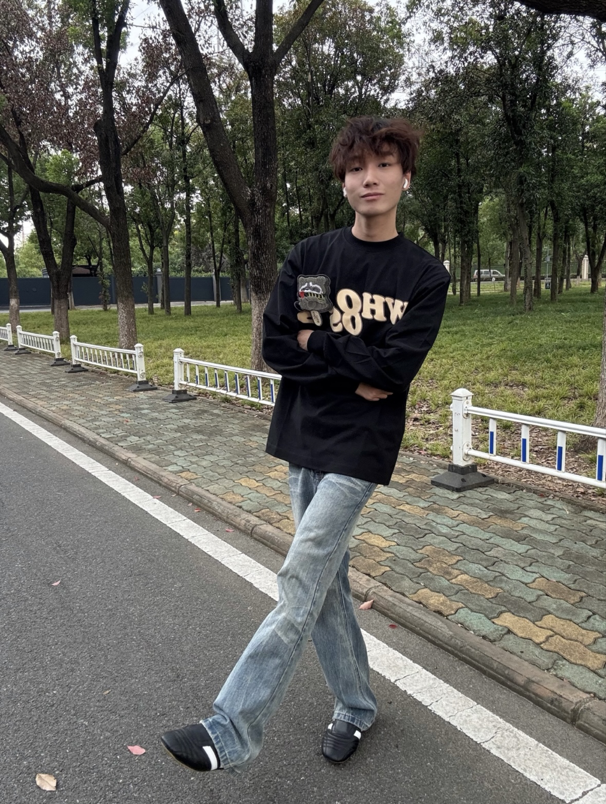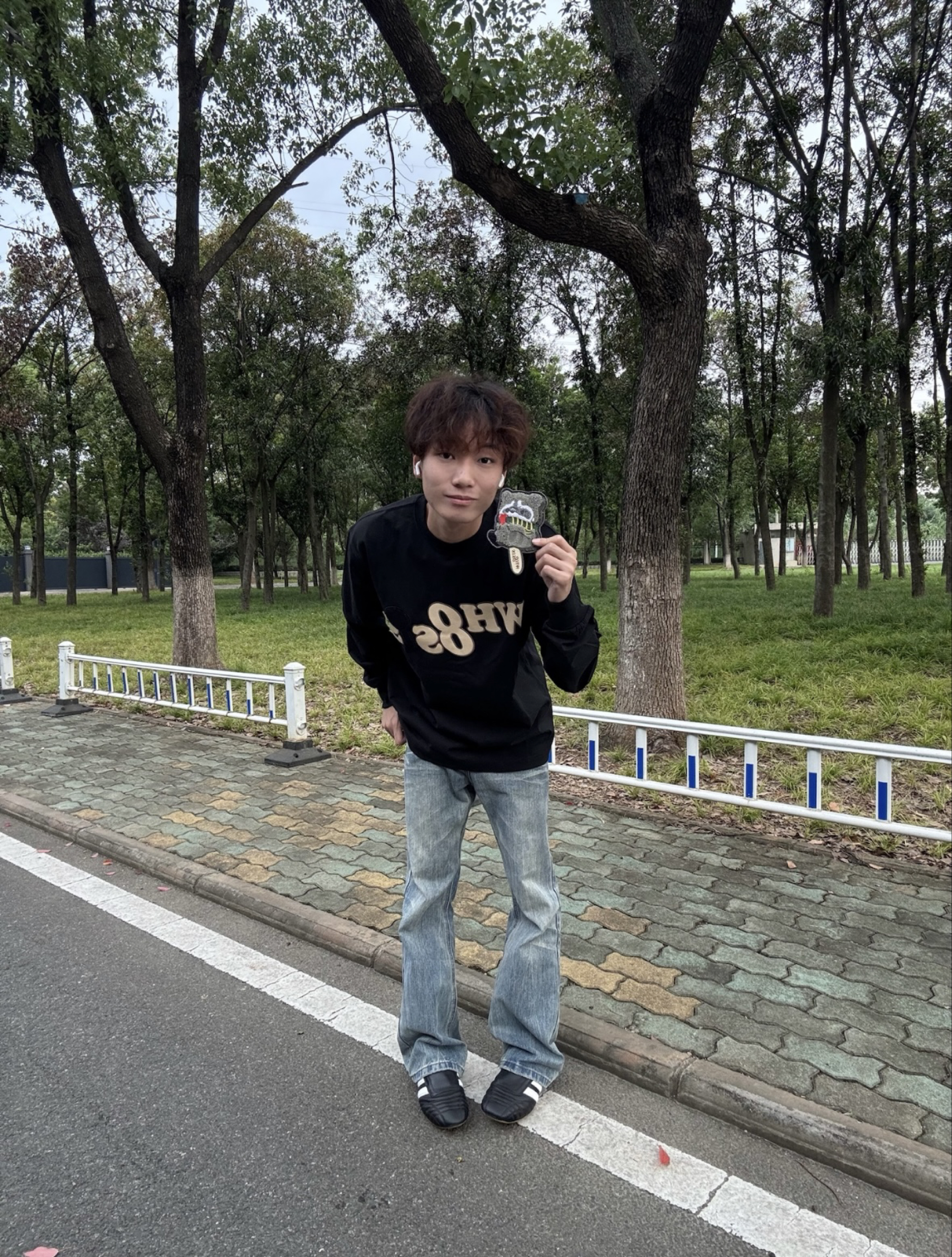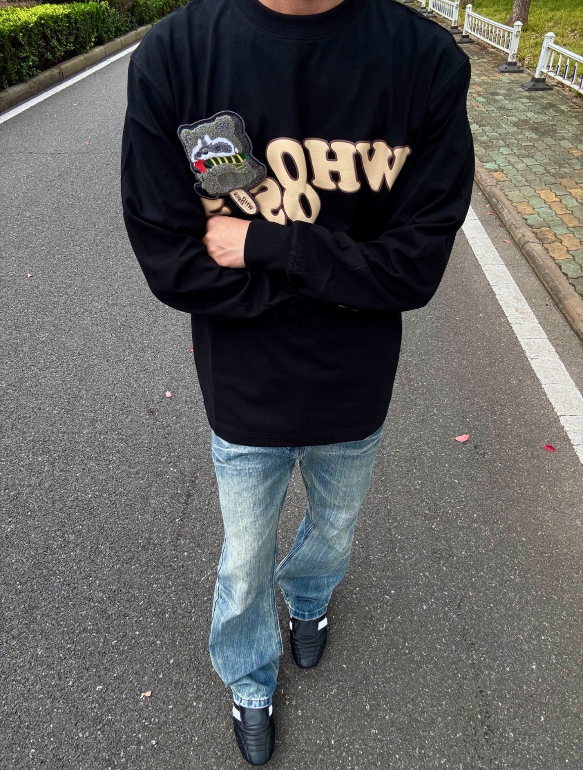 这件宠物雪糕刺绣设计真的太可爱了,刺绣上那个🦝是魔术贴,能撕下来、真的太有设计感了,搭配做旧微喇牛仔裤,是美式复古潮男;配工装裤则秒变街头达人,oversize版型对各种身形友好,松弛感穿搭轻松拿捏。 我的身高是176体重是115穿m码正合适.