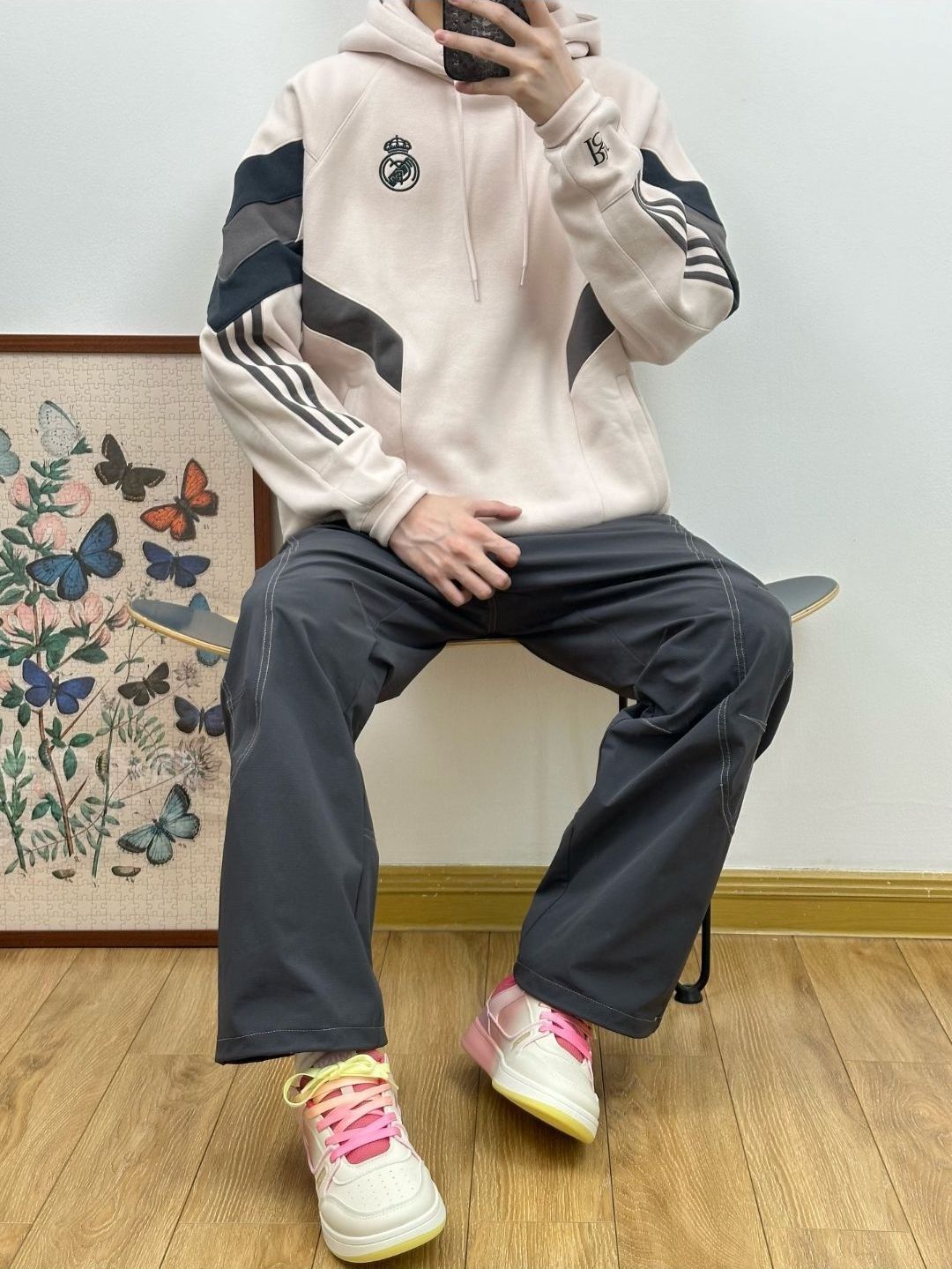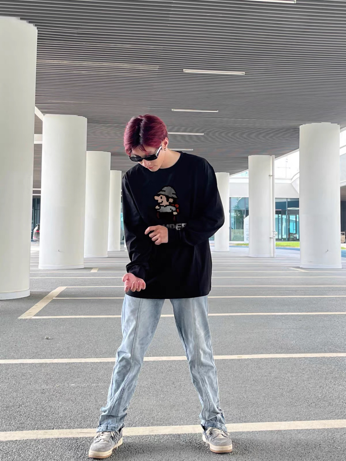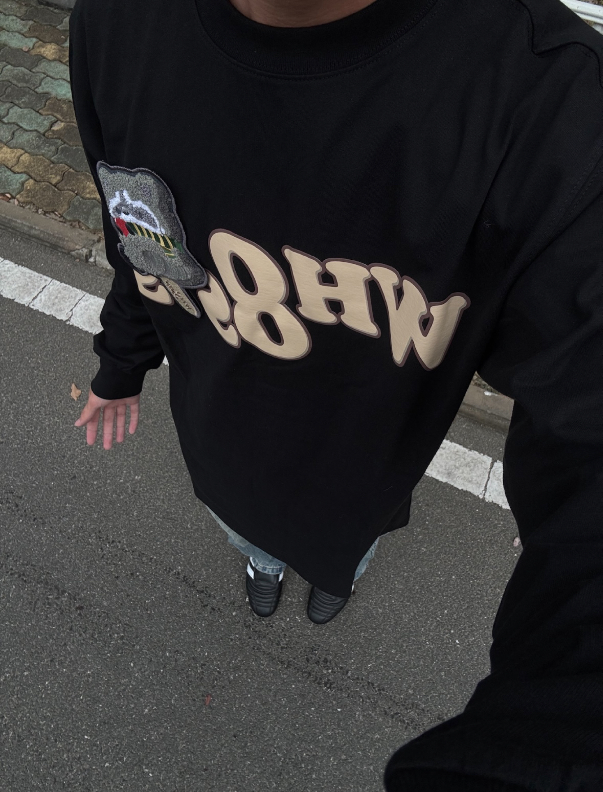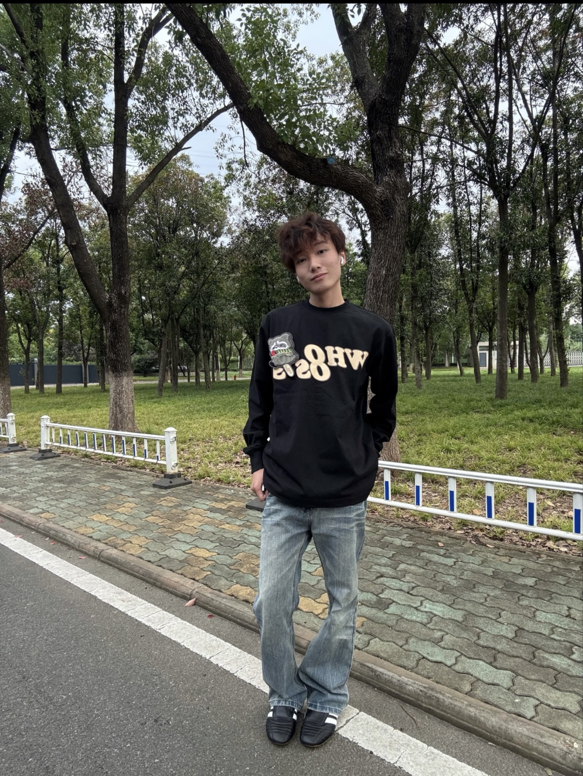 这件宠物雪糕刺绣设计真的太可爱了,刺绣上那个🦝是魔术贴,能撕下来、真的太有设计感了,搭配做旧微喇牛仔裤,是美式复古潮男;配工装裤则秒变街头达人,oversize版型对各种身形友好,松弛感穿搭轻松拿捏。 我的身高是176体重是115穿m码正合适.