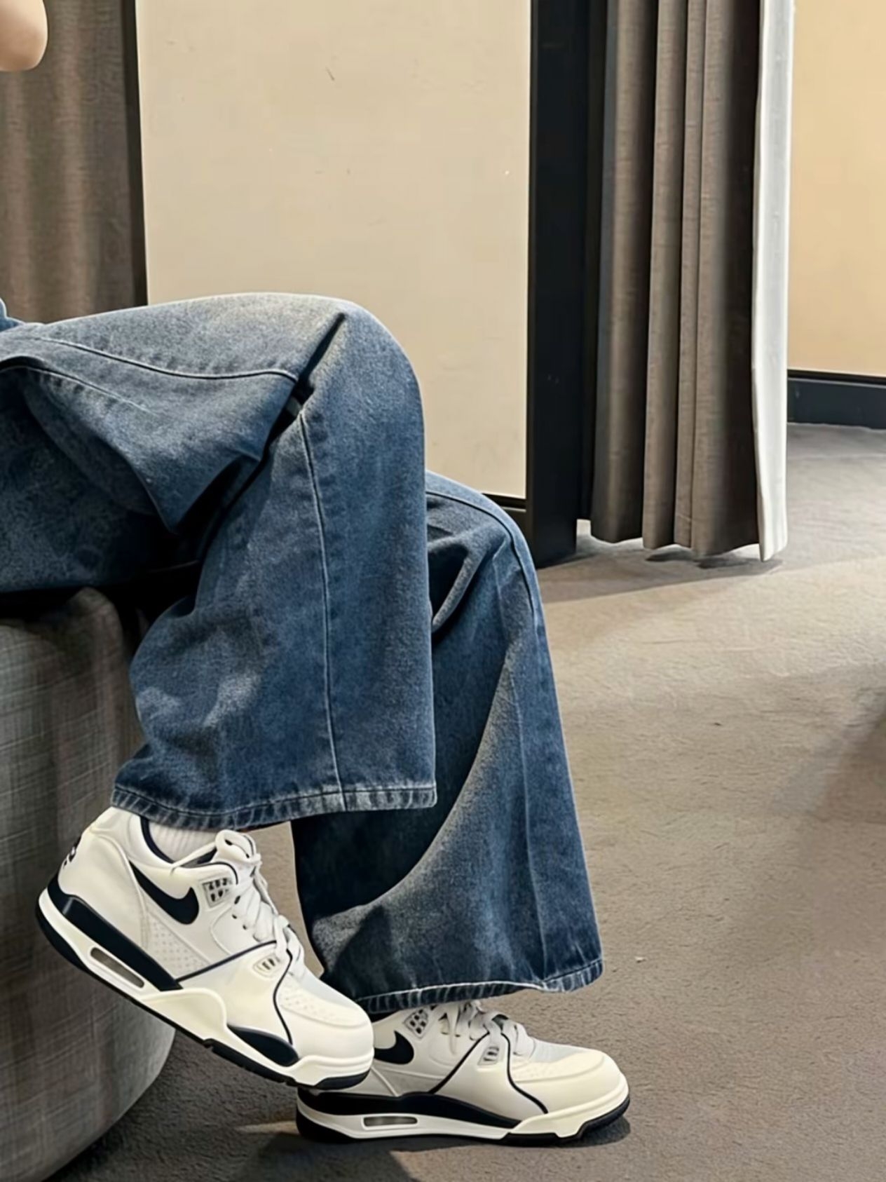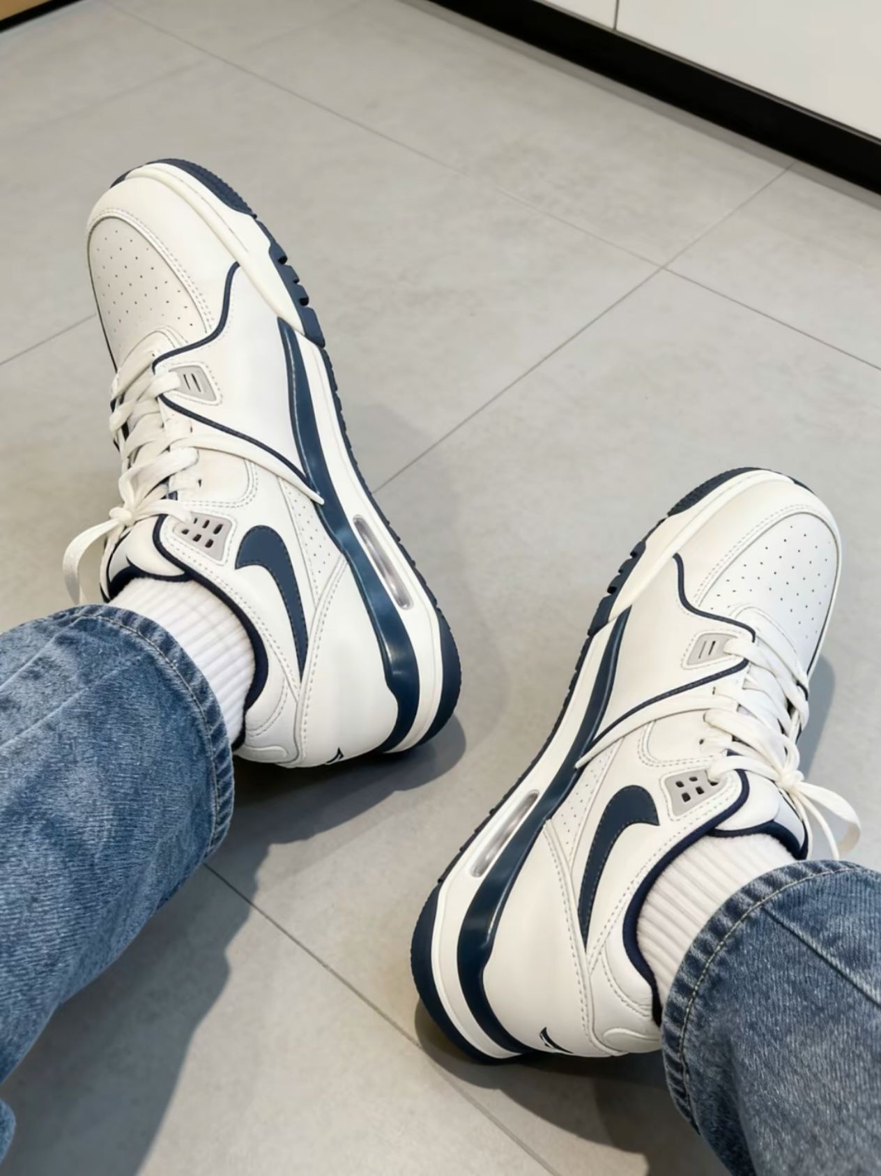 刚上脚的Nike Air Flight 89白蓝配色真的绝了!复古篮球鞋的调调拿捏得死死的,80年代那味儿一下就出来了。脚感软乎乎的,走路逛街都稳得很。白蓝配色太百搭了,配牛仔裤、运动裤都好看,春夏穿出去回头率超高。性价比也很能打,复古鞋爱好者冲就完事了!