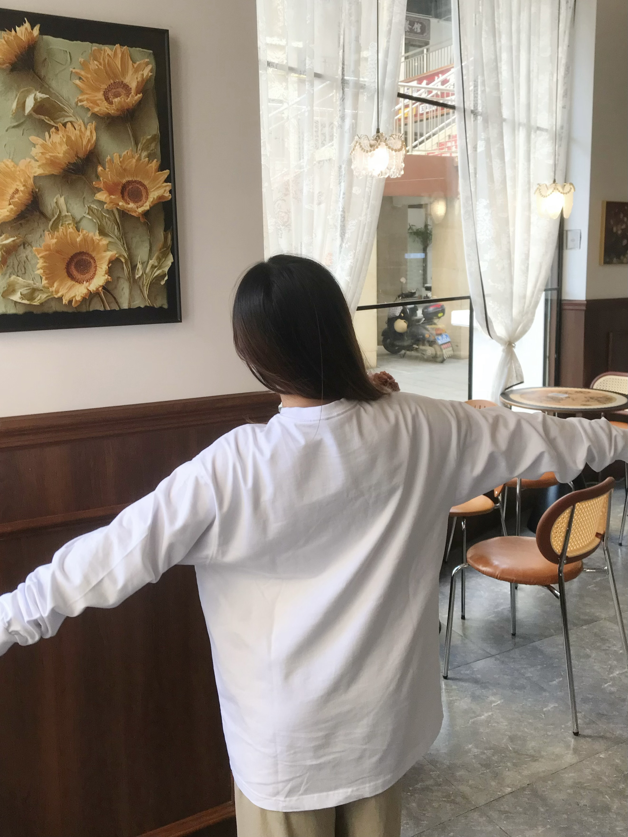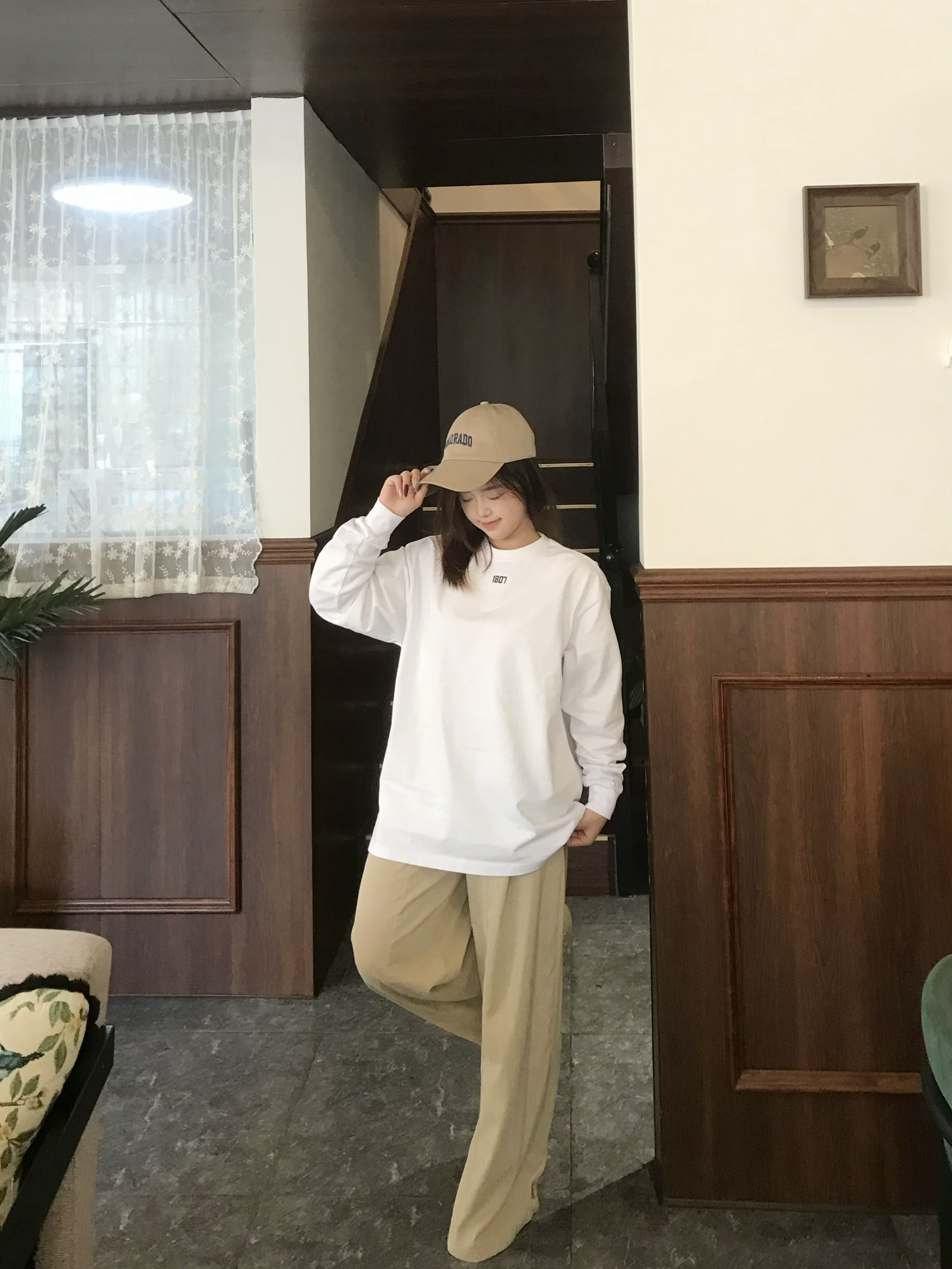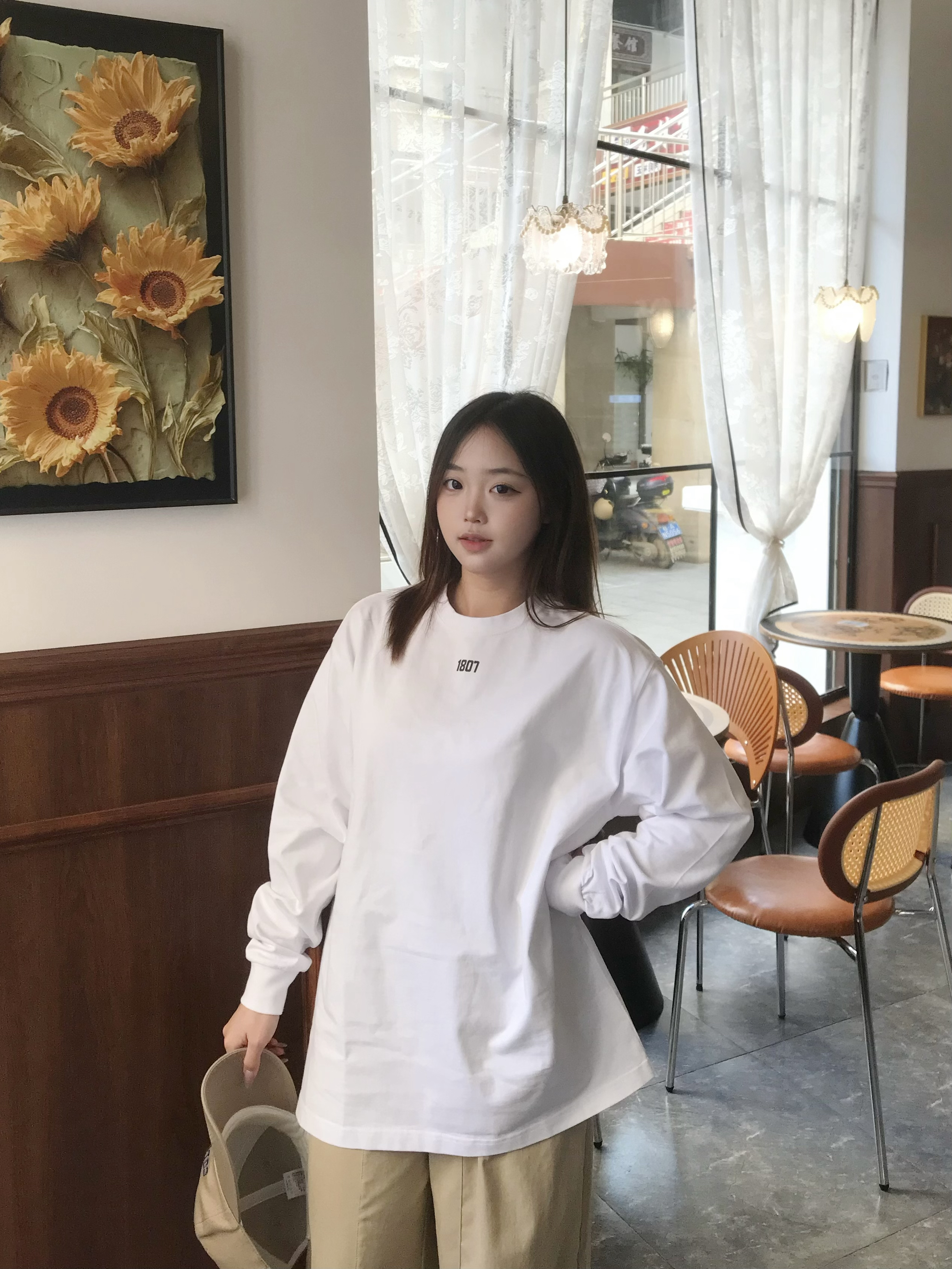 这件1807的白色长袖tee是早秋万能穿搭底板! 面料是透气的棉料 软fufu的贴身穿超舒服 oversize版型包容各种身材 胸口小标低调又有细节感 搭卫衣、搭外套、单穿都不违和 衣柜里缺件基础款的话选它准没错~