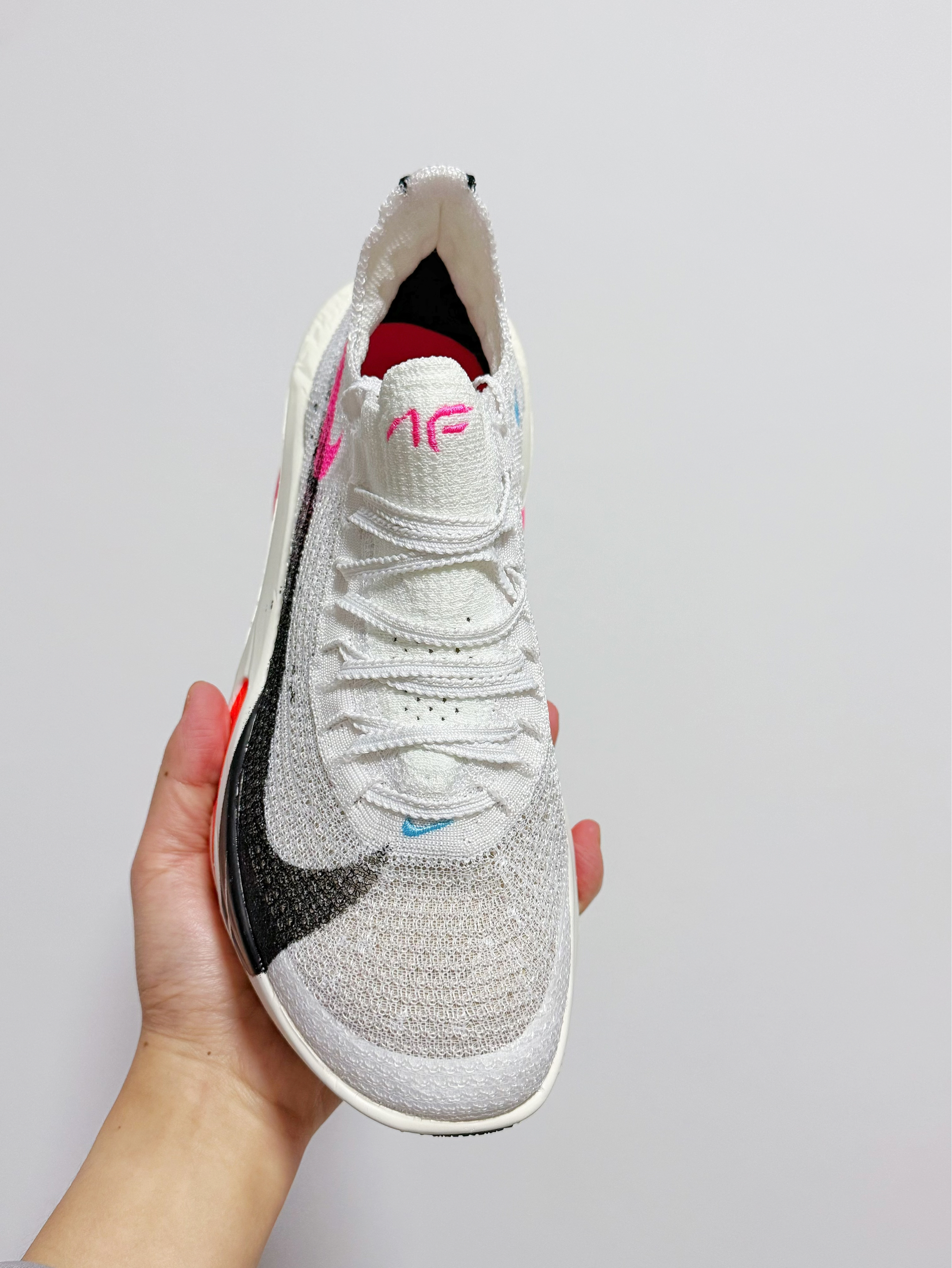 🌈 哈喽大家~ 今年的这双上马限定配色的阿尔法Fly3 大家是否也是觉得好看的呢❓ 这次的配色将 玫红色 黑色 蓝色穿插在一起 整体的色彩搭配程度肉眼看着还是相当和谐的 再加上这个后跟的字母印花 我觉得还好挺有氛围感的 直接就是一个字帅😎
