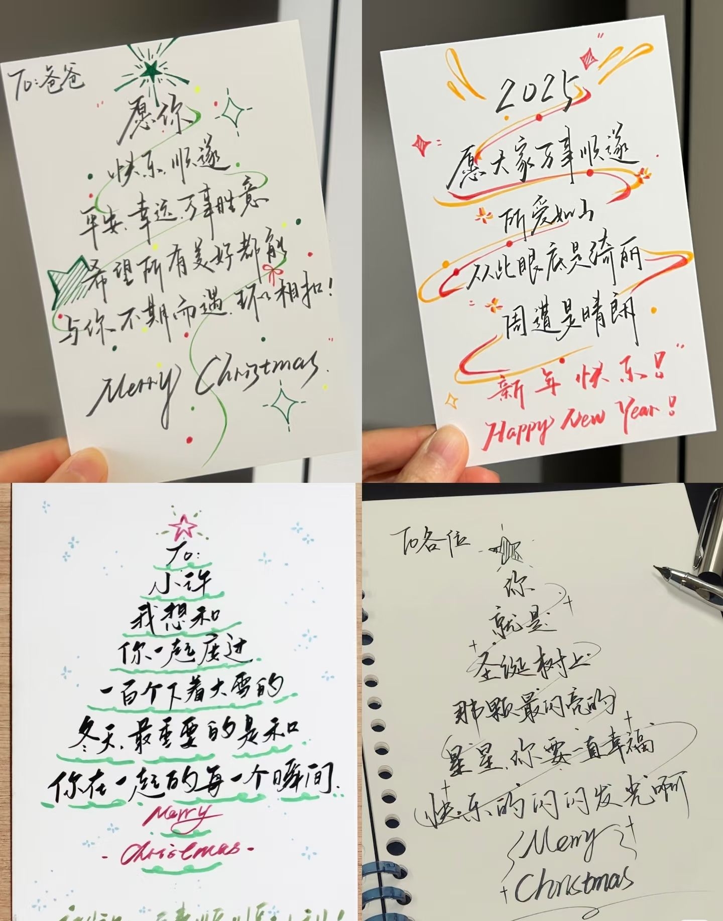 手写圣诞贺卡封神!氛围感直接拉满🎄 谁懂啊!亲手写的圣诞贺卡也太有温度了吧✨ 放弃千篇一律的印刷卡片,用手写文字+创意排版,把心意揉进每一笔里,收到的人直接感动到捂心口~ ✍️手写贺卡的心动文案 ▫️致爸爸:愿你快乐顺遂,平安幸运万事胜意,所有美好都与你不期而遇、环环相扣 ▫️致好友:遇见你的从此凛冬散尽,星河长明,岁岁都像太阳一样有起有落却不失光彩 ▫️致心上人:想和你一起走过一百个...