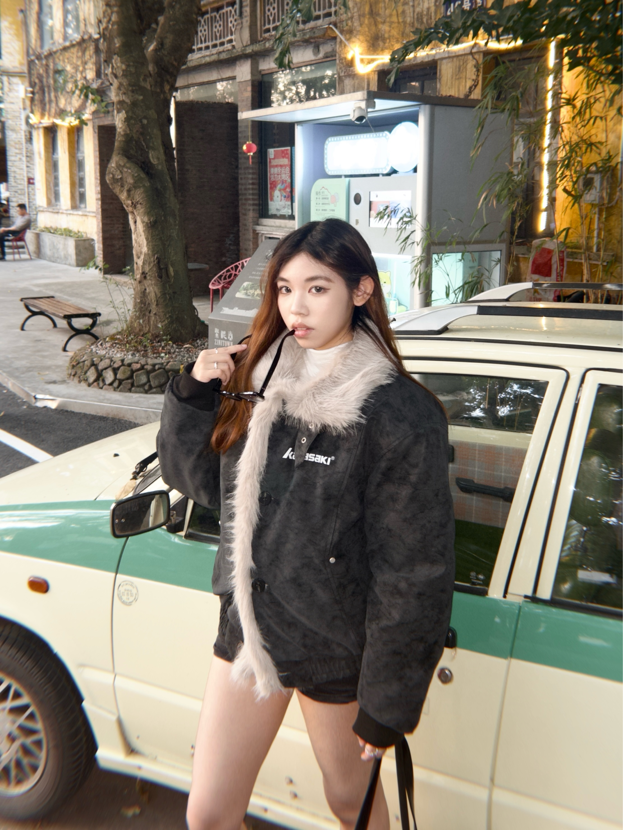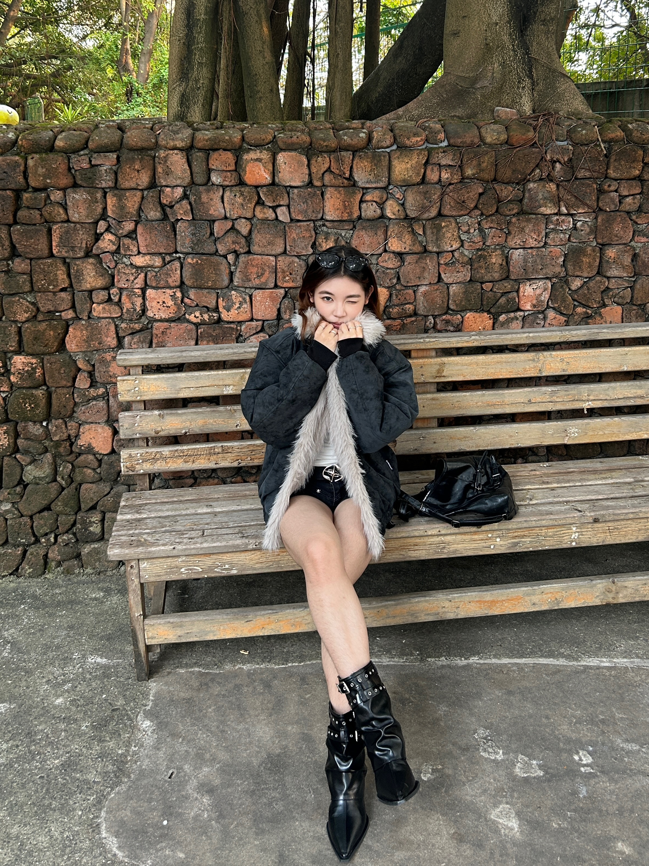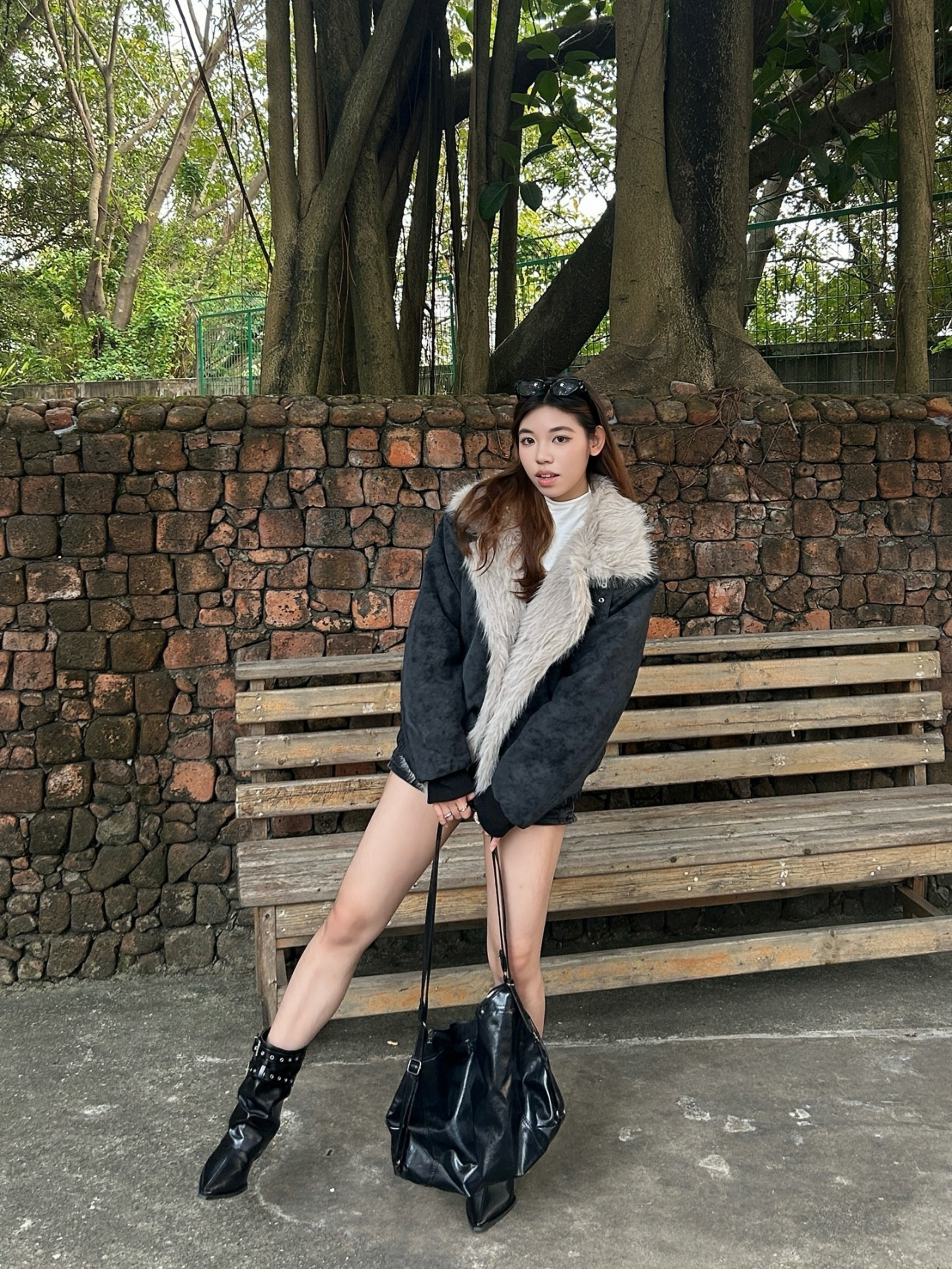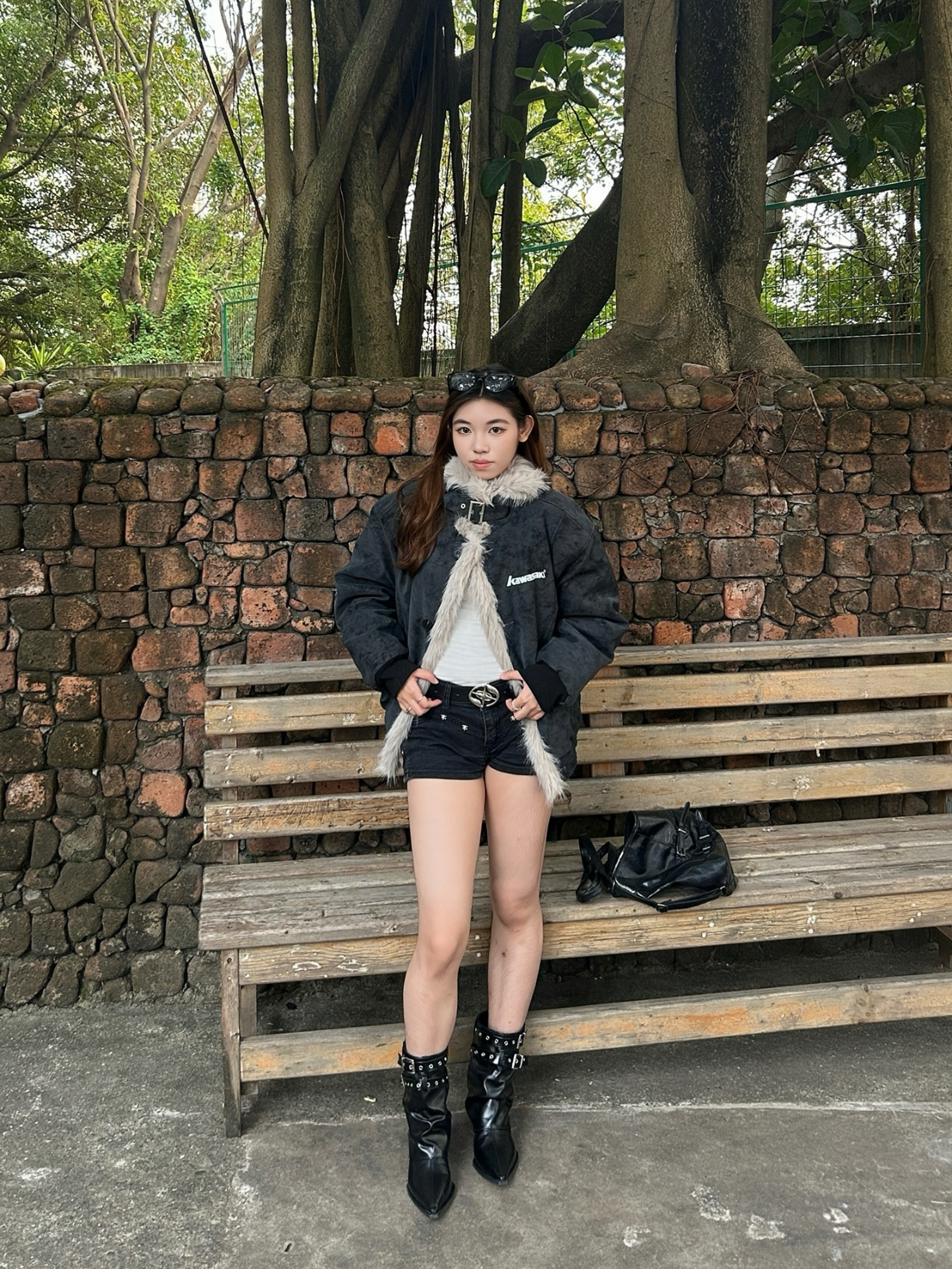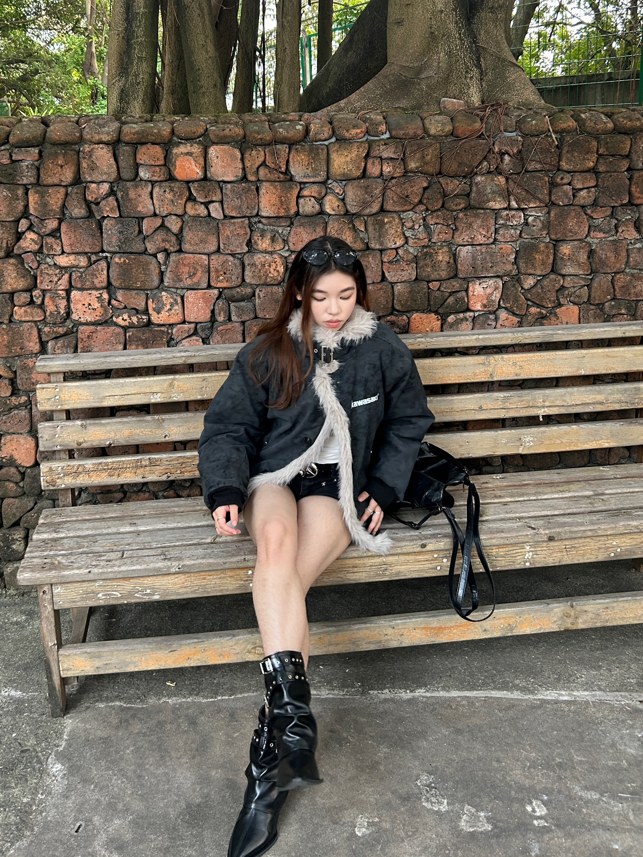 👔Kawasaki座山雕棉服 宽松版型但不显臃肿也不压个子不挑身材🚶♀️➡️ Pu皮面料特别舒服有质感且耐脏 颜色也自带复古感 毛毛蓬松柔软不掉毛 增加了保暖性和层次感🐱 金属扣、字母印花小设计增加了精致度 很保暖 搭配内搭能应对10°C左右的气温🌡️ 毛领能护住颈部有很好的防风效果 日常通勤、户外出行/逛街、探店随意搭配都好看🫧 👖黑色铆钉短裤 拉长腿部线条 利落又好看 👞黑色尖头短靴 细...