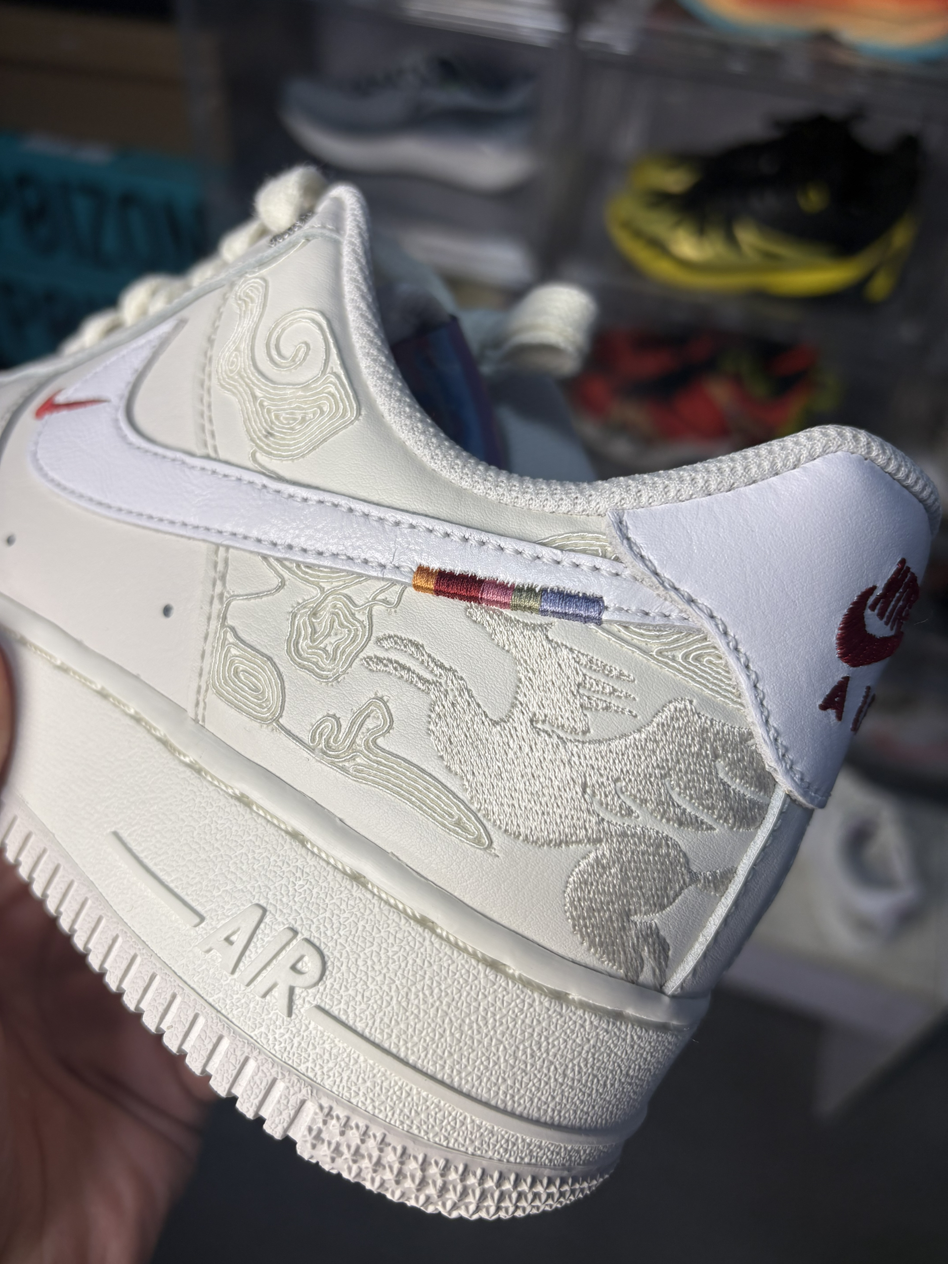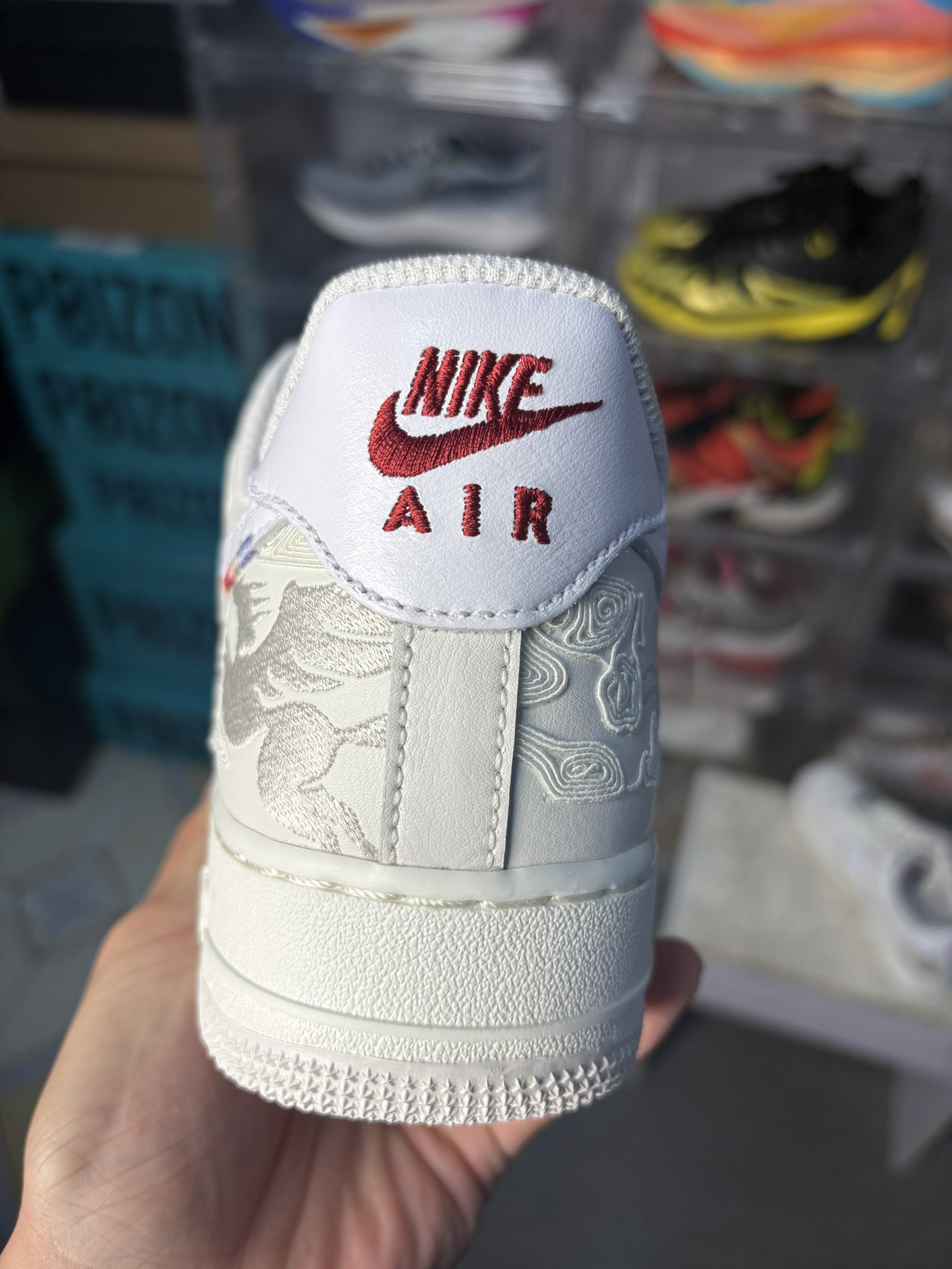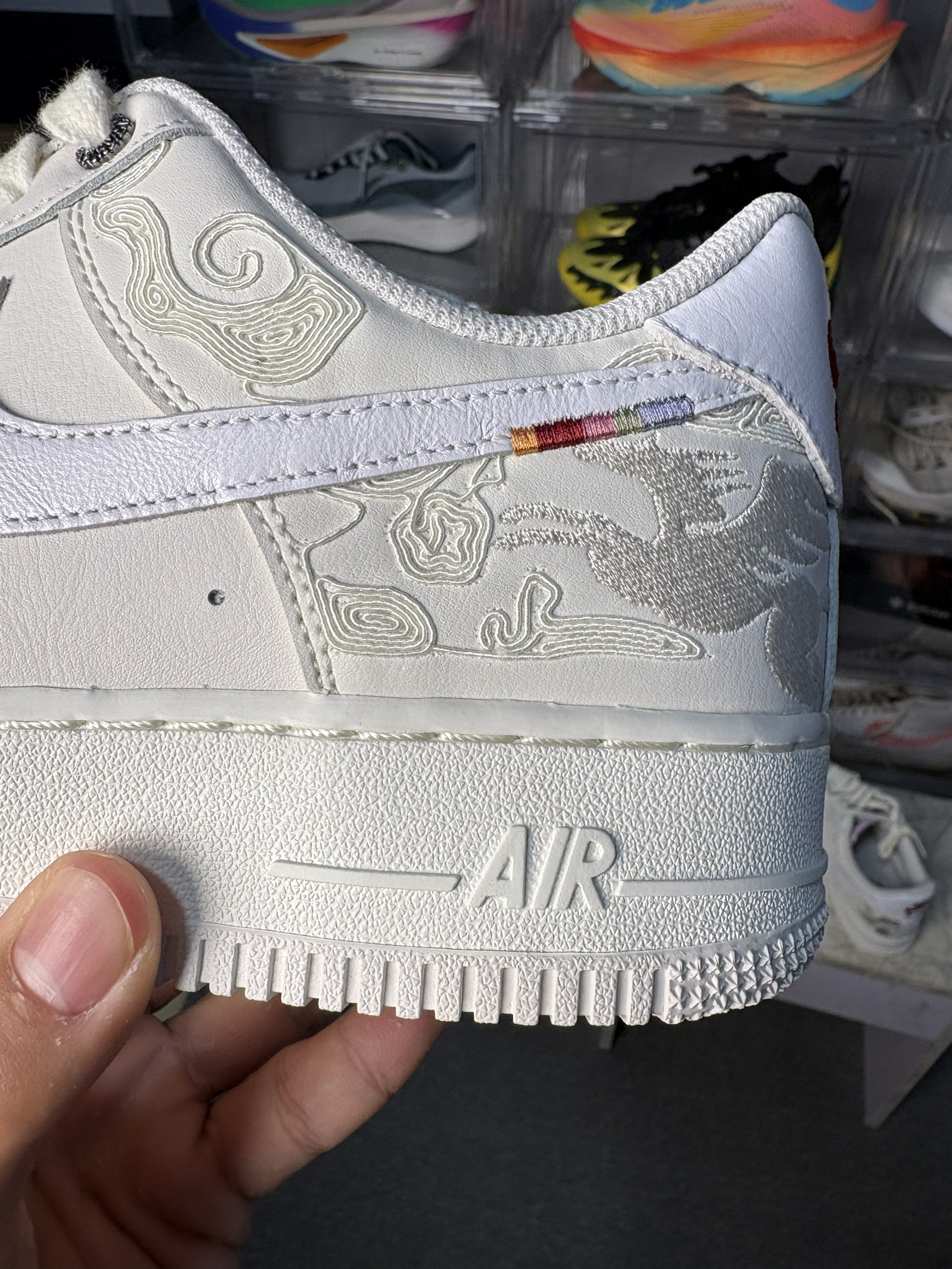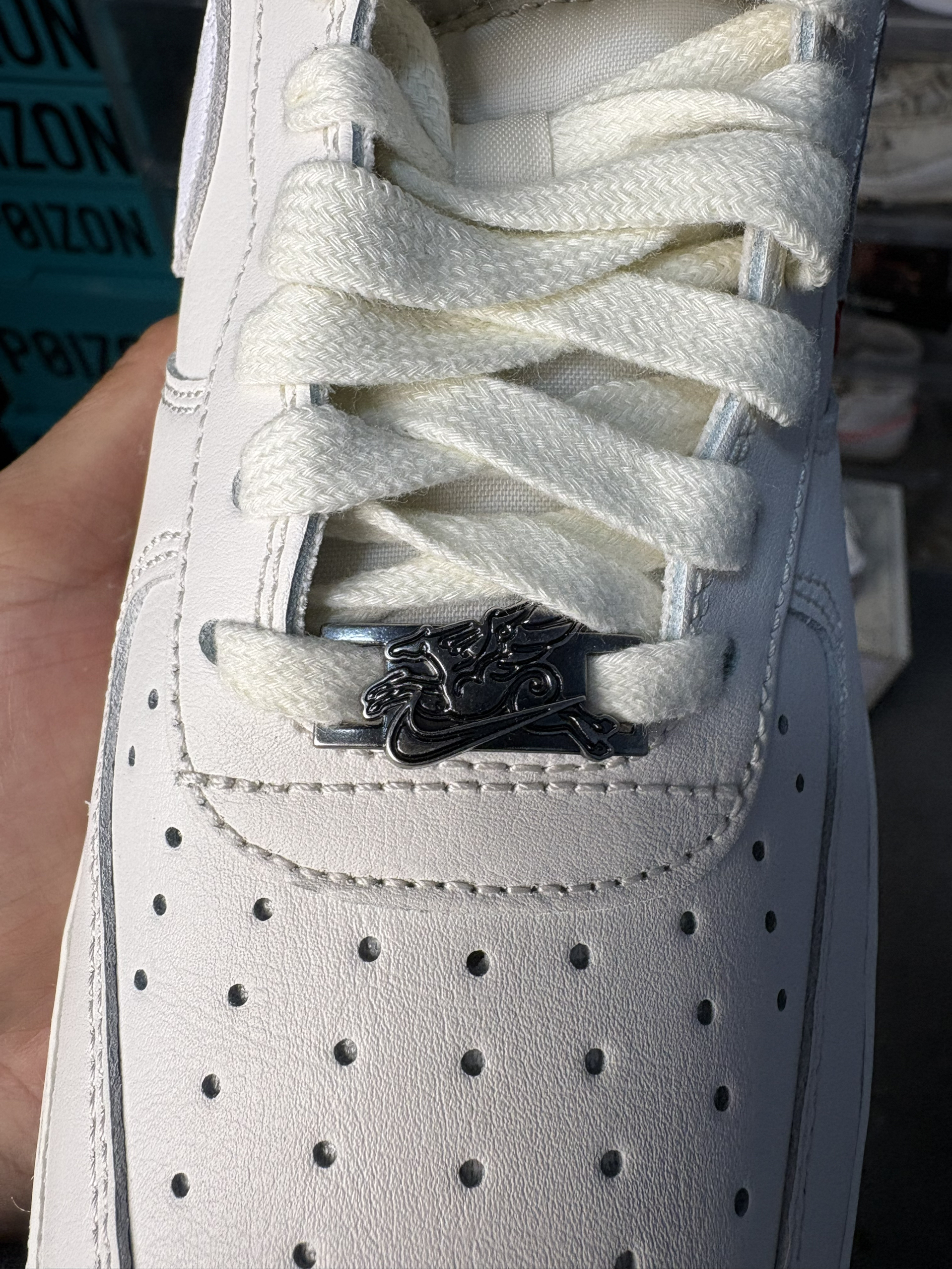 马年配色的空军一号在纯白的基础上,增加了许多细节,鞋身的飞马祥云浮雕非常的有质感