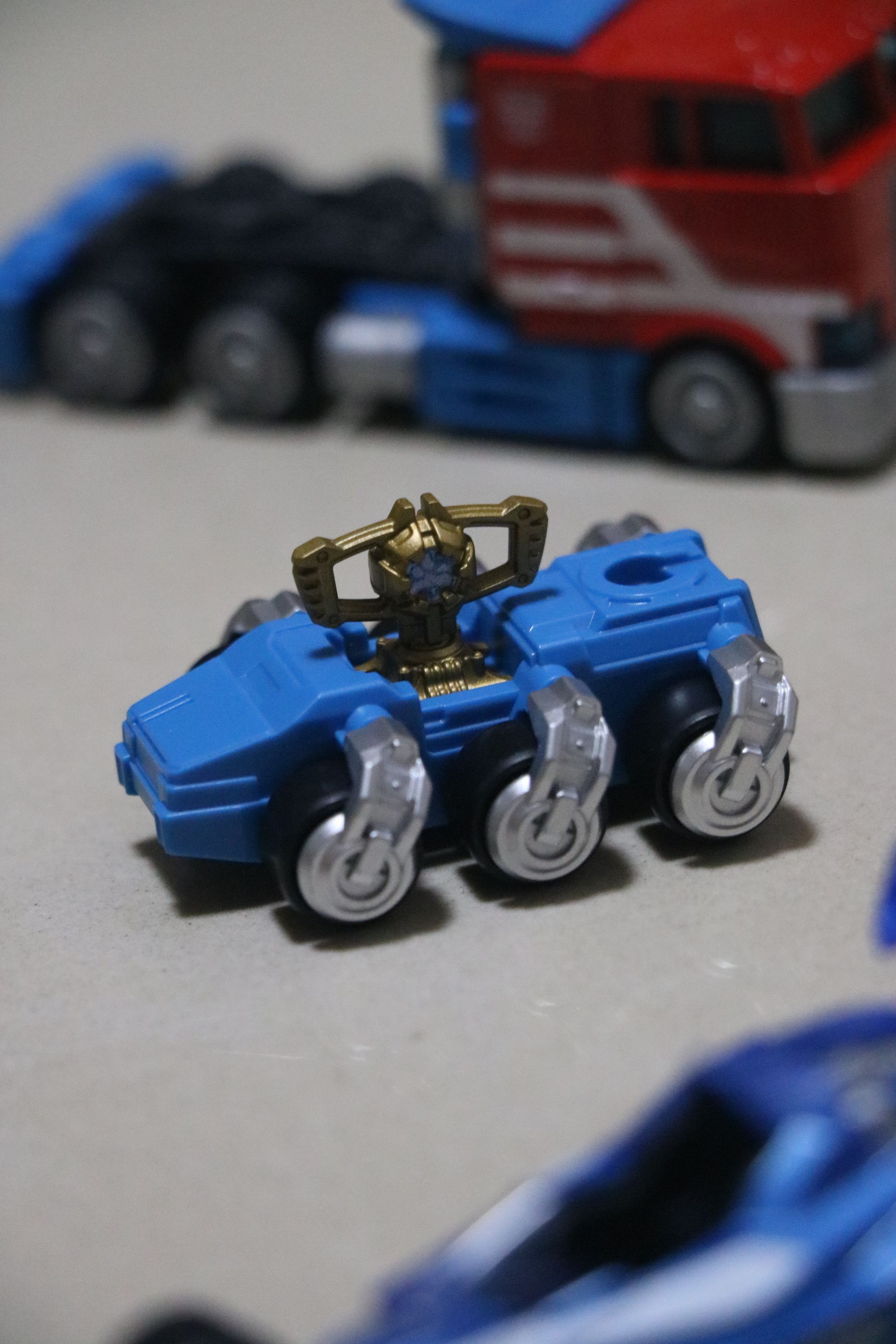 要说今年玩的最佳的玩具,我给布鲁可积木车系列投上一票 第一弹变形金刚系列端盒也是全齐了,连同擎天柱车厢也一并入手,车厢套装的擎天柱轮胎区别于普通版更细节 除了威震天,其他小车都有合金部件,以后有新的小车系列可以收集啦!