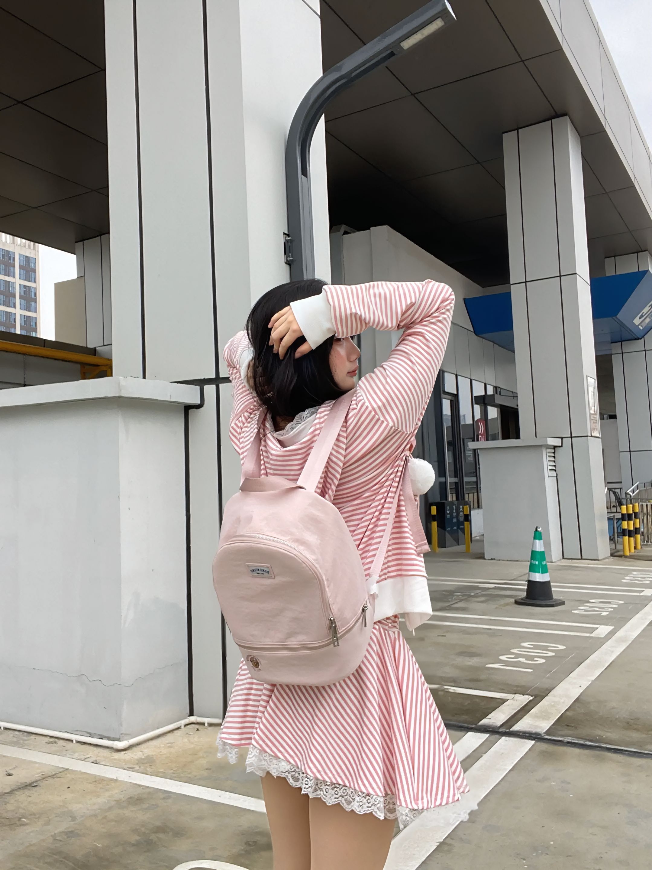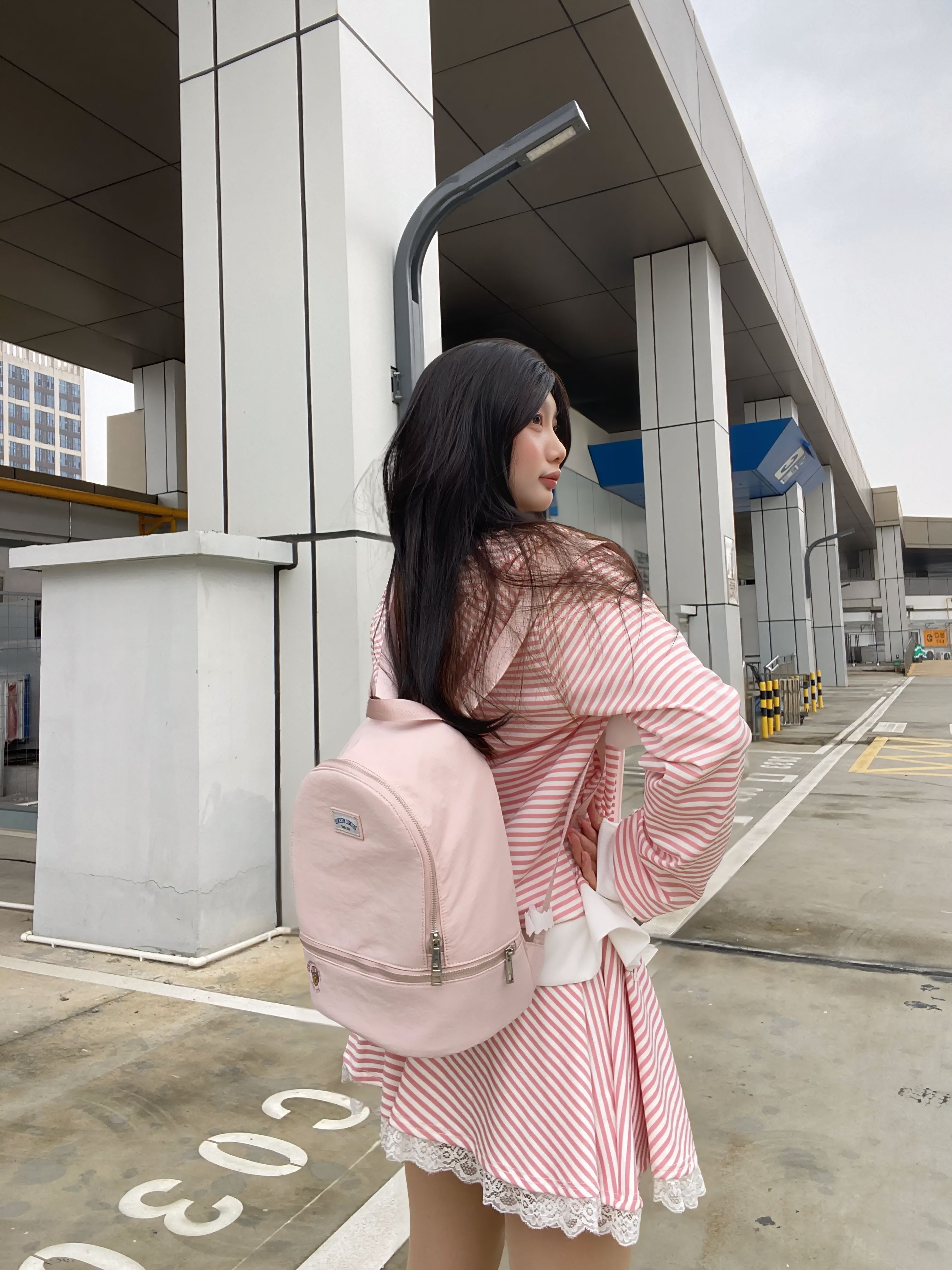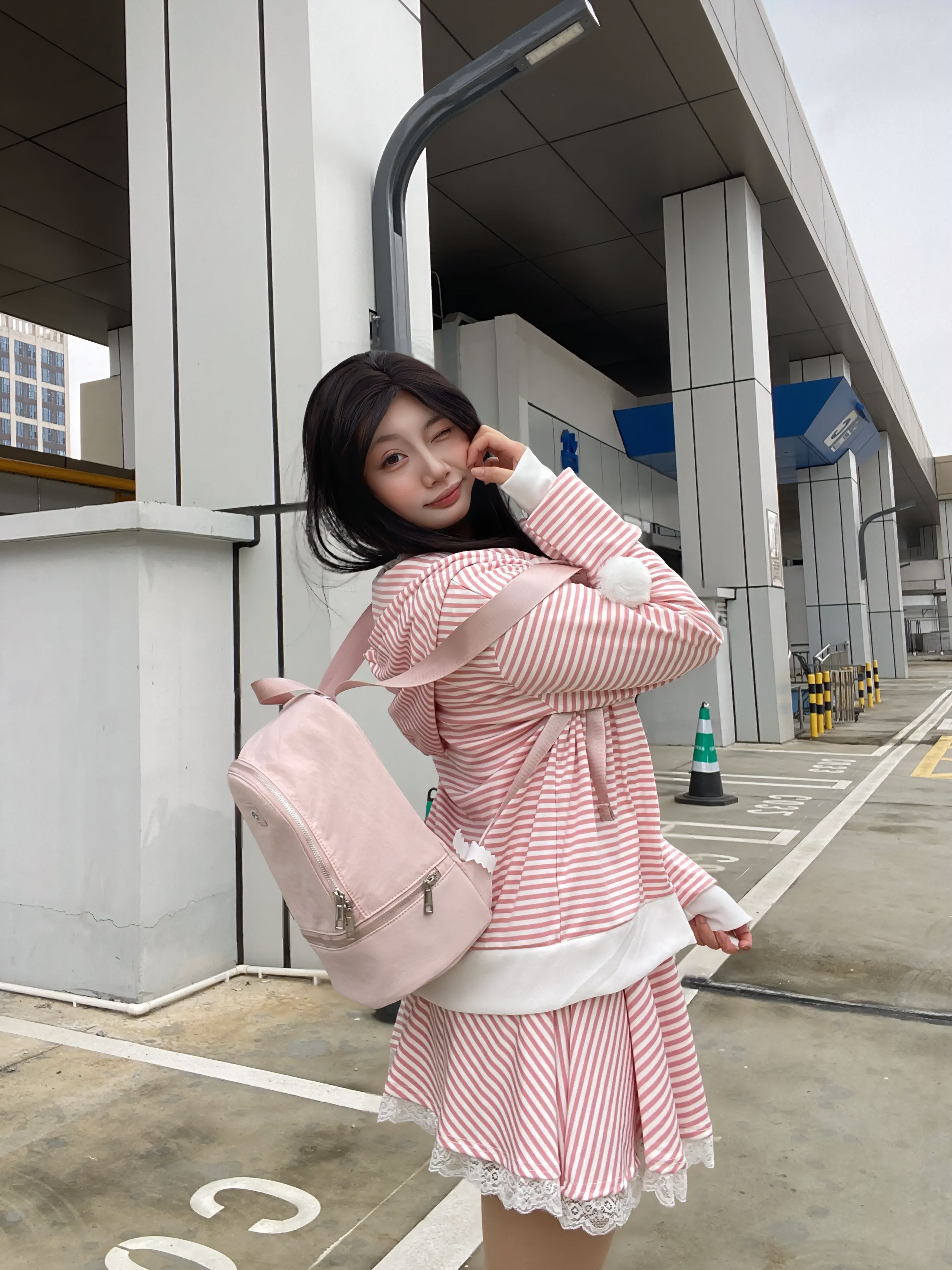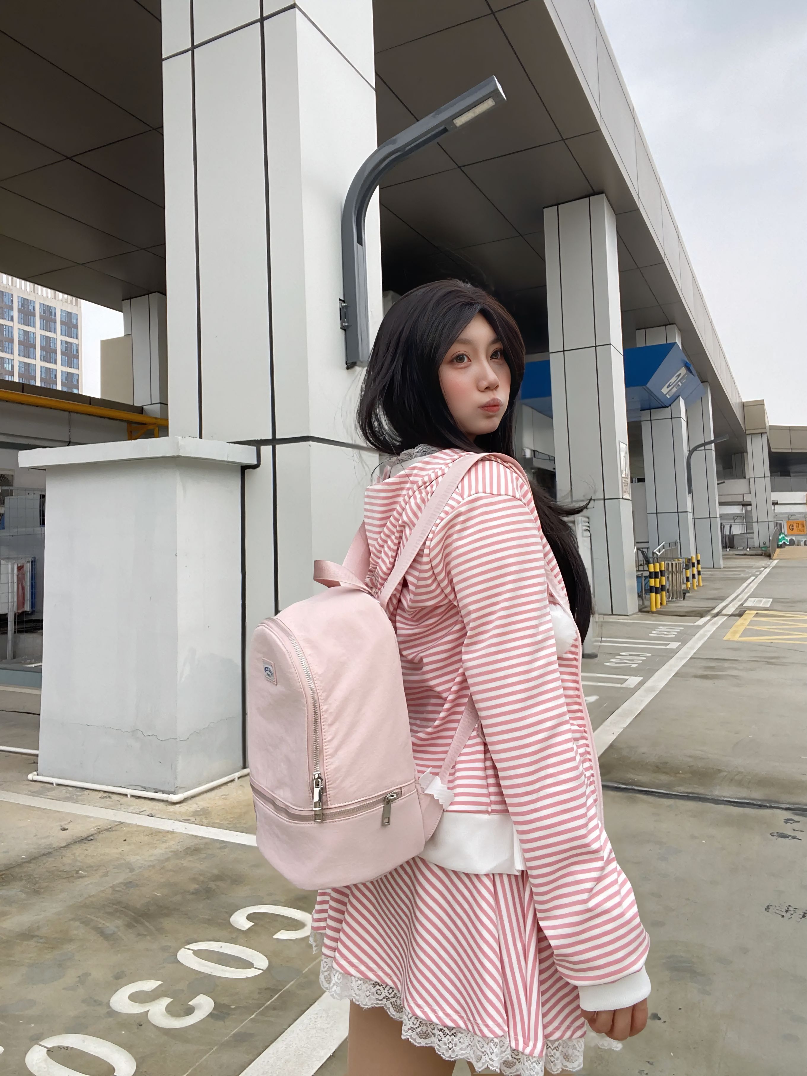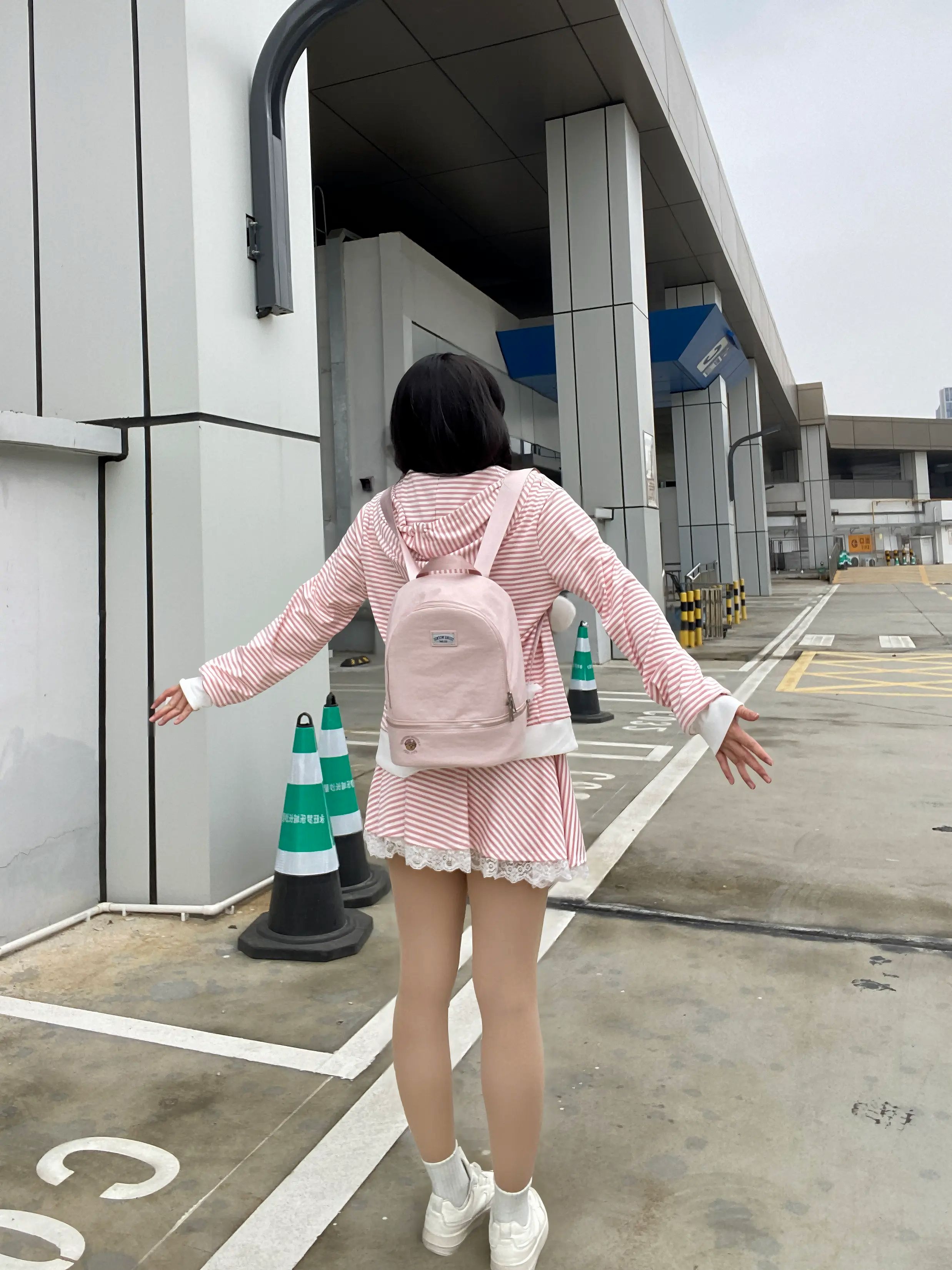 挖到的这套粉白条纹套装真的戳中我的少女心!上衣是宽松的条纹外套,搭配同系列的蕾丝边短裙,版型超藏肉,小个子穿也不会压身高。面料是软软的棉质,贴身穿特别舒服,一点不扎肤。背上粉色小背包,整体甜妹感拉满,不管是日常出街还是短途出行都合适,真的也超适合出片。妥妥一个甜妹出街是不是~