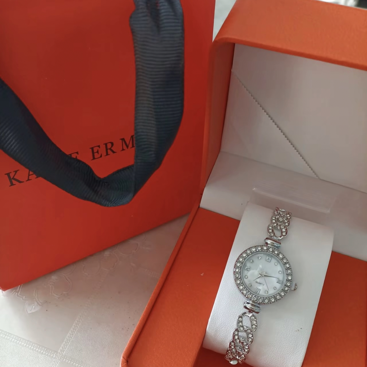 本篇笔记关联了Katie Ermilio 闪耀满天星镶钻贝母轻奢小众气质时尚抽拉式石英女士手表 【礼盒装】银色 KE-0196YE等商品,为用户提供真实的使用体验和购买参考。