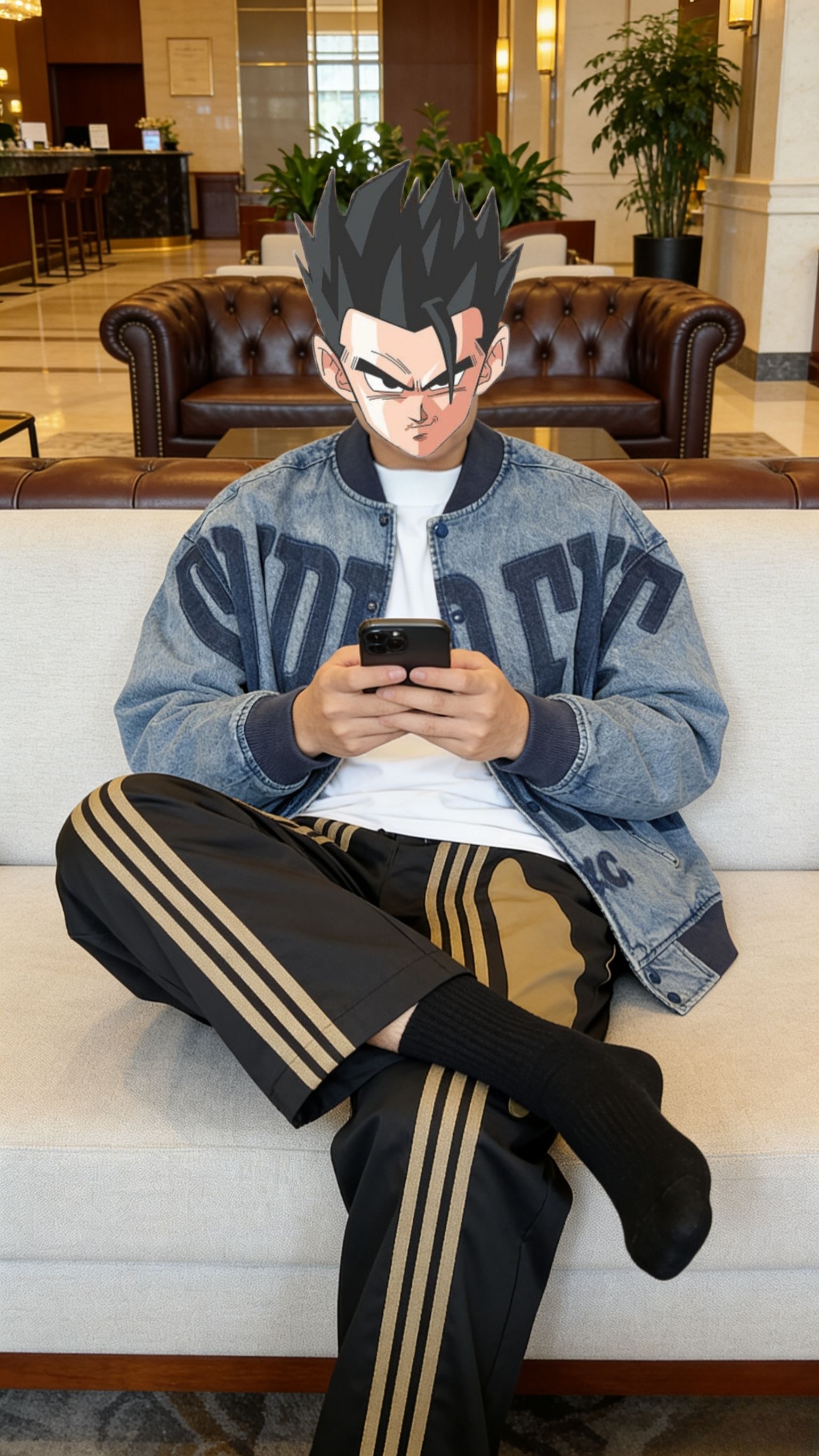 当街头潮牌的粗犷牛仔遇上机能风的拼色休闲裤,这套搭配直接解锁了酒店场景下的随性潮流感。上身选择Supreme牛仔棒球夹克,做旧水洗的丹宁材质自带复古质感,超大的字母印花张扬着街头态度,内搭极简纯白色T恤,中和了夹克的厚重感,还能让整体造型更清爽利落;下身搭配黑棕拼色的休闲裤,流畅的线条和撞色条纹设计打破了牛仔单品的沉闷,抽绳腰头的细节又增添了穿搭的舒适度与随性度;脚上搭配纯黑色袜子,极简的搭配让视...
