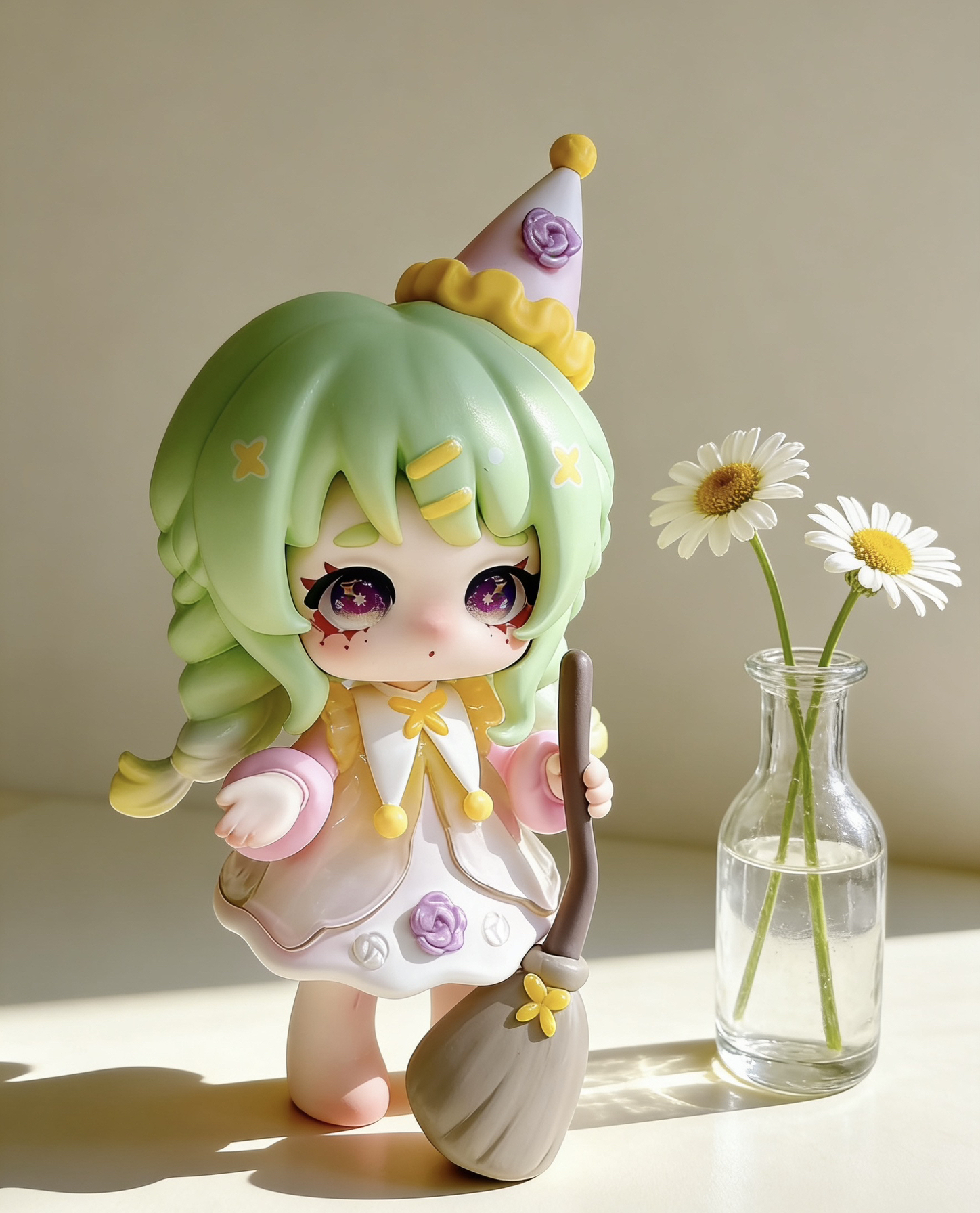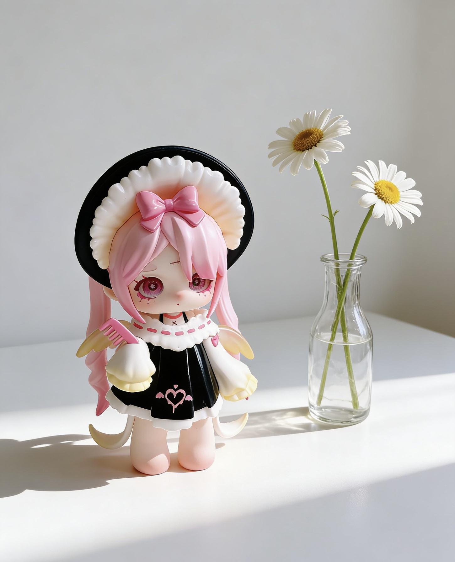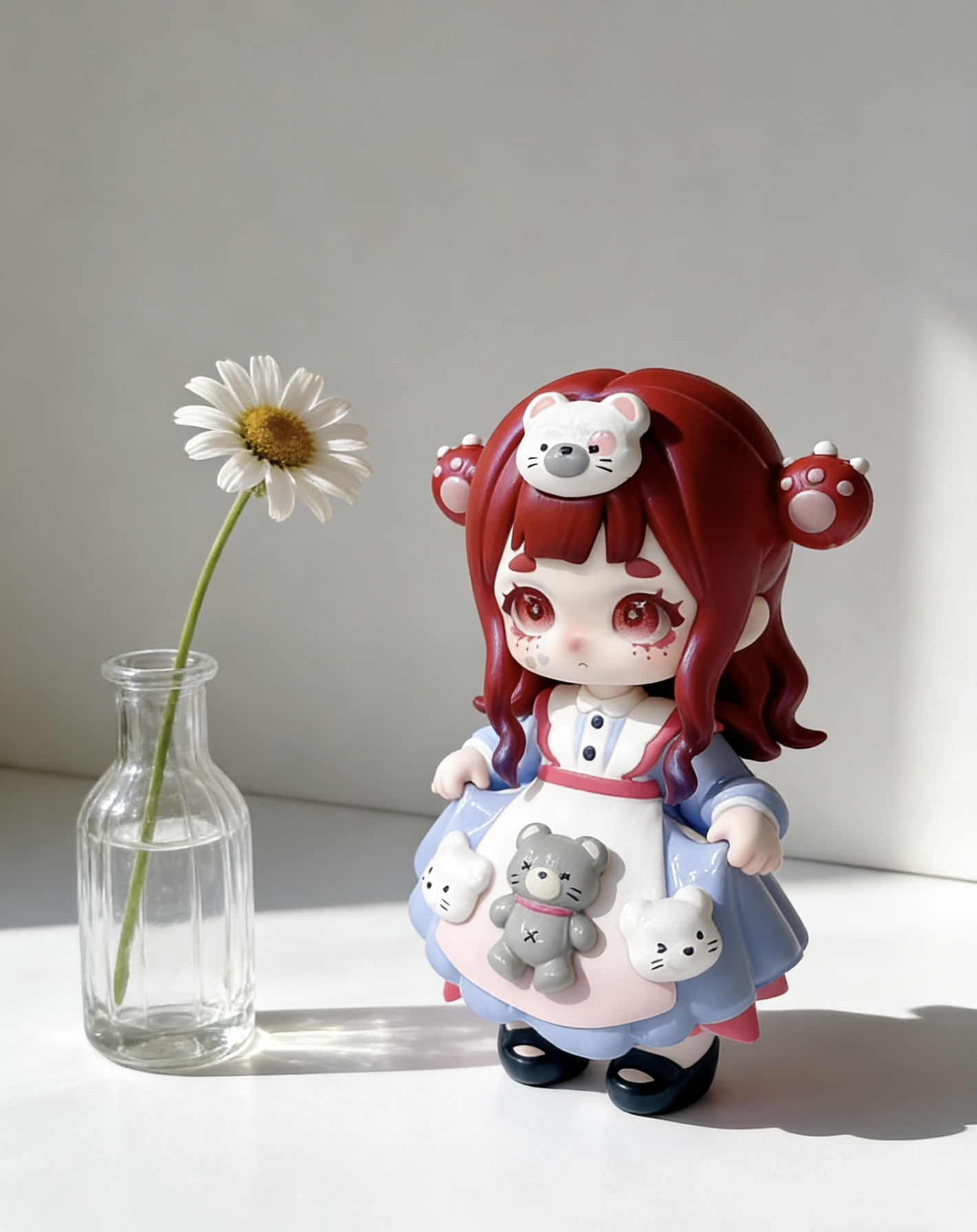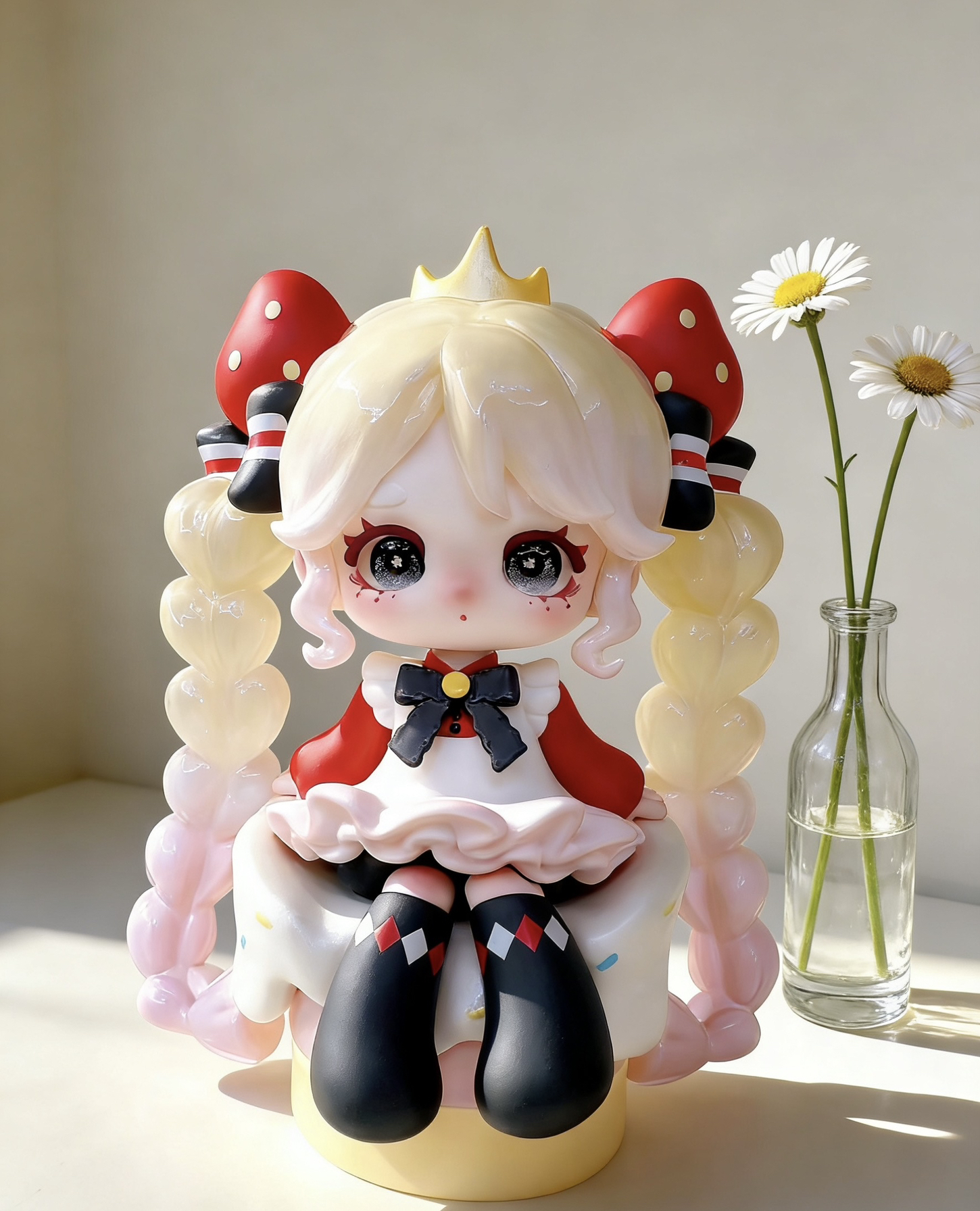 天的创搭主题是「暗黑童话甜品屋」—— 把这几只自带“甜丧感”的手办,搬进了我搭的mini场景里: ▫️底色选了奶白蕾丝桌布+浅木小托盘,温柔感拉满 ▫️配了迷你马卡龙+小蛋糕模型,和手办的甜妹属性锁死 ▫️暖黄小台灯侧打光,连眼妆的细闪都能看清! 每只都戳中我:带剪刀的小丑妹、抱镜子的粉紫卷毛、揣小熊的红发甜妹…连袜子上的菱形格都没放过细节! (悄悄说:手办+场景摆台真的是书桌氛围感神器,朋友...