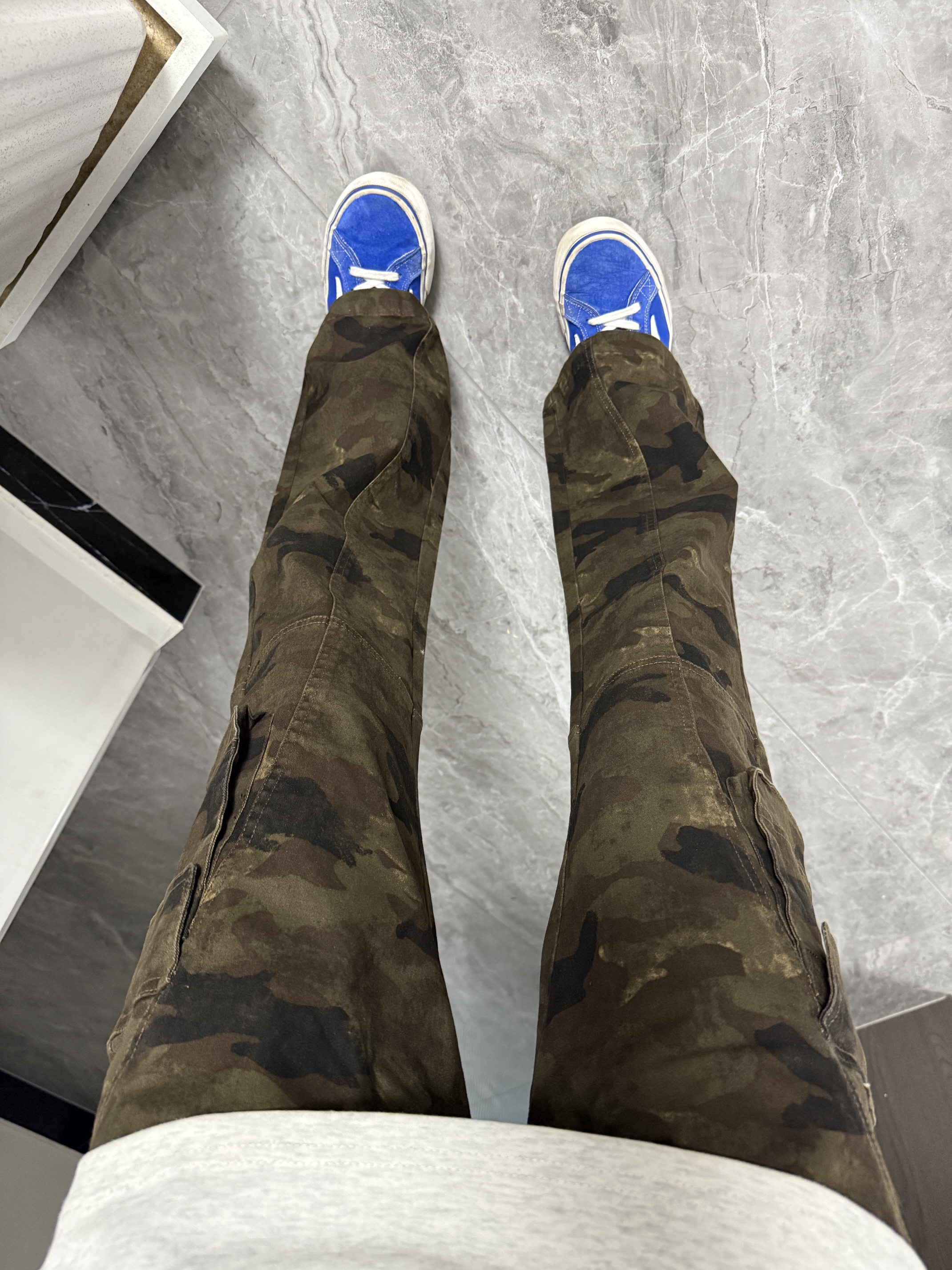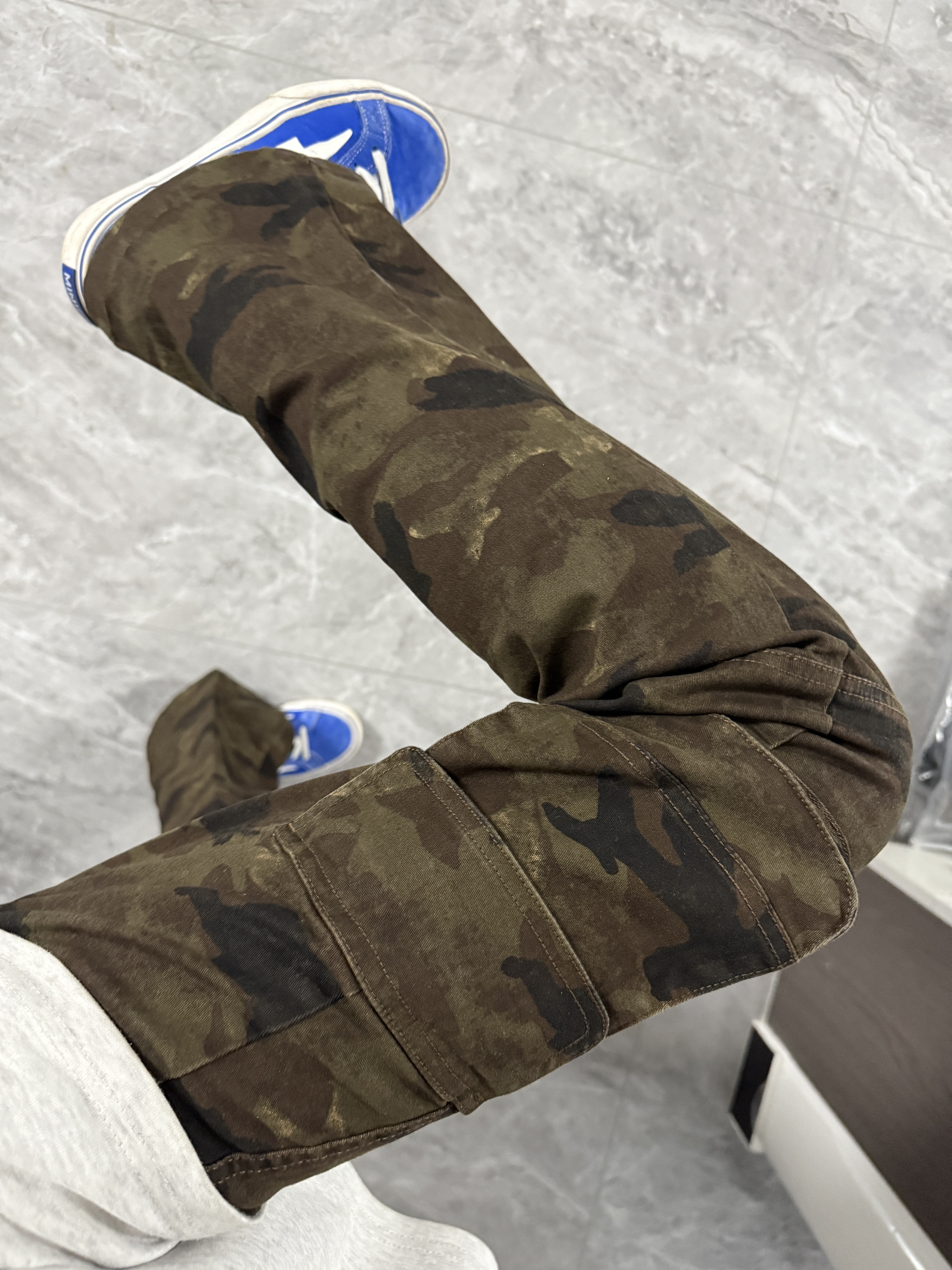 哈哈哈好喜欢今天这套穿搭!这不临近圣诞 我挑选了一条迷彩工装裤拿来穿穿,还别提搭配双蓝色闪电板鞋挺有美式街头感,圣诞穿这身准没错!!