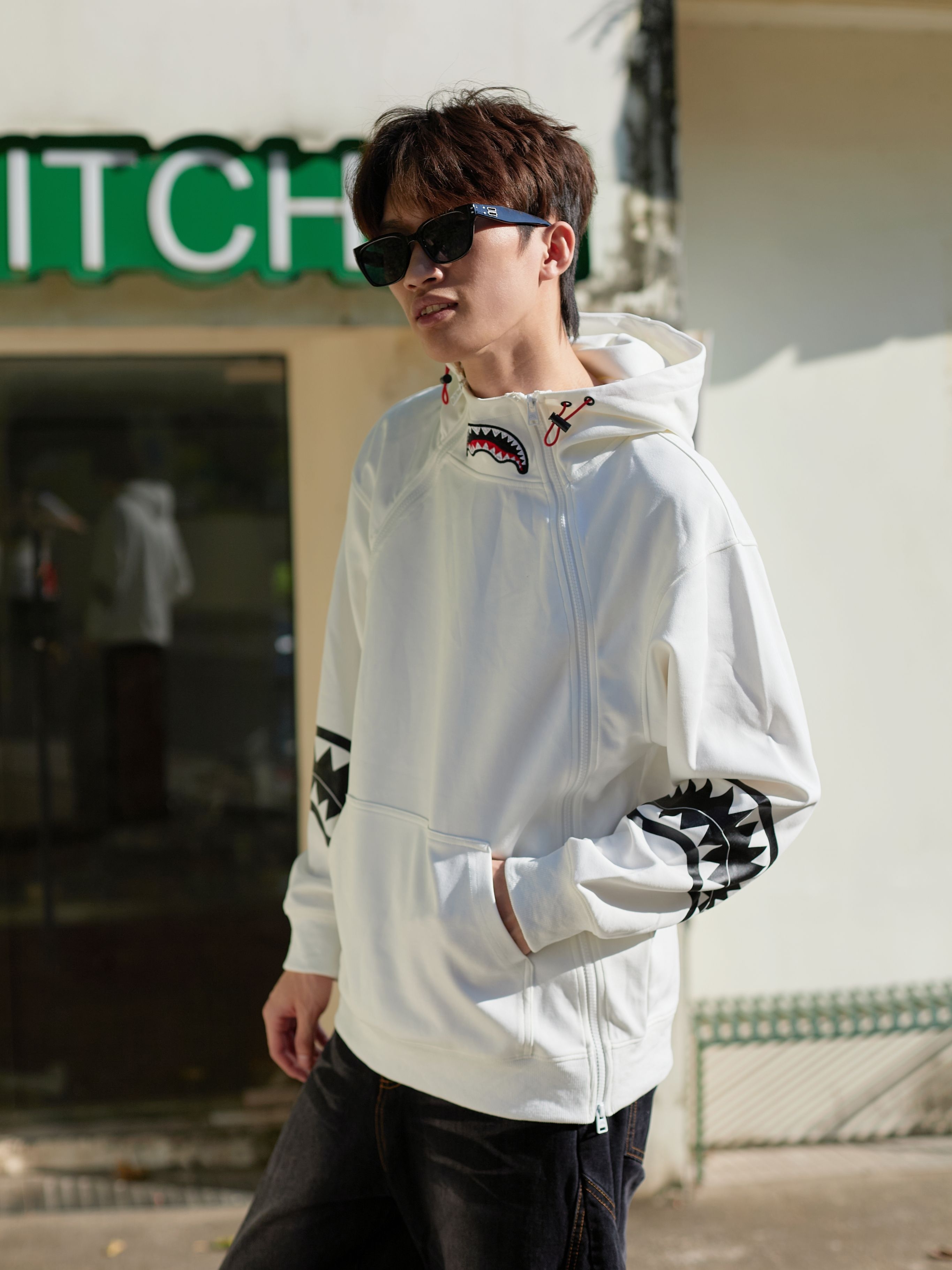 晒出我的日常通勤SPRAYGROUND这件白色连帽卫衣 标志性鲨鱼嘴图案自带潮流辨识度 质感拉满 连帽设计挡风又显脸小🕰 大口袋揣手机钥匙很实用 我配深色阔腿牛仔裤+球鞋 妥妥的学院风🎙 上课、逛街百搭不踩雷 日常穿舒适又吸睛 喜欢简约潮酷风的可以试试哦!