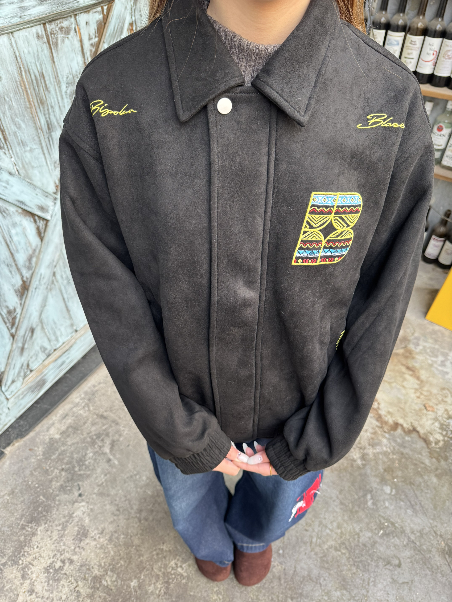 这款黑色民族风夹克真的是我近期买到最满意的单品! 面料很有质感,摸着手感特别扎实,而且做了磨毛处理,贴身穿也不扎皮肤。 版型是恰到好处的微宽松,不会显得臃肿,反而很显瘦,藏肉效果一绝!! 衣服上的印花和刺绣细节超戳我,色彩和走线都很精致,没有一点廉价胶印的感觉~ 而且还非常百搭!💕