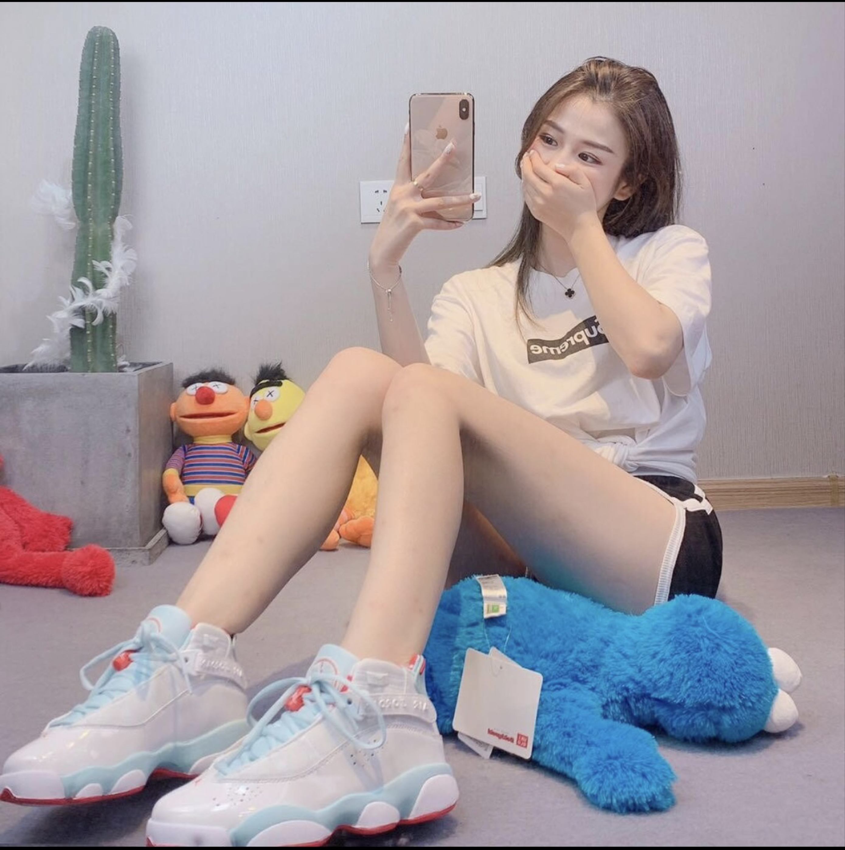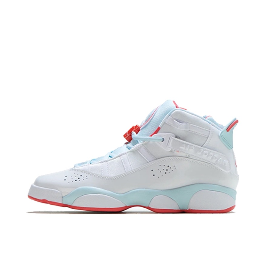 👕推荐单品 Jordan 6 Rings 白蓝红糖果色中帮篮球鞋 🛒推荐理由 Jordan 6 Rings融合多款经典AJ鞋型设计,白蓝红糖果色搭配清新甜美又具潮流感;漆皮与皮革拼接鞋面质感亮眼且易于打理,中底搭载缓震科技脚感舒适,中帮鞋型兼顾包裹性与时尚感;鞋款适配多种穿搭风格,女生可搭配白色短款印花T恤+黑色运动热裤、浅蓝色牛仔阔腿裤+浅粉色针织开衫,男生可搭配灰色连帽卫衣+黑色束脚卫裤...