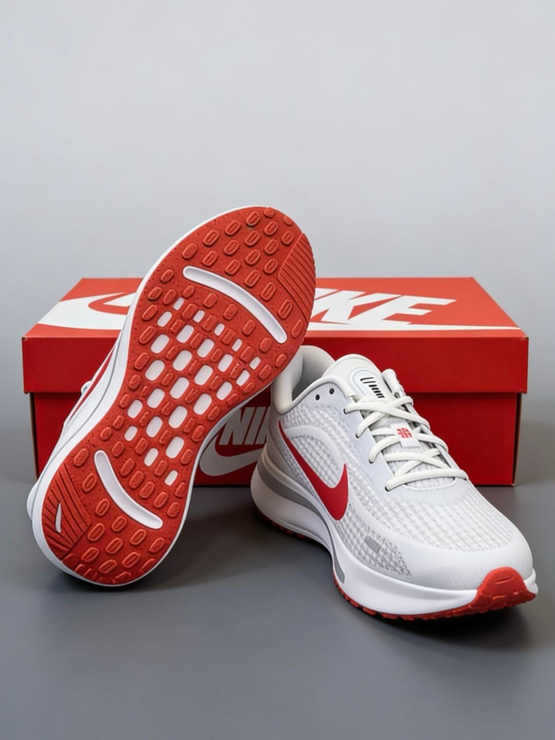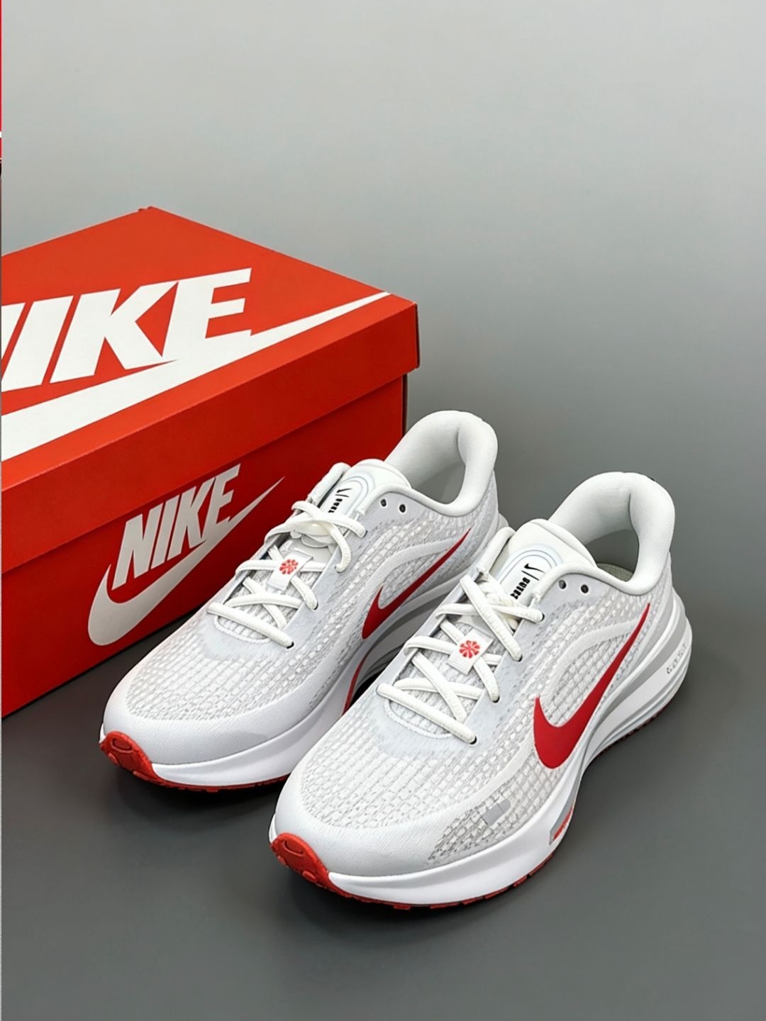 秋冬第一双Nike跑鞋也太会了吧!红白配色直接戳中审美,秋冬氛围感拉满✨ 鞋面是织物+合成革的组合,透气又有质感,日常通勤、旅行逛吃穿它都超合适,运动裤、休闲裤、牛仔裤随便搭都不违和~ 刚入手就穿着它去操场跑了一圈,配白休闲服巨显时尚,朋友都夸我选鞋眼光好!走了一天脚感也超舒服,完全不累脚。 不过要提醒下,浅色鞋面真的超容易脏,得小心打理哦⚠️