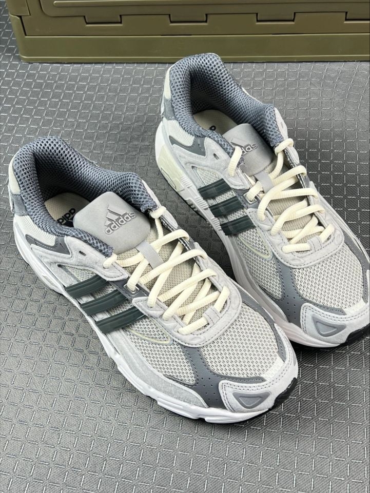 今天是这双阿迪达斯Response CL||| 配色是低饱和的灰白+浅灰,看着特别干净舒服😌 鞋面是网眼+麂皮拼接,网眼透气但麂皮摸着手感软乎乎的,版型偏正码,宽脚穿也不挤。[机智_blue][机智_blue][机智_blue][爱心_blue] 上脚踩下去是那种软软的回弹,走半小时路脚不会酸,通勤或者逛公园都合适👟 就是新鞋穿第一天后跟有点磨,得贴个后跟贴。 [惊喜_blue][敬...