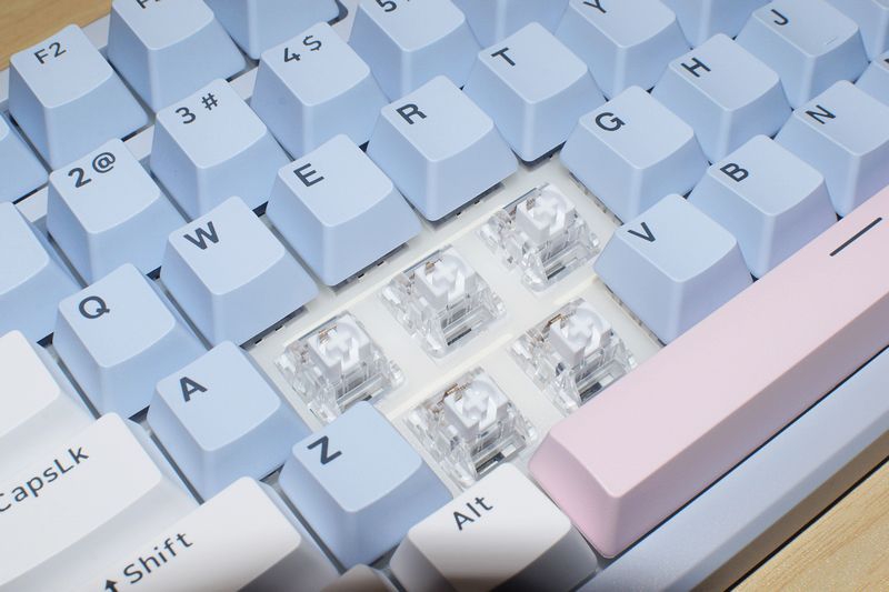 ,这一结构极大地提升了键盘的手感与声音表现。V700DIY-98采用了 凯华定制的快银轴和弹白轴,满足不同玩家的需求。而且它的防尘壁轴心设计,可有效减少了按键晃动。V700DIY-98支持全键热插 拔功能,玩家可以根据自己的需求自由更换轴体。其采用全键无冲设计,在进行高速输入或游戏操作时,不会出现按键冲突或掉键 的情况。V700DIY-98内置了10000mAh的大容量锂电池,充满电后可支持长达1700小时的无线使用。即使在无线模式下,也能确保长 时间的稳定运行。键盘还支持蓝牙5.0、无线2.4G以及有线三种连接方式,可以快速切换,适应不同设备的需求。