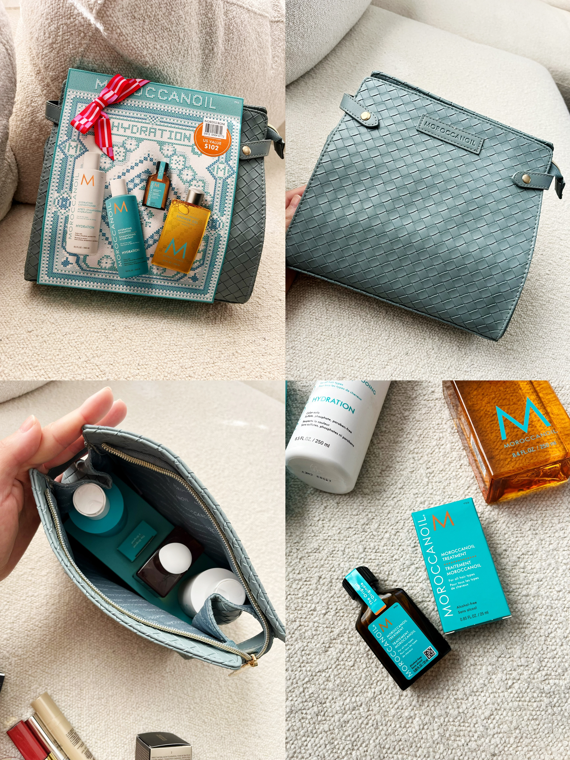 强烈给大家推荐这款 Moroccanoil 摩洛哥发油 滋润保湿护理套装! 送礼自用都超级棒👍 主要是看上了蓝色的编织包包☺️ 里面的四款产品也超级实用 滋润保湿效果OK 味道超级好闻🥰 ✨ 套装主打:补水 + 修护 + 光泽感 🌿 成分亮点: • 阿甘油(Argan Oil):核心成分!富含维E和脂肪酸,修护干枯、增加光泽 • 甘油:补水保湿,改善发丝干涩 • 角蛋白修护复合物:帮助减少...