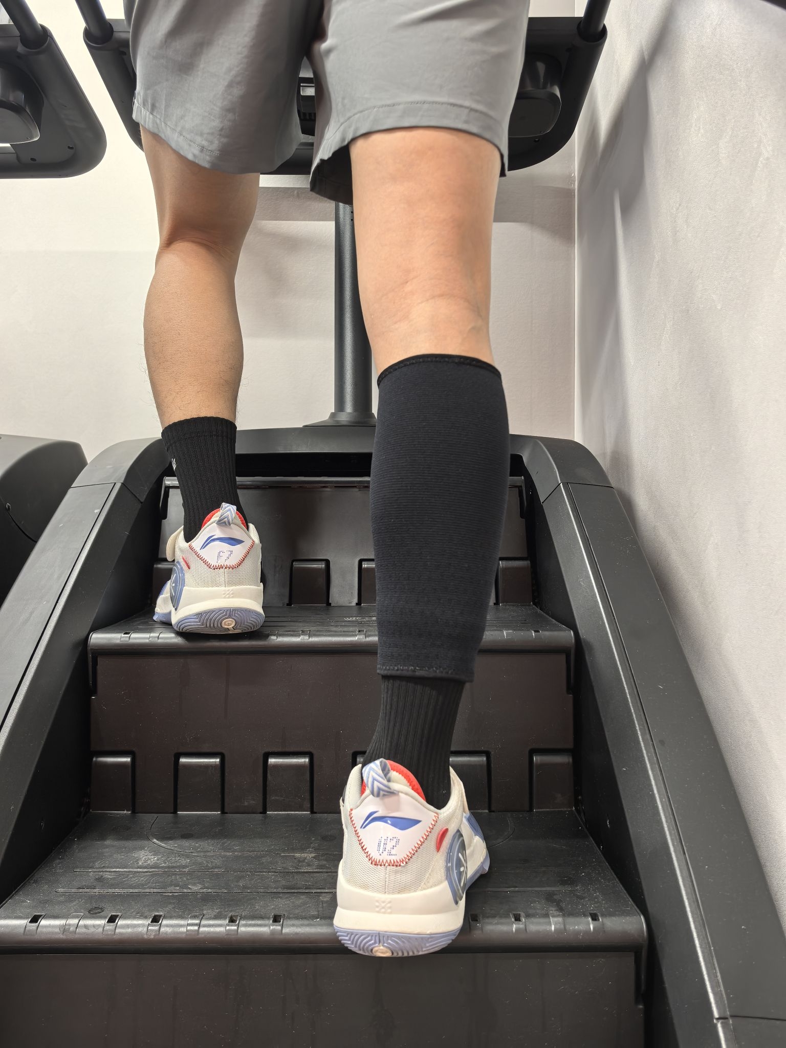 今天去健身试了一下这个压缩护腿,练腿时套上,小腿的包裹支撑感很到位,能明显感觉到肌肉被稳住,酸胀感也缓解了不少,面料透气性还不错,不闷汗!弹性挺大的,贴合小腿还不勒,运动完脱下来也没有勒痕,日常训练穿它太合适了!我175/74 穿L码正好!