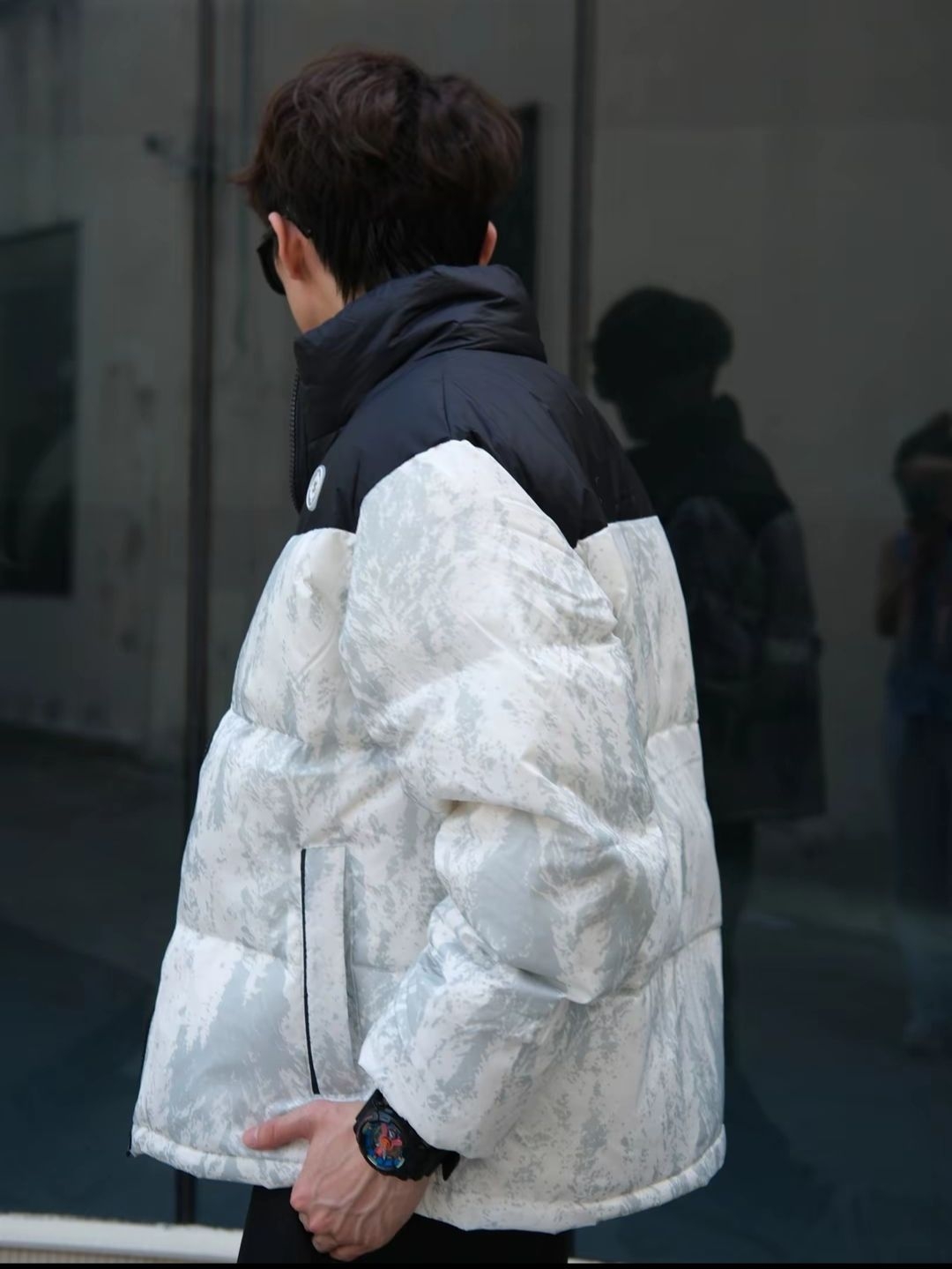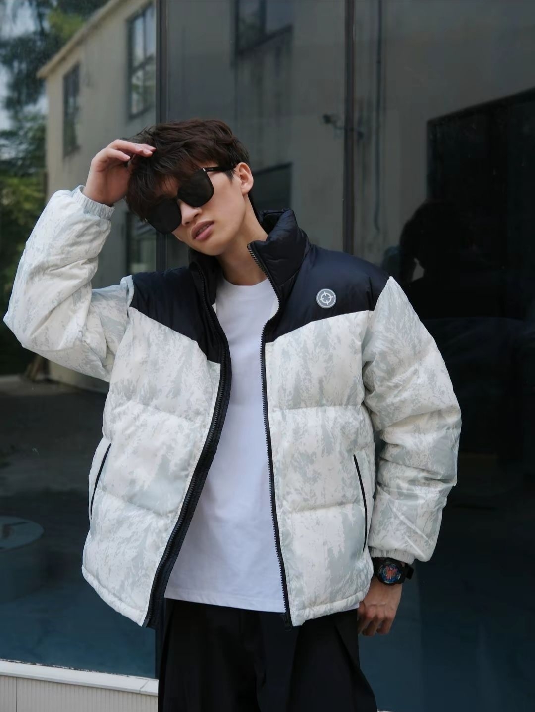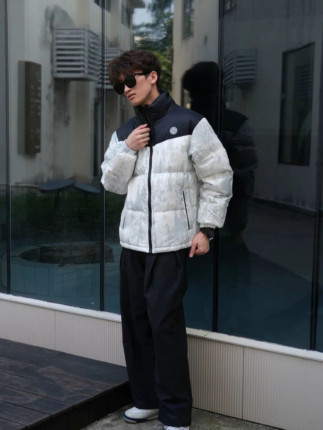 南方的冬天 一件短袖➕羽绒服外套就可以了 还是回到我的黑色舒适区 黑白配 怎么搭都是少年感 材质轻 内搭卫衣也很酷 上身潮流 出街穿也很chill