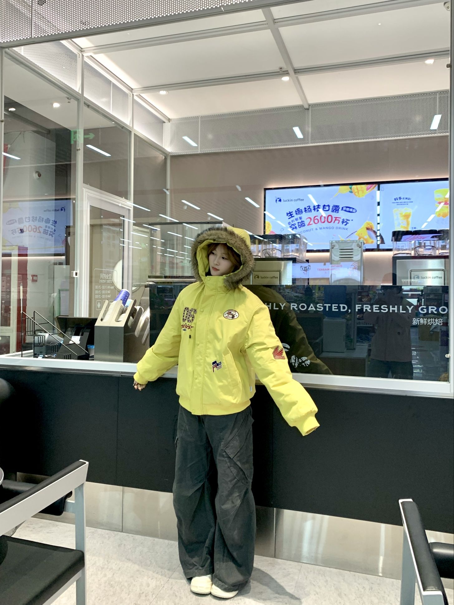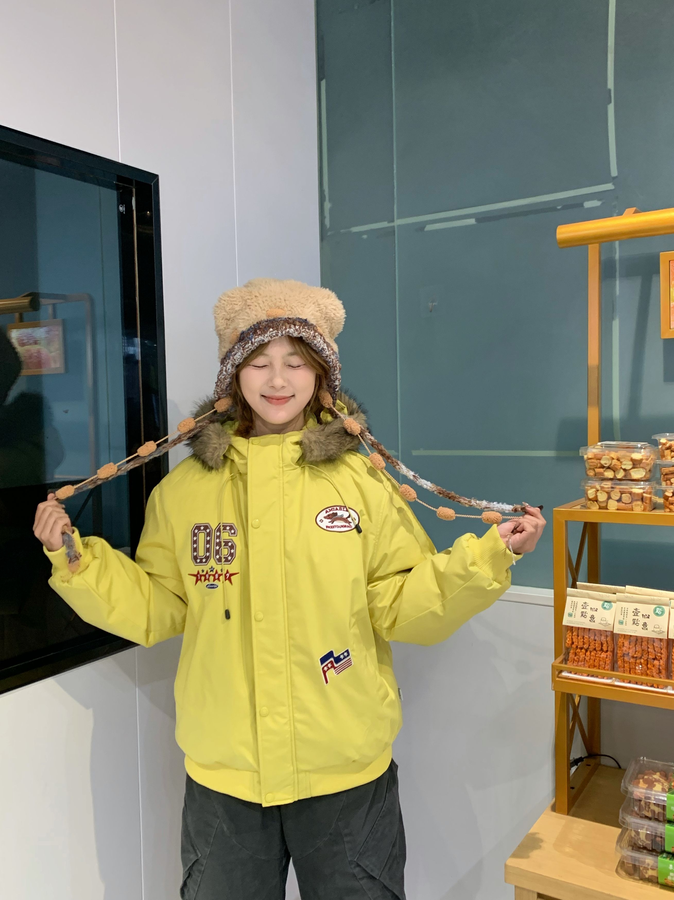 最近降温刚好可以穿我的新派克服啦☺️ 这件黄色派克服直接把冬日沉闷全踹飞! 毛领软fufu的贼暖和 面料是那种防风还不显臃肿的 胸口的贴标和刺绣细节很戳我 美式复古那味儿一下就出来了~ 内搭随便穿件白T就很出片💕 配灰阔腿裤松弛感拉满,走在街上回头率直接up!