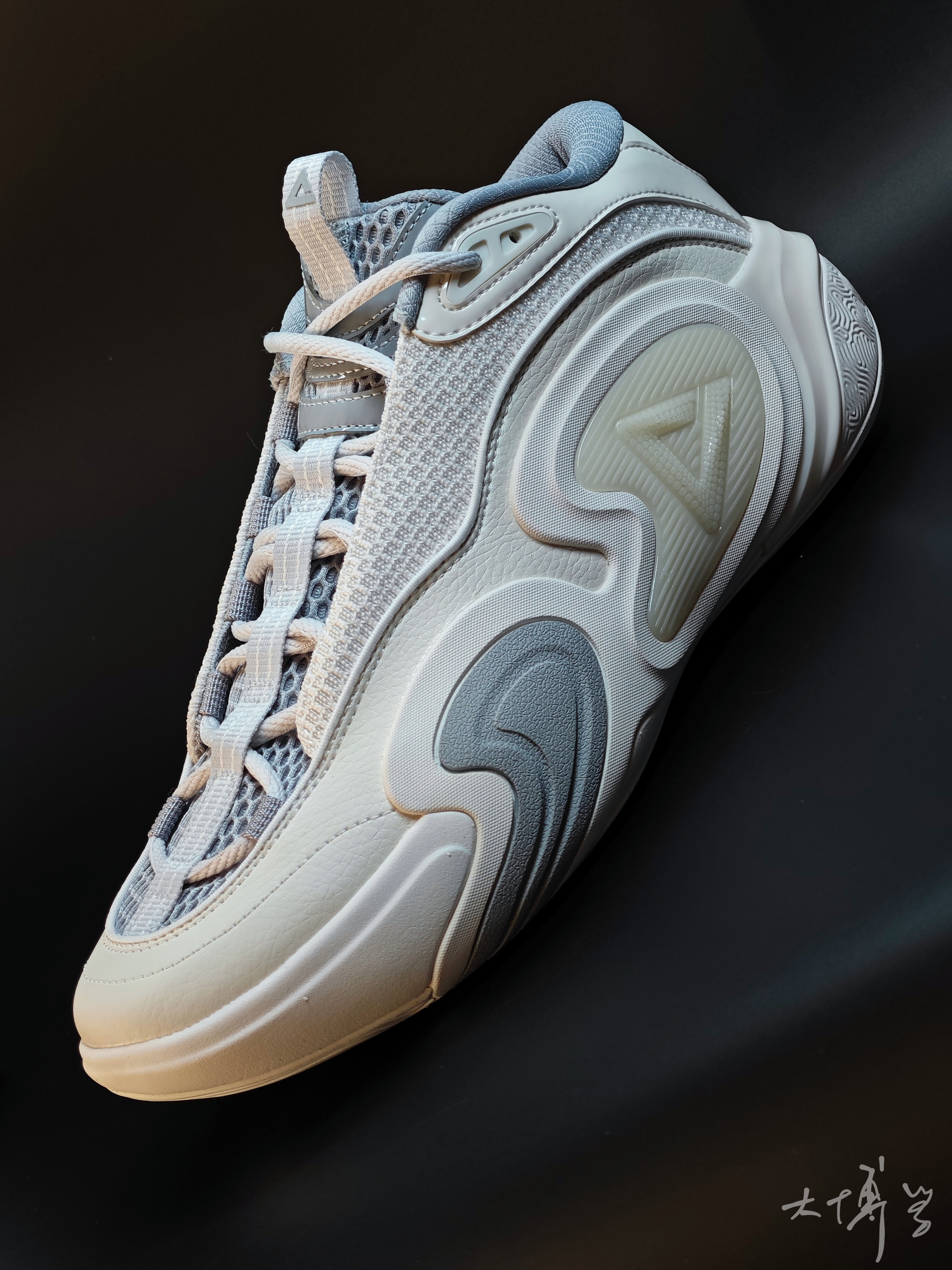 一款实战篮球鞋 鞋舌设计几乎延伸到了鞋头 仿佛看到了喷泡的影子 侧面上翻的鞋底,增添了稳定属性 态极科技 每一次落地都有反馈,减震又回弹 这款大概四五个颜色 我喜欢的就是这款灰白色 低调沉稳,不论场上实战还是日常通勤都不错