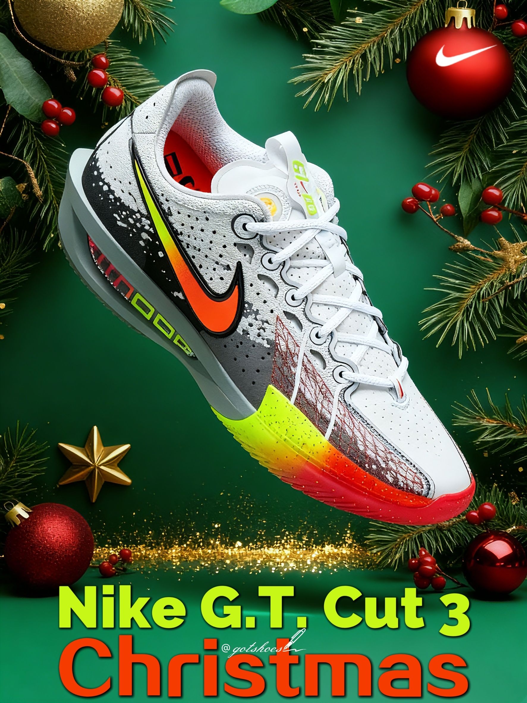 为迎接即将到来的圣诞季,Nike 特别推出了节日专属配色 G.T. Cut 3 “Christmas”。 整体外观设计并未采用传统的红绿节日色,而是以灰白撞色营造出冬日飘雪的静谧氛围。鞋侧的 Swoosh 标志采用渐变设计,与中底造型相呼应,在视觉上注入轻盈动感,同时也增添了节日的活泼气息。作为一年一度的圣诞限定款,这双鞋无疑是实战玩家们不容错过的球场佳选。 据悉,Ni...