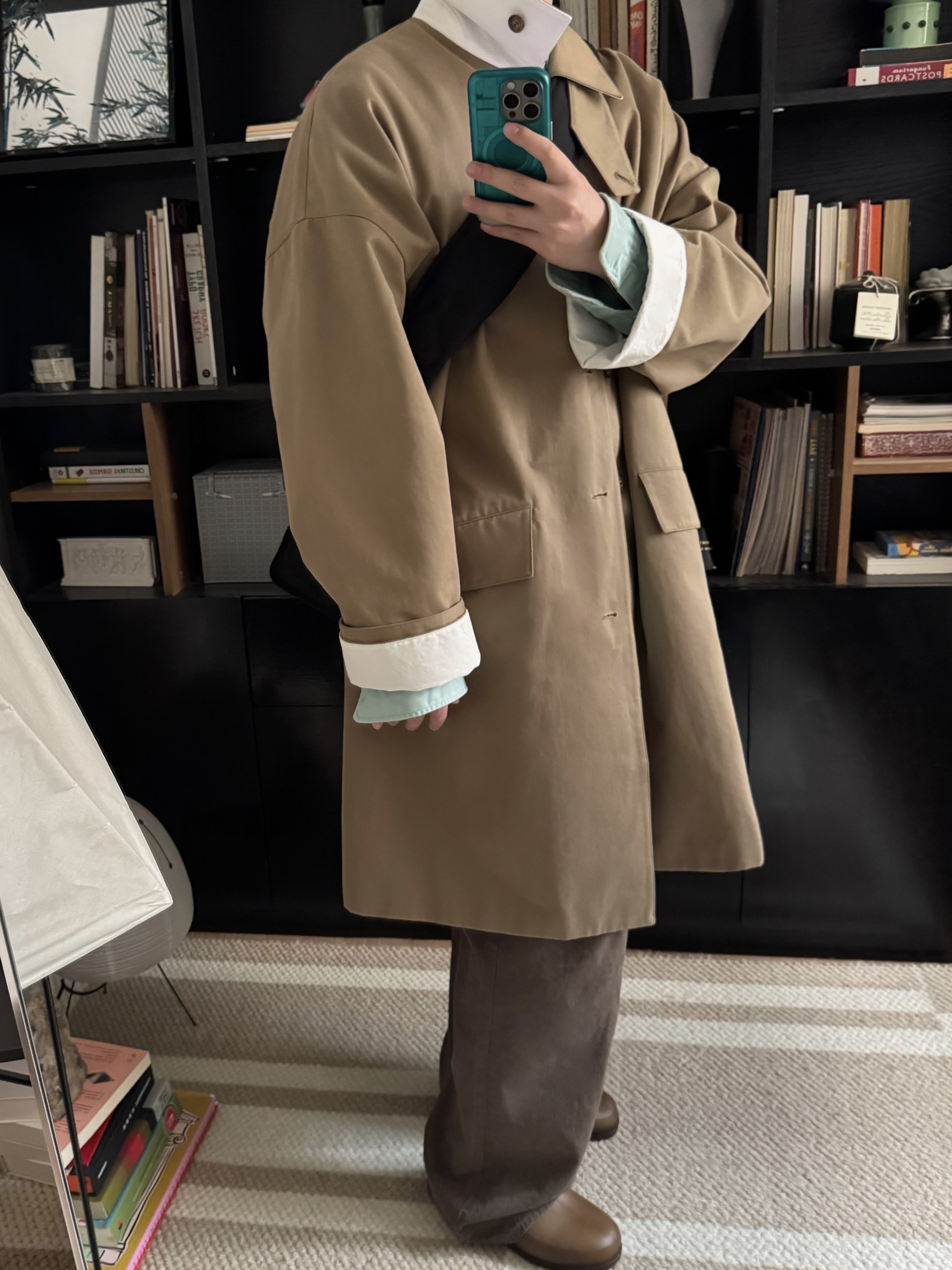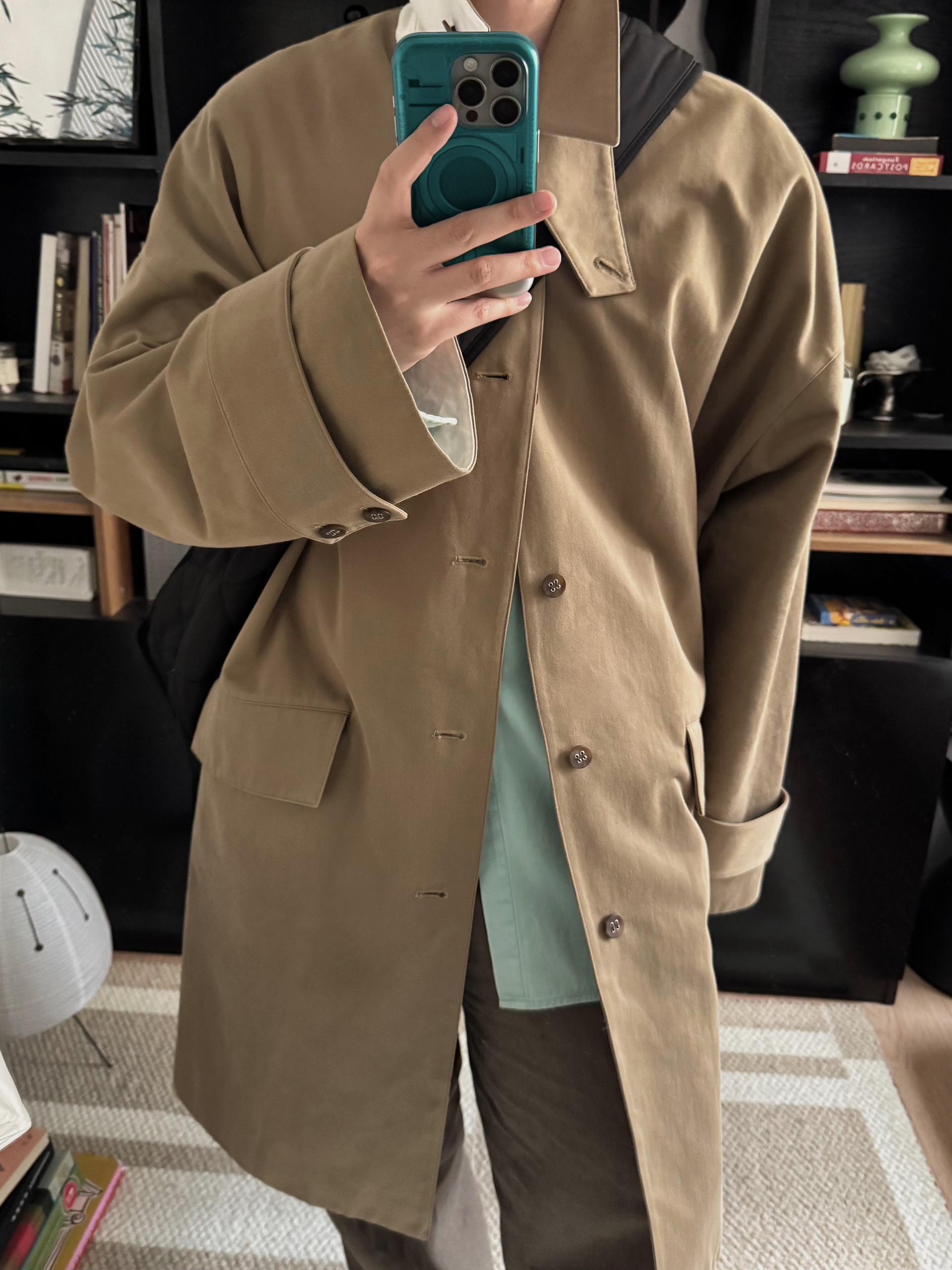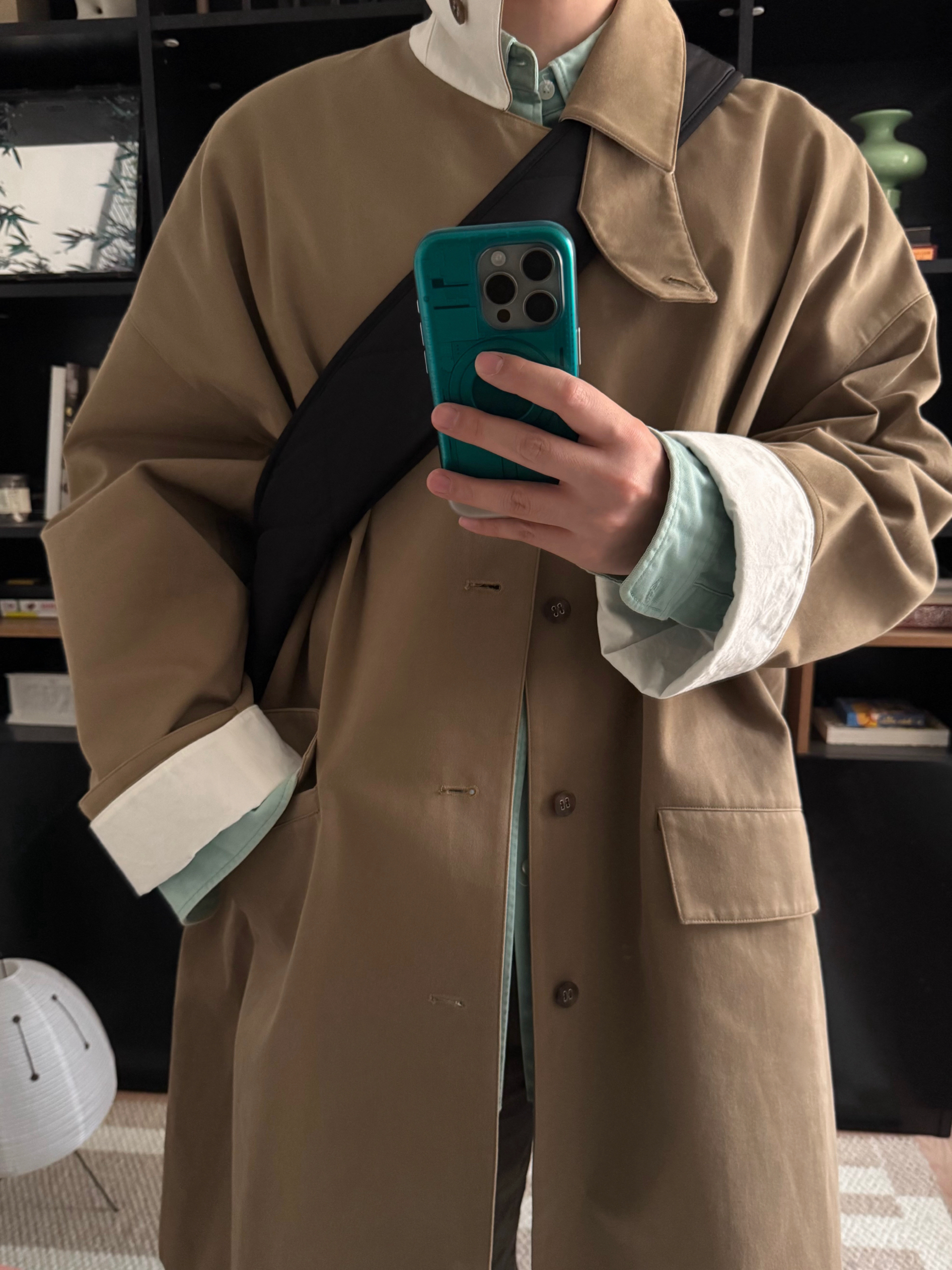 卡其大衣与薄荷绿的碰撞,有种奇怪的搭又那么的合适。让冬天不那么沉闷