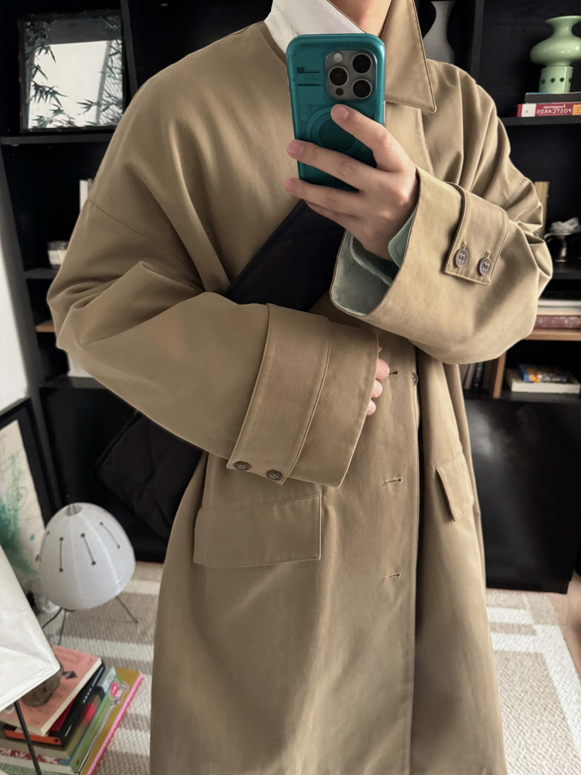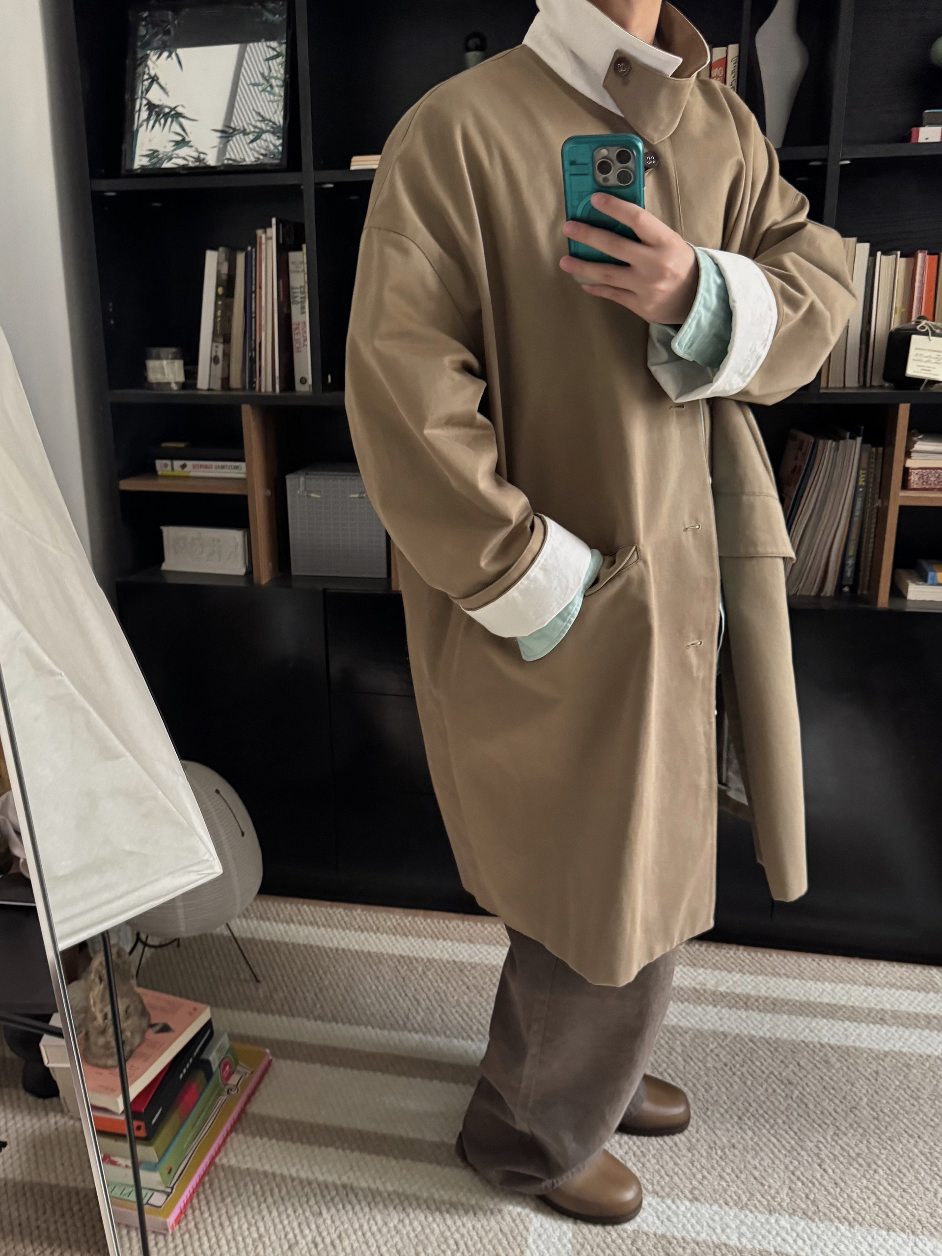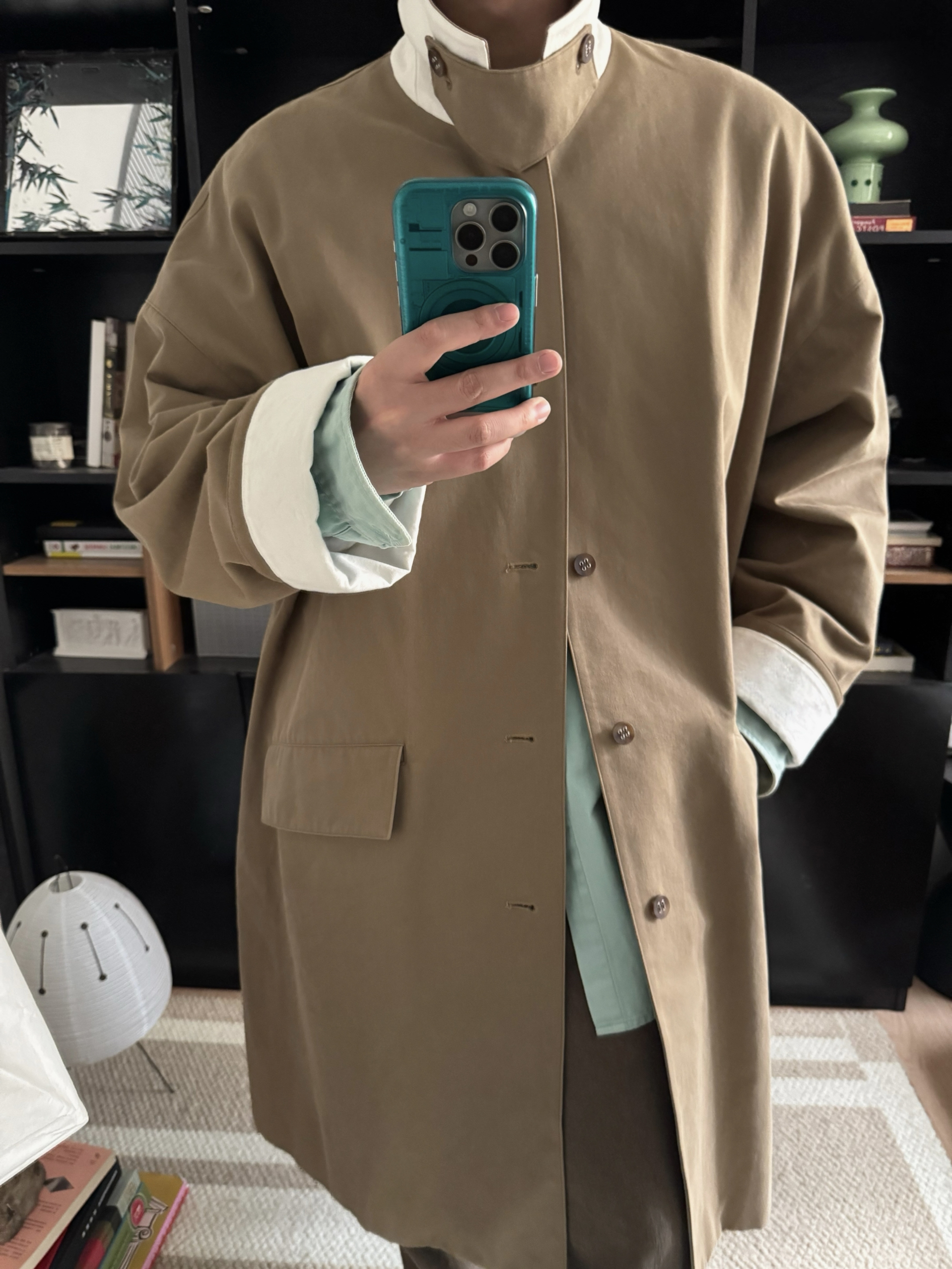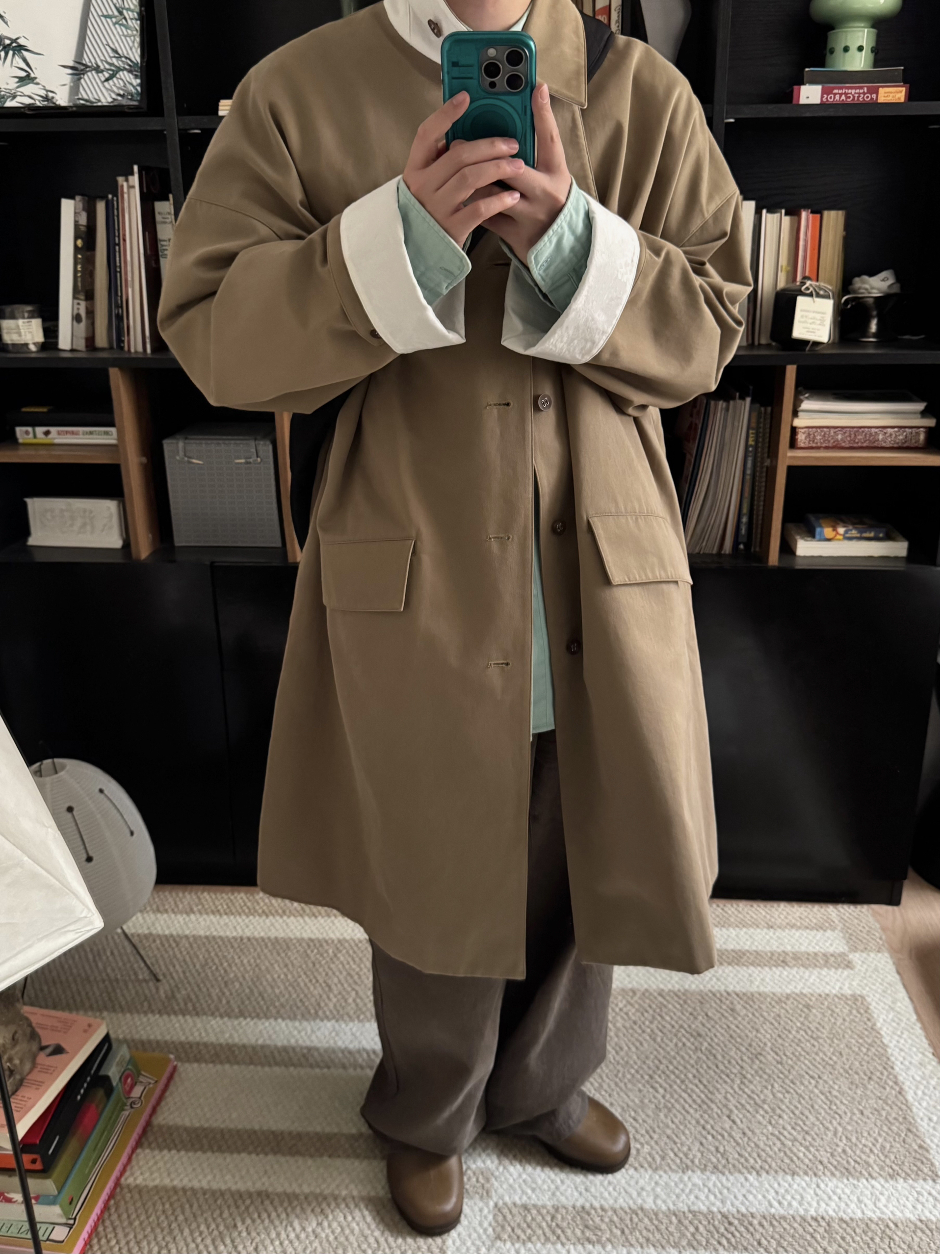 卡其大衣与薄荷绿的碰撞,有种奇怪的搭又那么的合适。让冬天不那么沉闷