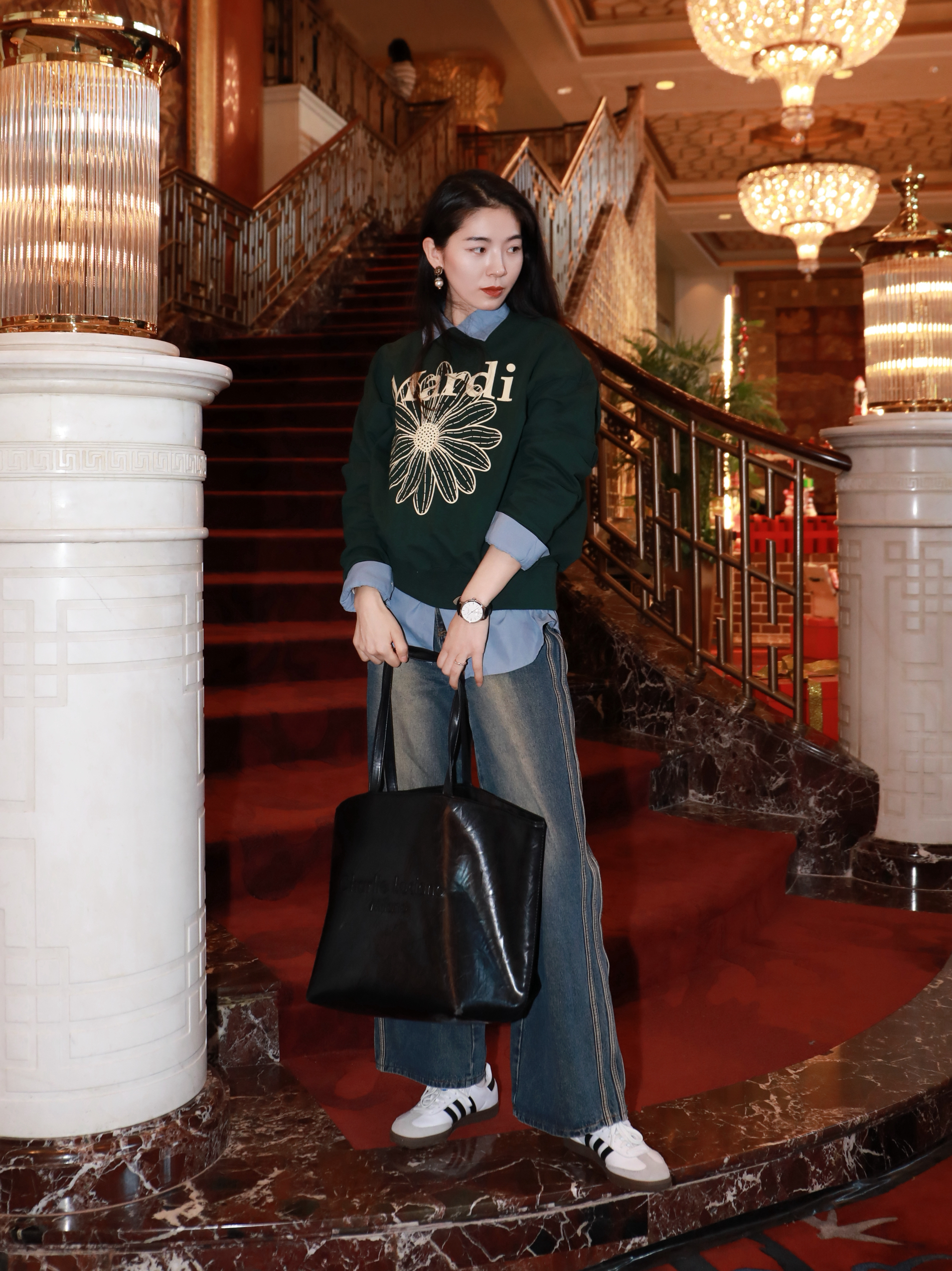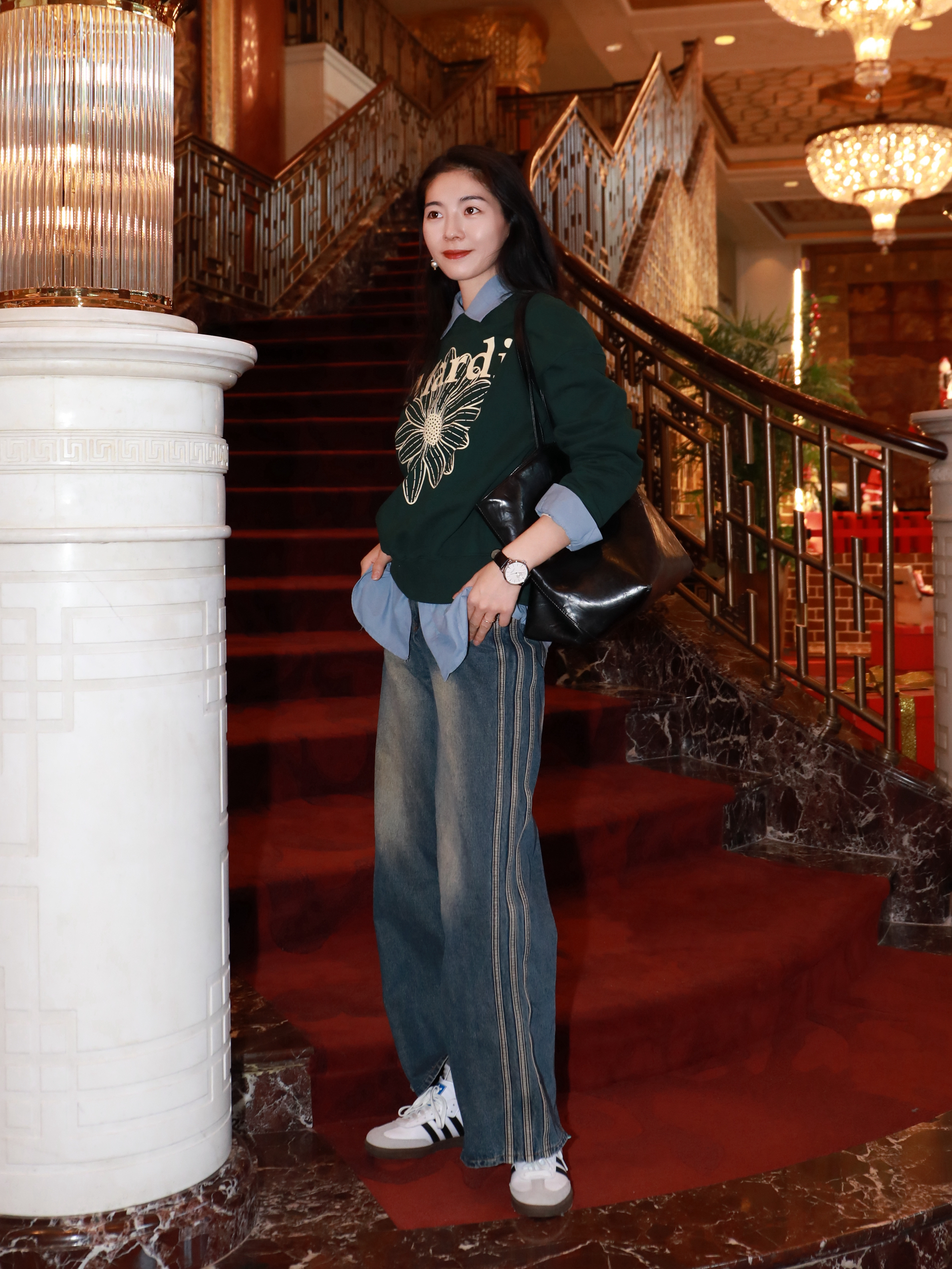 又是一个寻常午后 北京大饭店的圣诞氛围好浓烈 每个细节都是节日气息🌟 为了圣诞特意买了好多小单品 绿色的卫衣,白色的板鞋 手上的配饰更是少不了✌️ 海鸥家这块简约款的真的不腻 皮带子质感好好👍 作为圣诞的礼物🎁真心还不错