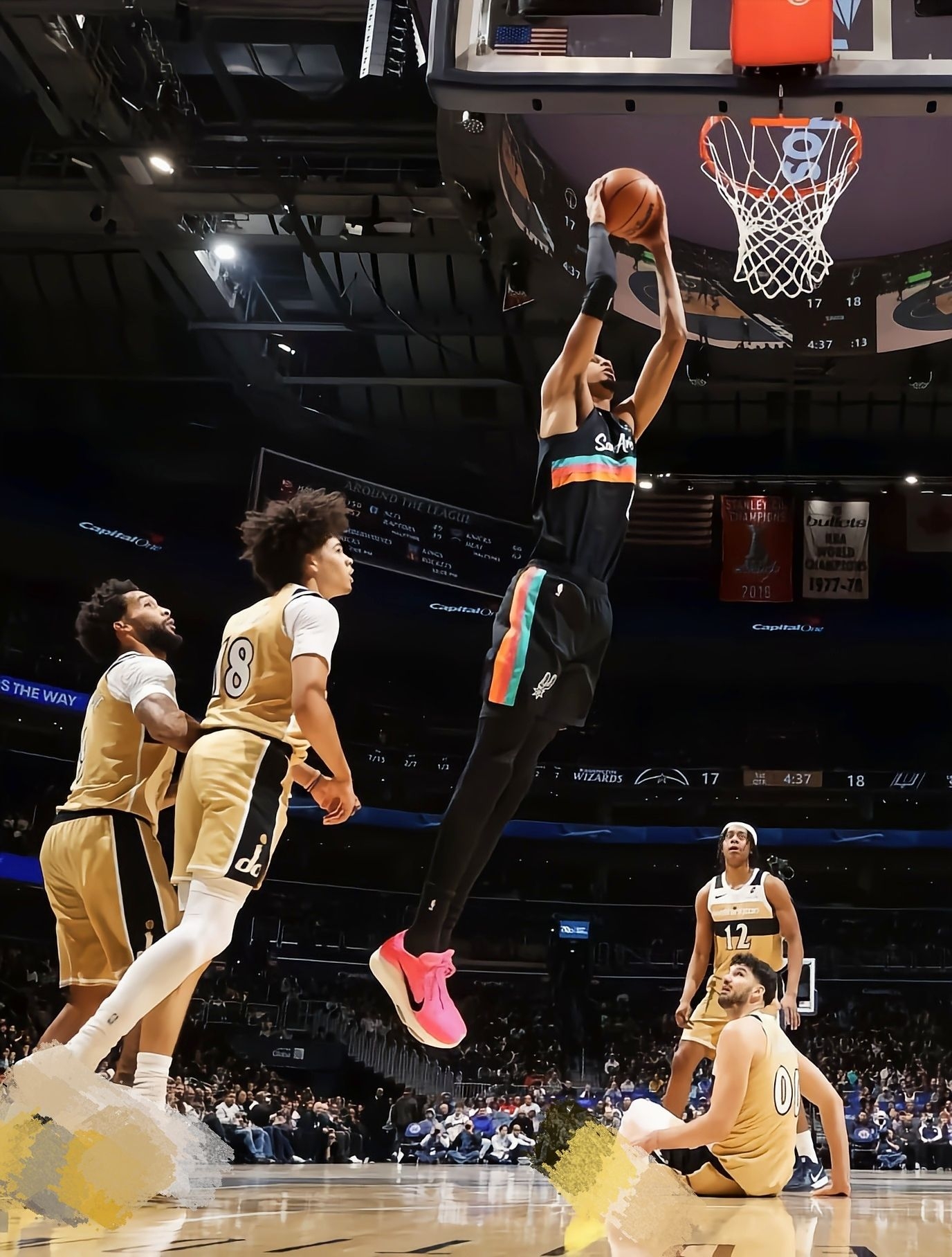 看马刺的比赛太爽了,124-113拿下胜利,文班亚马替补登场的表现依旧亮眼。 21分钟的出场时间里,他14投6中,拿下14分12篮板还有2助攻2盖帽,虽然是替补,但在内线的威慑力一点没减,篮板保护和封盖都做得很到位,每次起跳封盖的瞬间都让人忍不住喊出声。 更吸睛的是他脚上这双粉色Nike G.T Hustle3 PE,亮粉色的鞋身搭配黑色耐克勾,柔和的配色和他在场上硬朗的球风形成了反差感,...