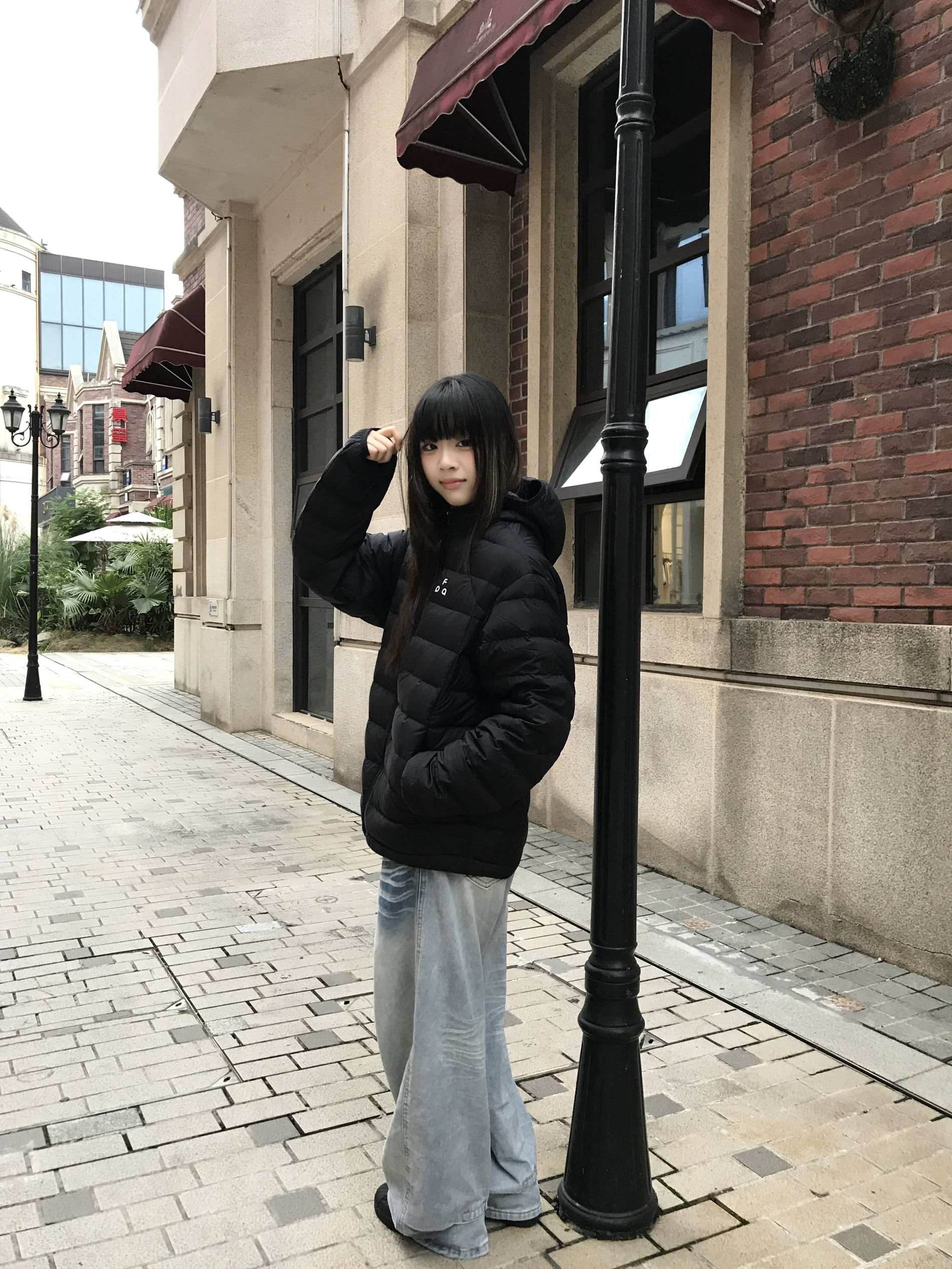 黑色羽绒服➕浅水洗牛仔裤 秋冬毫不费力的简约高级感直接拿捏~ 本人现在已成排骨羽绒服重度依赖 就像洞洞鞋一样穿过一次就有无数次🔒 这件上身的简约高级感谁懂 轻薄到毫无存在感但又很抗风保暖 黑色耐脏又百搭高级完全是秋冬战衣首选!
