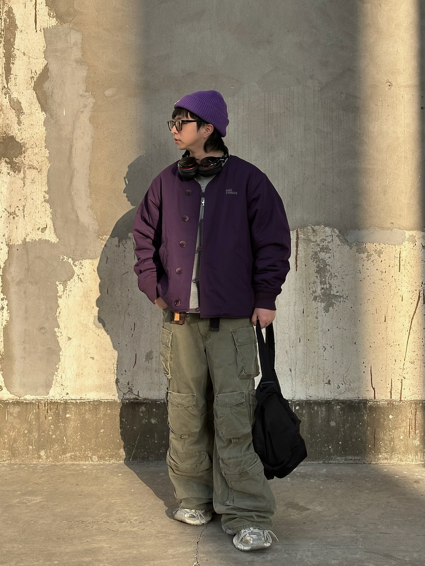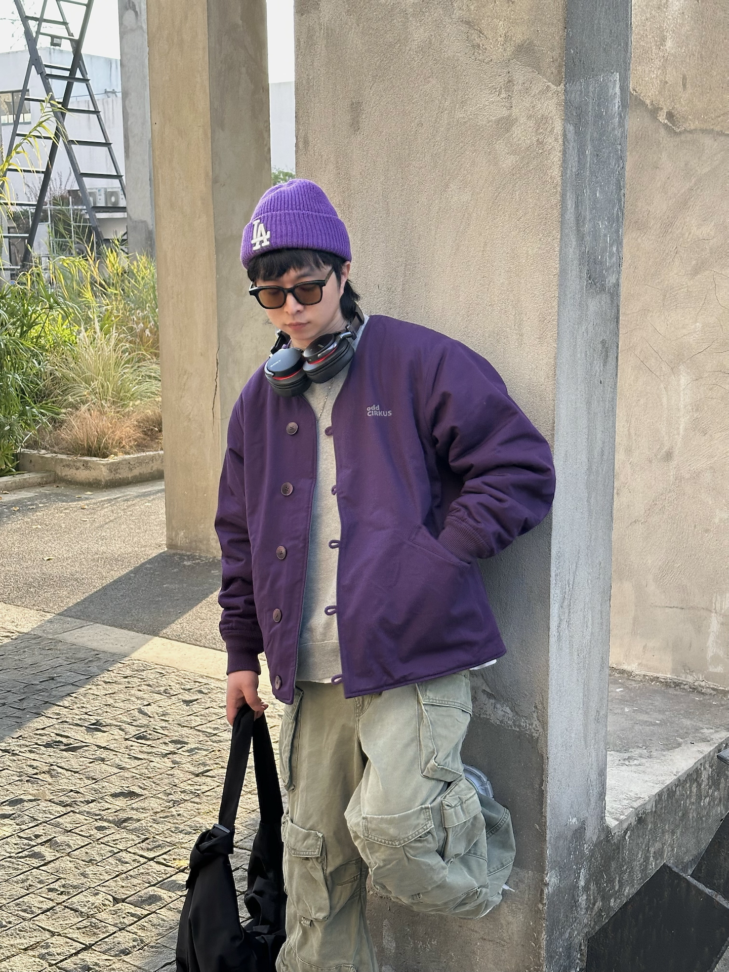 哈喽👋🏻大家好哇 这里是🪨石地夫的穿搭小日记📝 - 秋冬季🍂黑白灰穿多了太沉闷 偶尔也要来点色彩来调节心情💜 今天出门穿的这件 #ODDCIRKUS 紫色夹克 经典的日系cityboy无领工装版型 内里是灰色摇粒绒非常暖和🔥 摇粒绒那面也可以翻过来,两面穿设计✨ 一衣多穿,真的很加分☑️ #一件夹克时髦过冬 #addcirkus #给冬天点颜色瞧瞧 #冬天不止黑白灰 #一件摆脱路人感