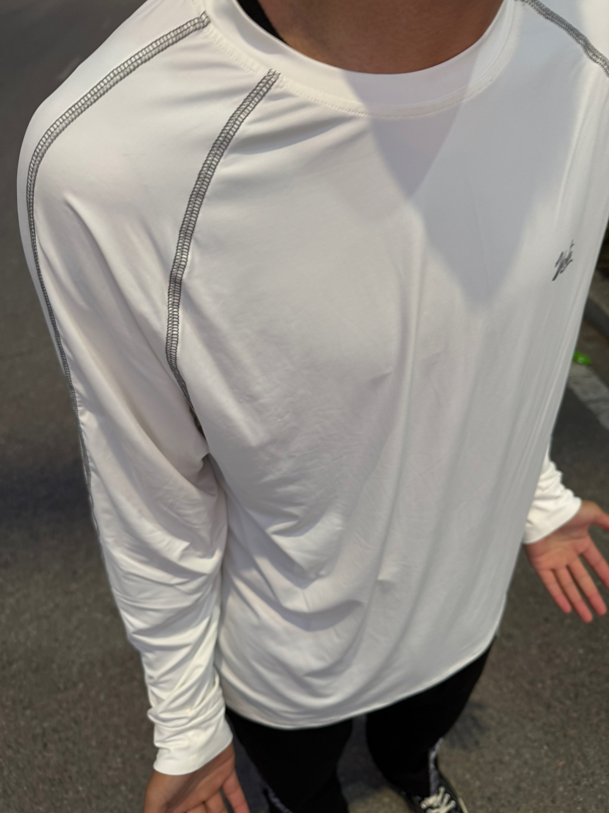 🤍这个 维动 VEIDOORN 迅影白色速干长袖T恤 轻薄冰丝面料 具备吸湿速干、冰爽透气等功能,保持干爽舒适! 圆领设计简约大方 肩部和袖子明线拼接,层次感满满✨ 胸前品牌刺绣低调有辨识度,宽松版型适合各种体型 跑步、健身、户外都能轻松驾驭 兼具功能与时尚感,运动穿搭首选!🌟