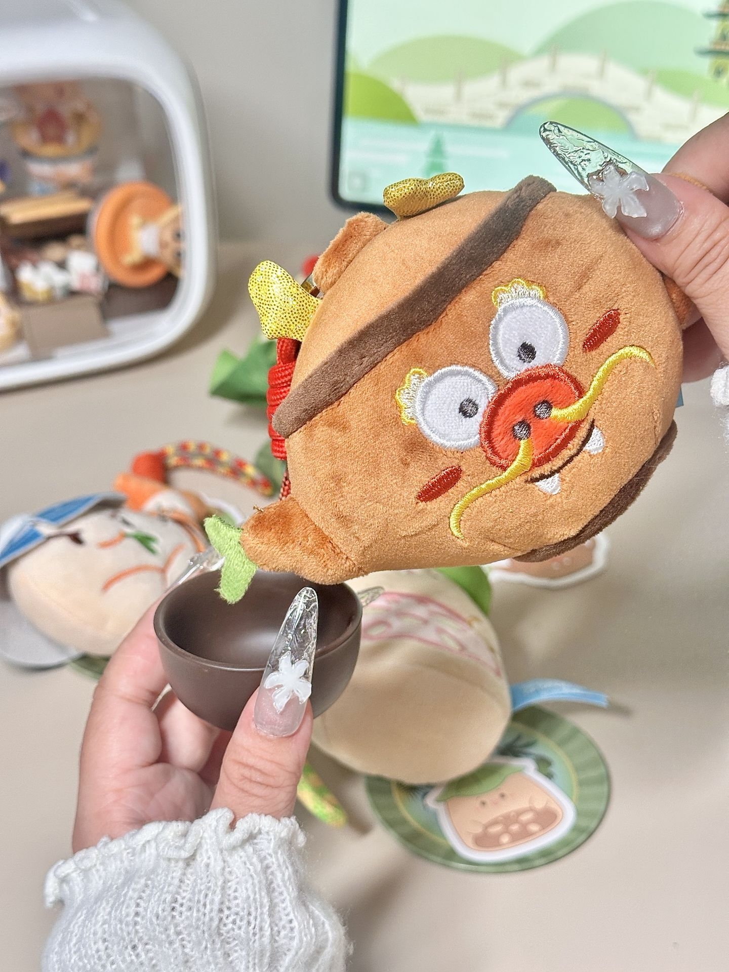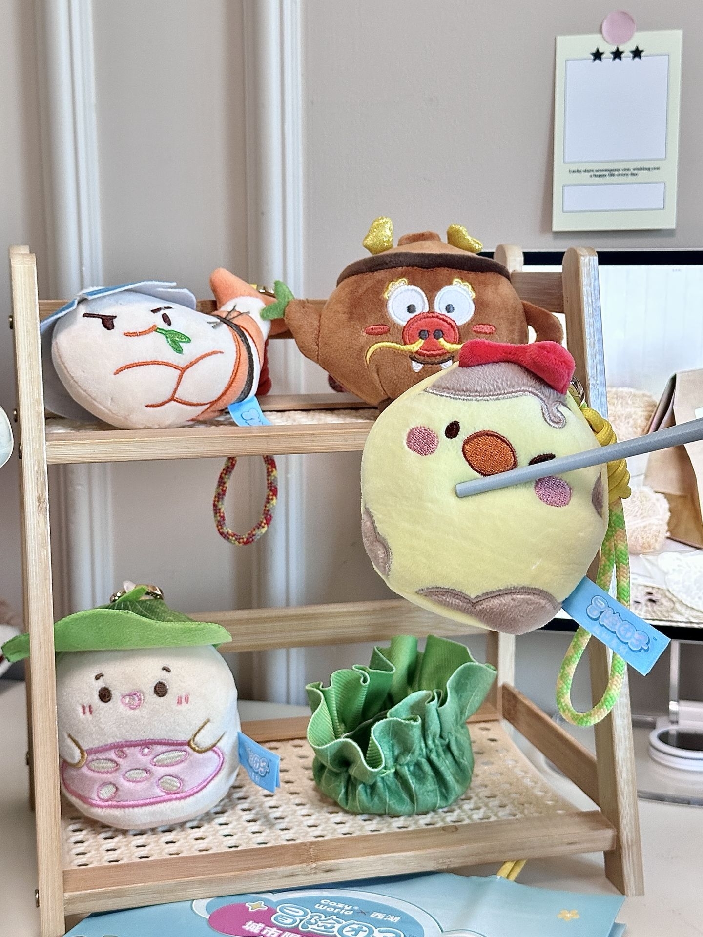 #大人也要玩玩具 家人们,看来我的日子也是好起来了 连我的包都能吃上楼外楼的三菜一茶🍵 我选了软fufu的叫花鸡🍃 从荷叶里取出来捏一捏,还有声音 搭配上我喜欢的糯叽叽的糯米藕🪷 我觉得龙井茶壶🫖长的好有意思 让我想到了胖胖的太乙真人 还有待着渔夫帽的龙井虾仁🍤 我觉得一看就很鲜美,挂包上看着好饿… 想再去一趟西湖了ꉂ ೭(˵¯̴͒ꇴ¯̴͒˵)౨” #玩上了解压玩具 #解压玩具捏捏乐 #可爱的毛...