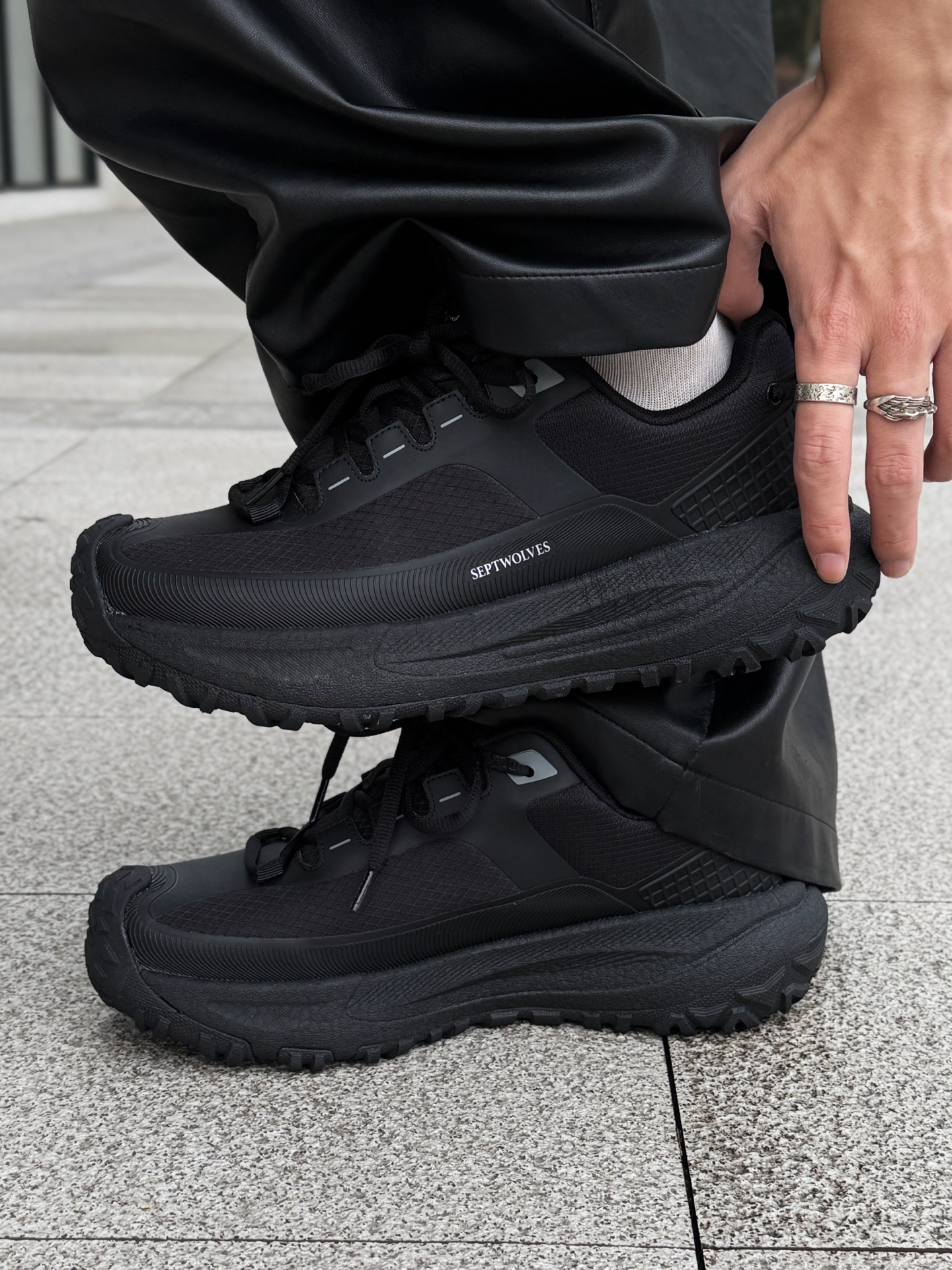 黑羽绒服+七匹狼全黑老爹鞋,这“暗黑冬日感”直接焊在穿搭里 谁懂这套全黑搭配的氛围感啊—— 羽绒服的白色竖排logo打破纯黑单调,亮面质感自带潮点;踩一双七匹狼全黑户外鞋,厚底显腿长还能和衣身形成材质呼应,往城市街头一站,暗黑冬日的酷感直接拉满。 不用费心搭,全黑组合就能拿捏冬日暗黑潮感! #七匹狼SEPTWOLVES #一脚踏入冬 #圣诞炸圈限定鞋 #送ta新年第一份礼物 #冬日城市漫...