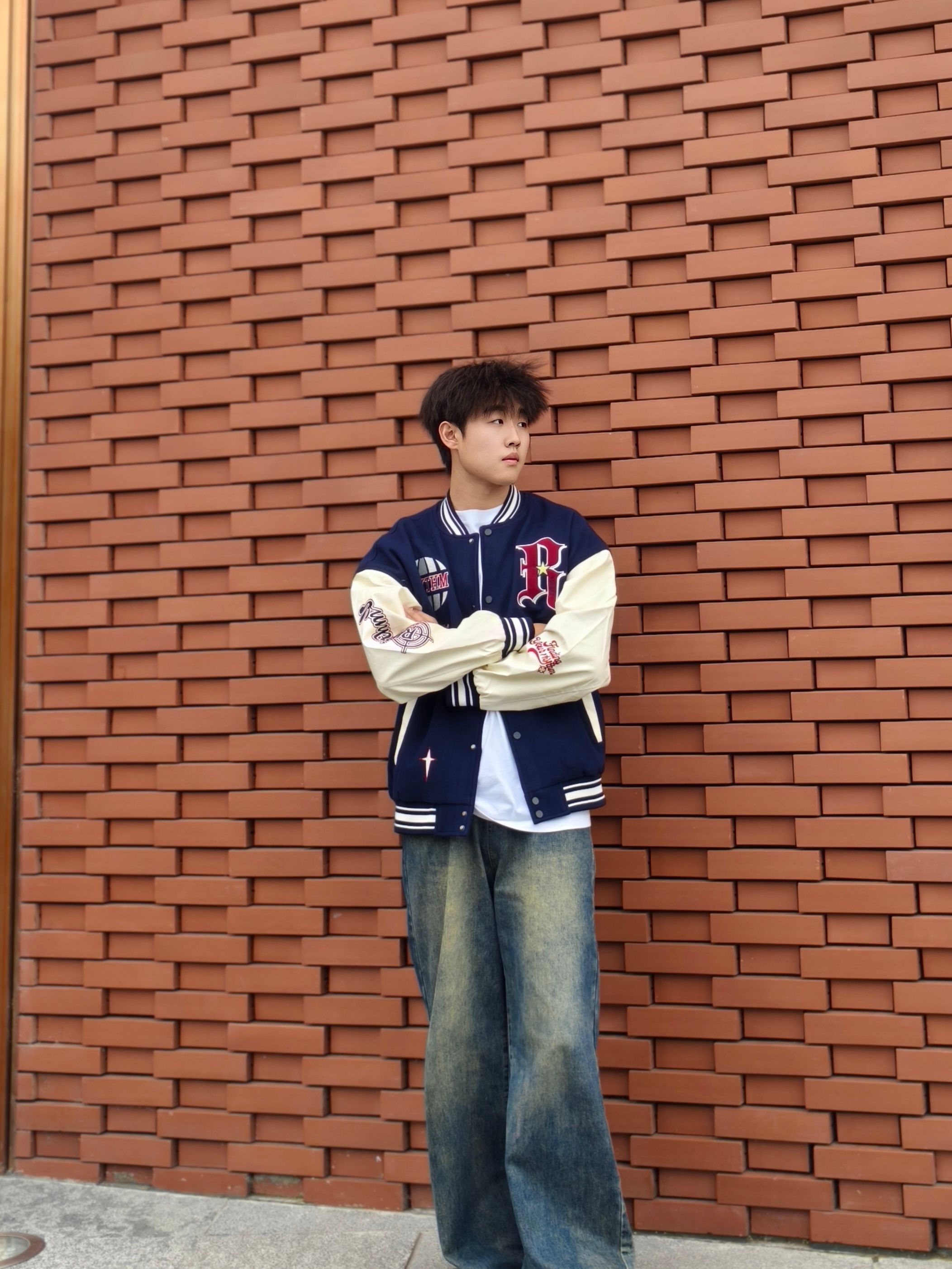谁懂啊!藏青白拼色棒球服真的是少年感神装✨ 搭配水洗阔腿牛仔裤,慵懒松弛感直接拉满 随便往地铁站、红砖墙旁一站,日系胶片感就出来了 内搭简单穿件白T,再挎个帆布包 不用费心思的搭配,却能穿出清爽的少年气 这一套不管是日常出街还是拍照都超合适