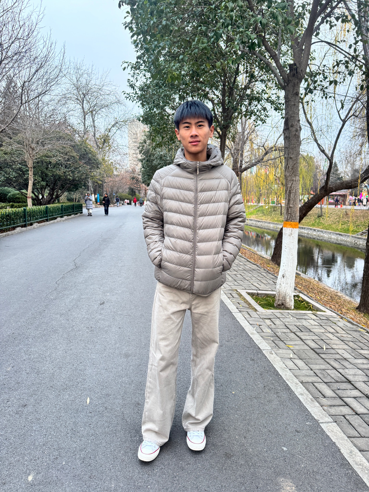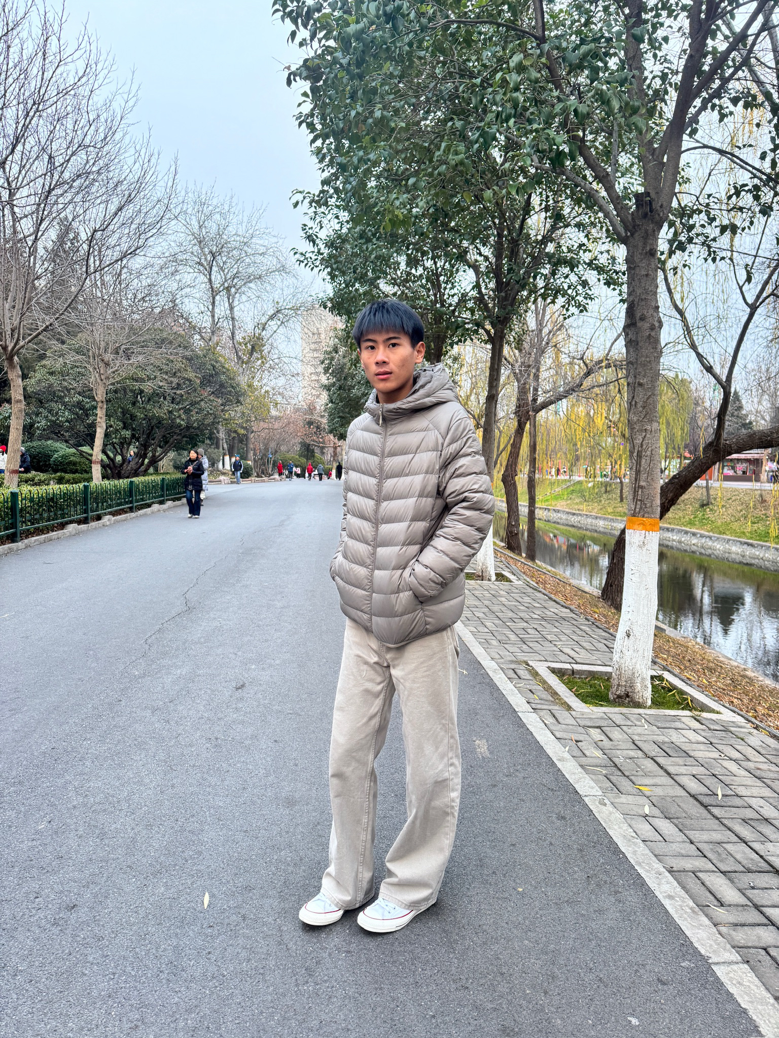 上身的是今年超流行的排骨羽绒服 简约大气 白白净净 鞋子是匡威家的匡威低帮 白色的设计也很干净 关键是 它真的太百搭