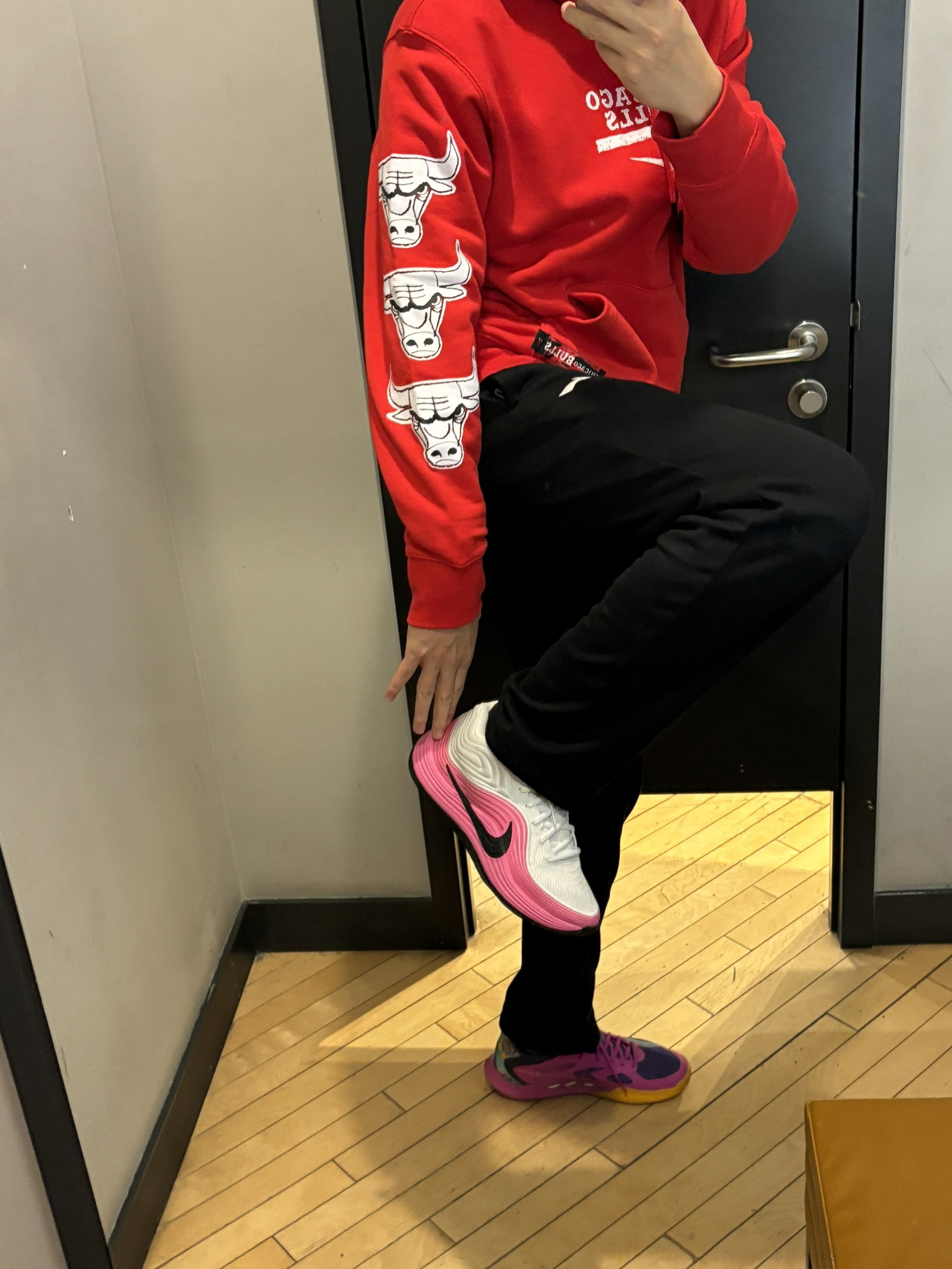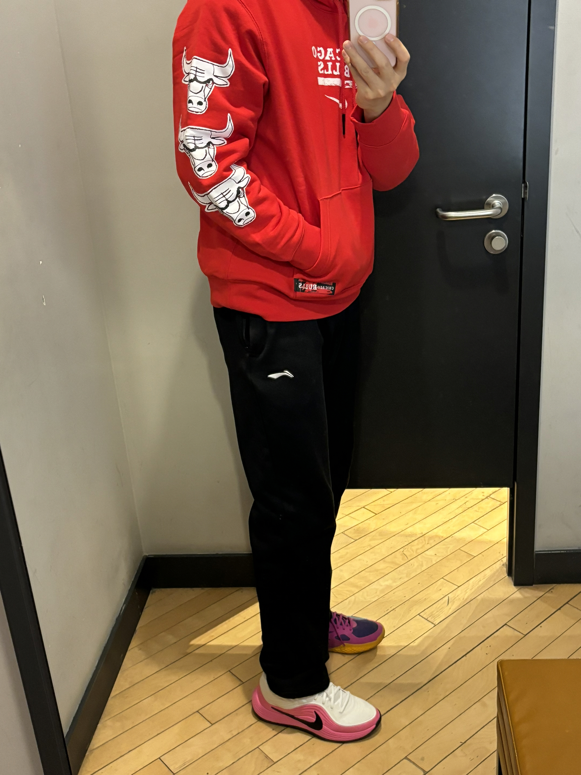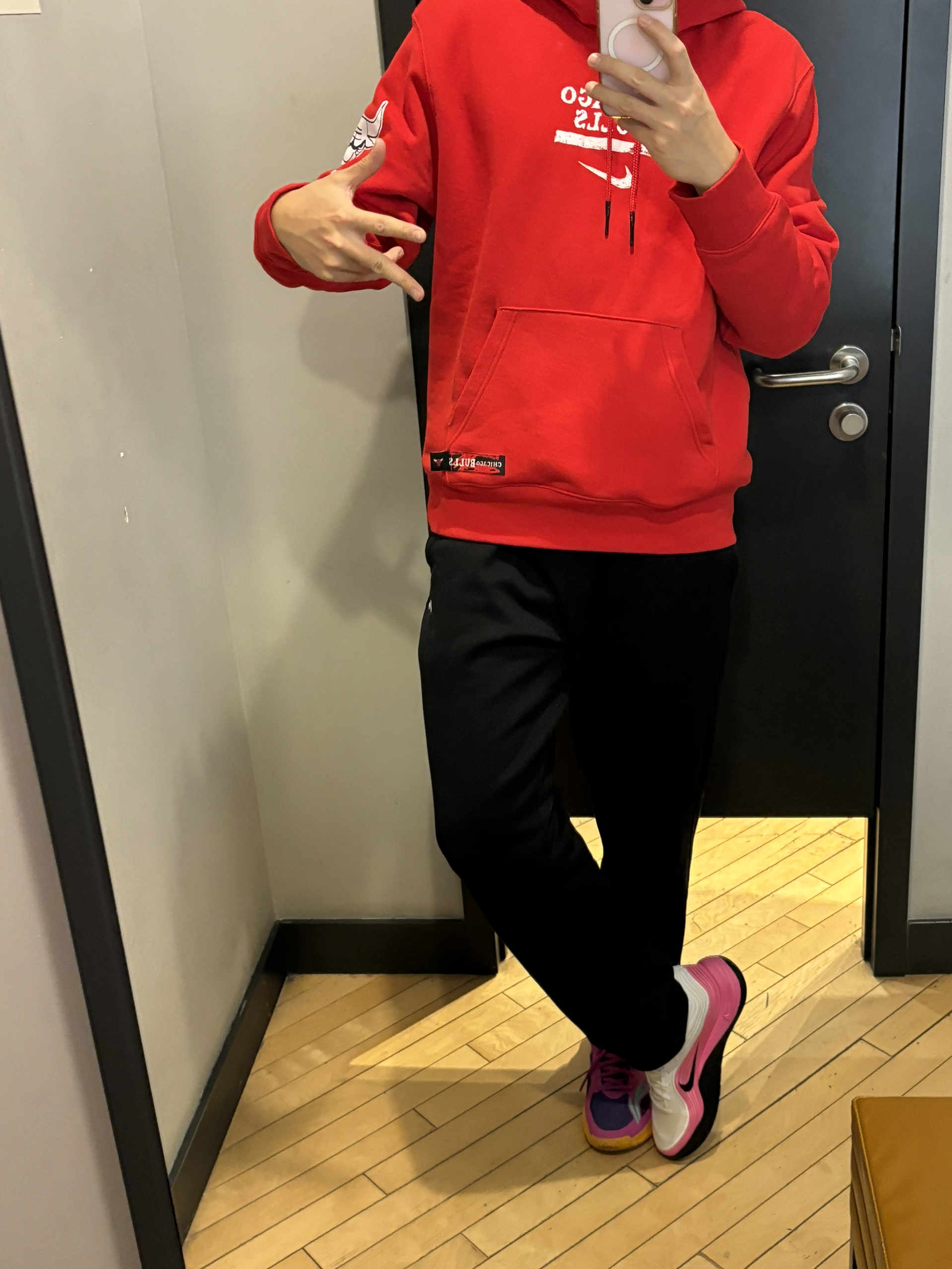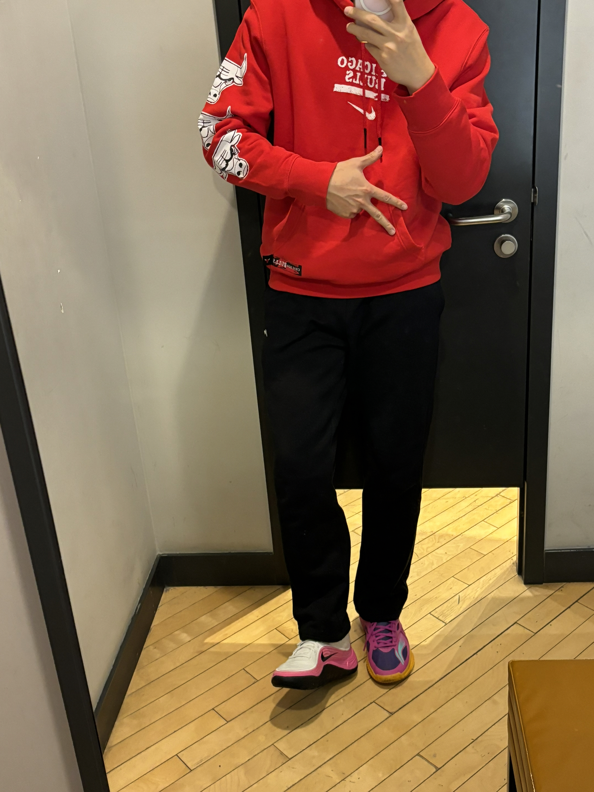 2025年度复古明星穿搭你猜猜这是谁? 冬天不止黑白灰 复古风终于是吹到了冬季 经典的黑红配色芝加哥公牛队卫衣 侧面的小印花公牛🐂很霸气 搭配黑色直筒裤很显瘦 一双精密8点睛之笔