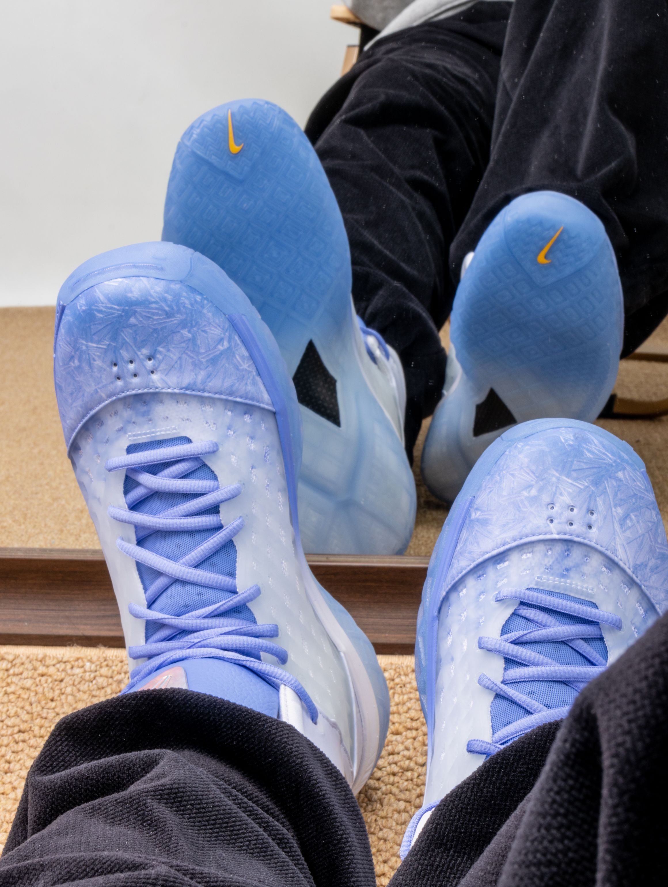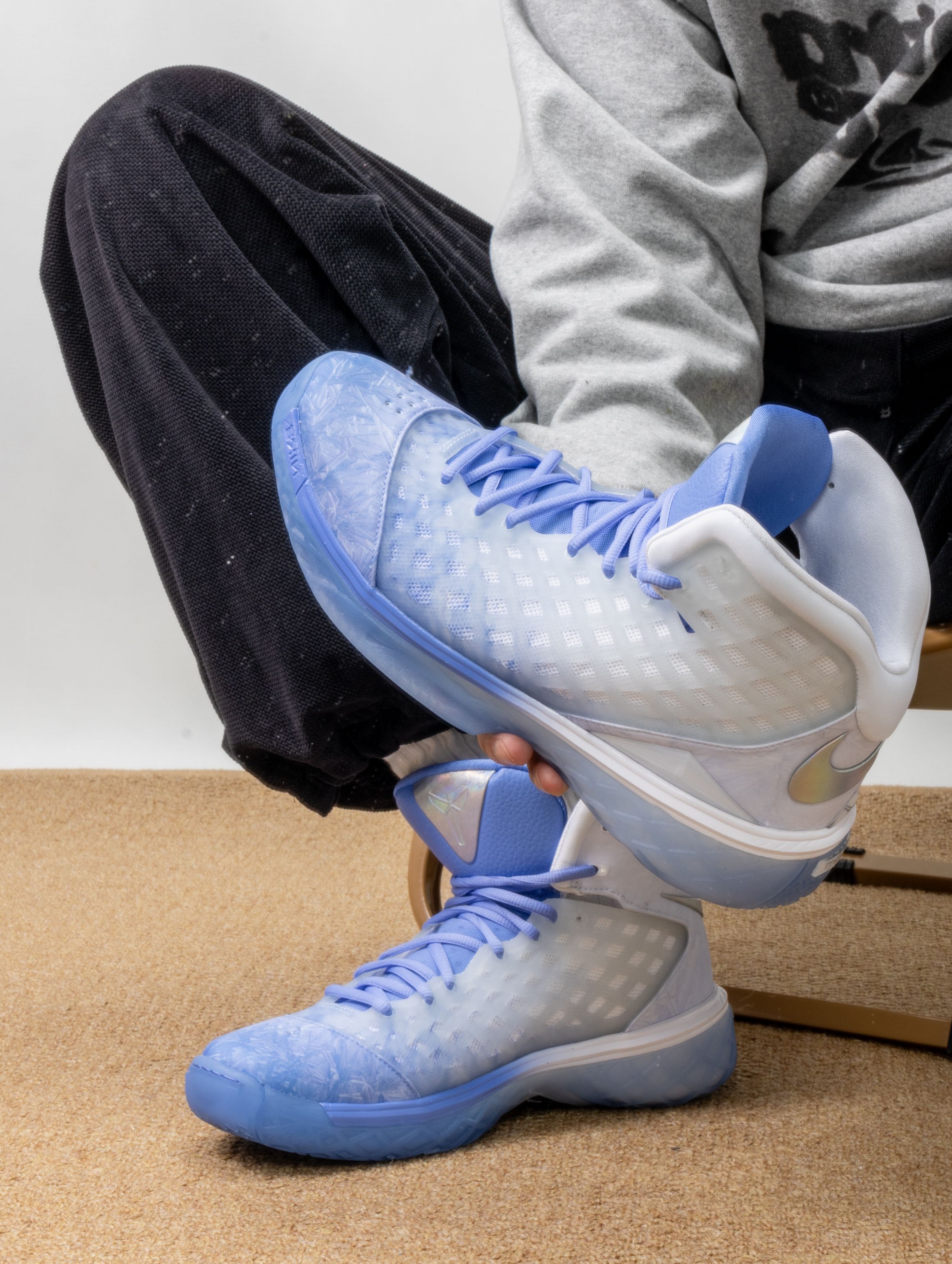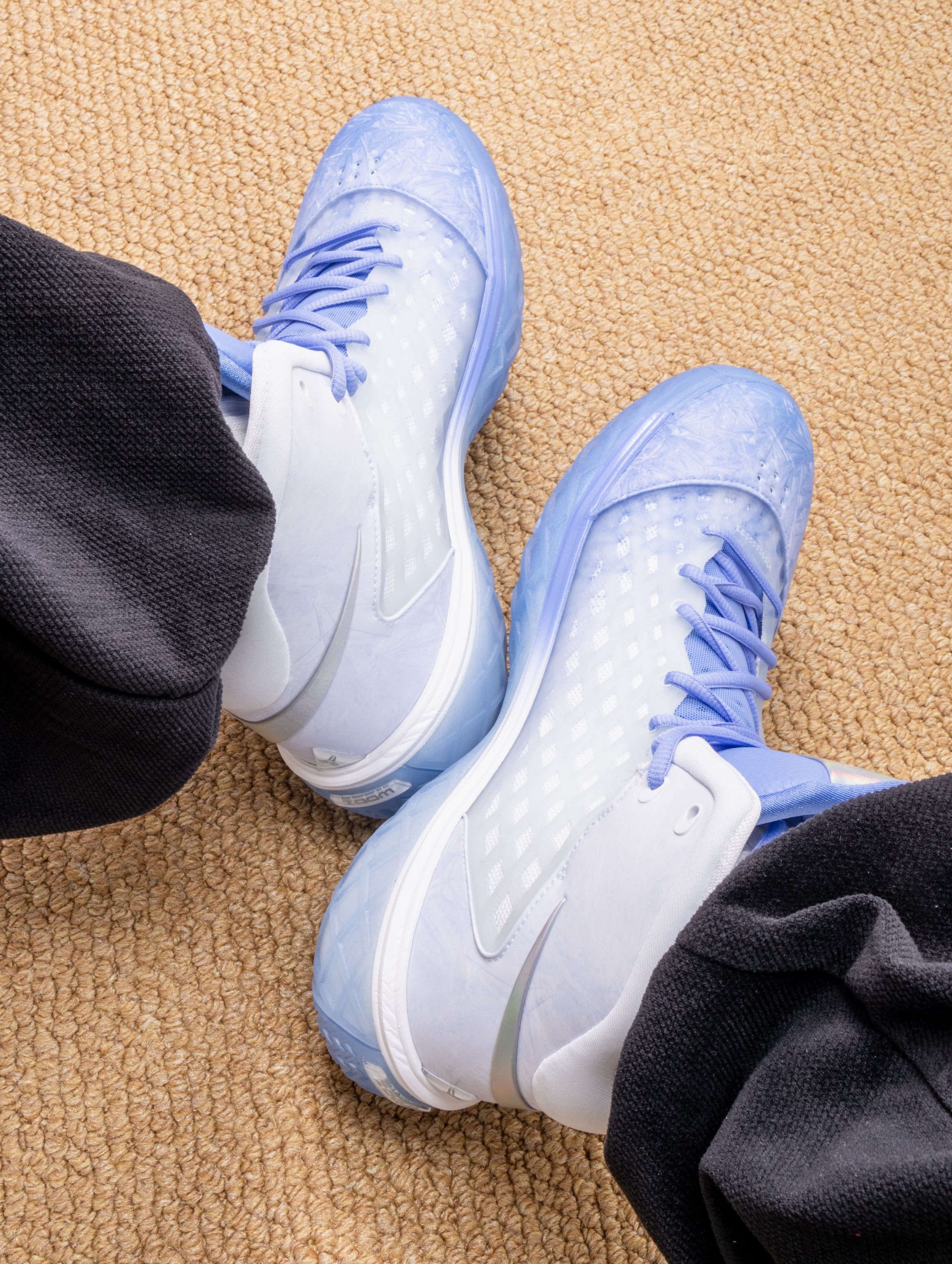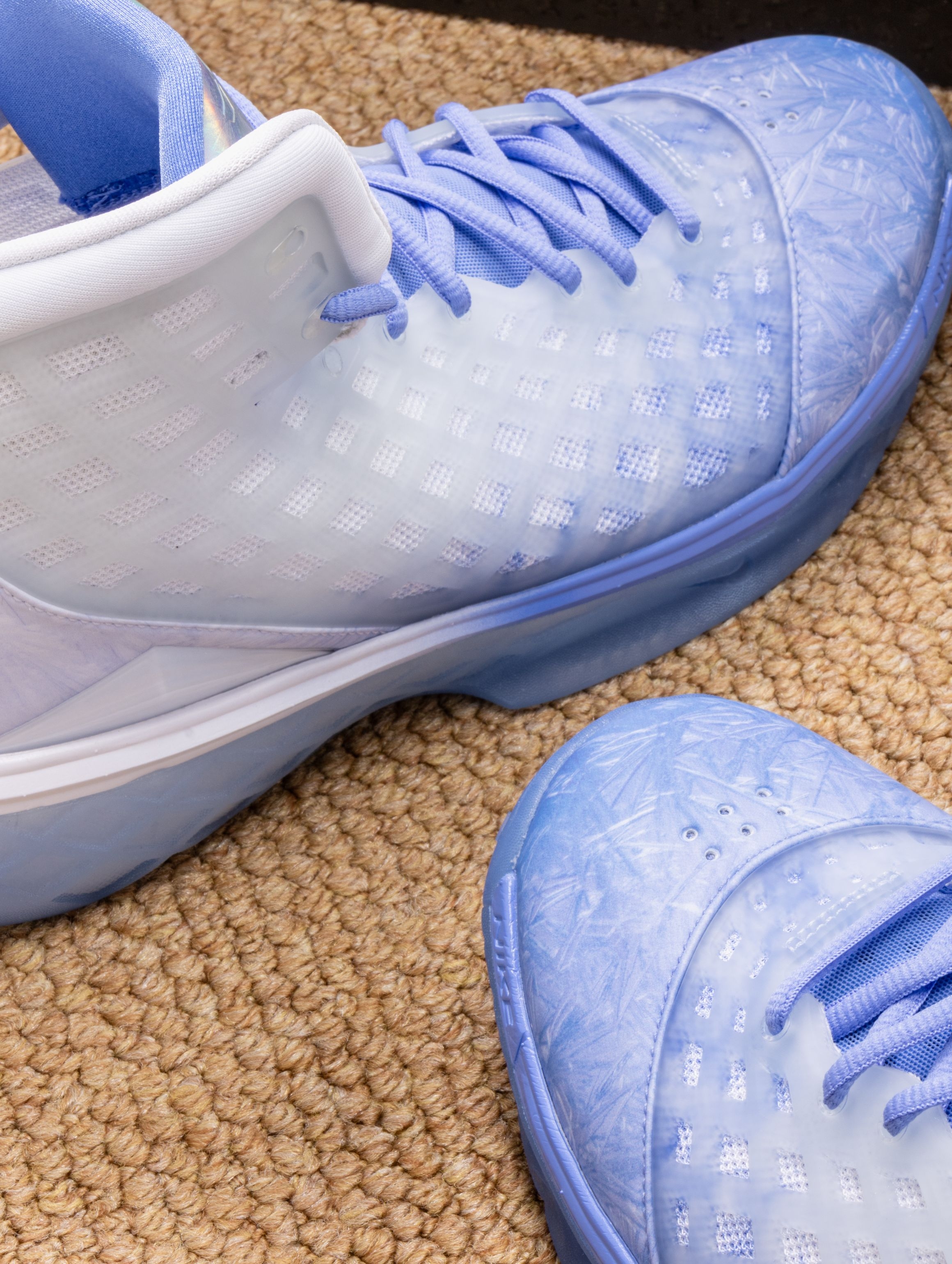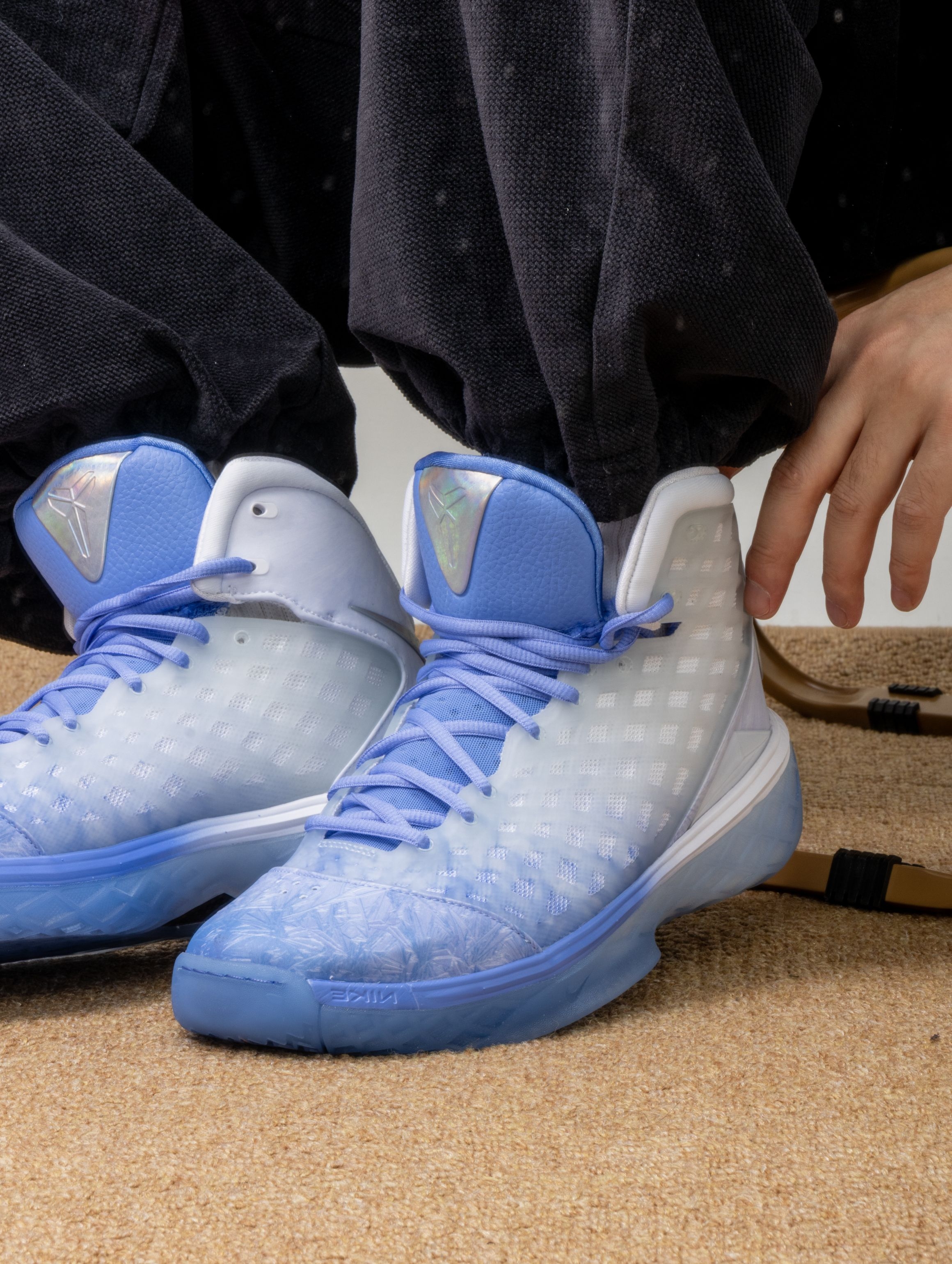 这双Kobe 3 Protro圣诞限定,实物美得像一件冰雪艺术品。❄️ 渐变蓝白的鞋面如同冬日破晓的天空,从鞋头的冰蓝过渡到后跟的霜白,每一寸都带着静谧的光泽感。 上脚后,Protro升级的中底让脚步异常轻盈,前掌Zoom响应迅速,落地时缓冲柔和。鞋面虽然看起来清凉,包裹感却做得扎实,做急停和转身时脚在鞋内几乎零滑动。 无论是搭配浅色运动裤营造冬日清爽感,还是作为球场上的焦点战靴,它都在安静地...