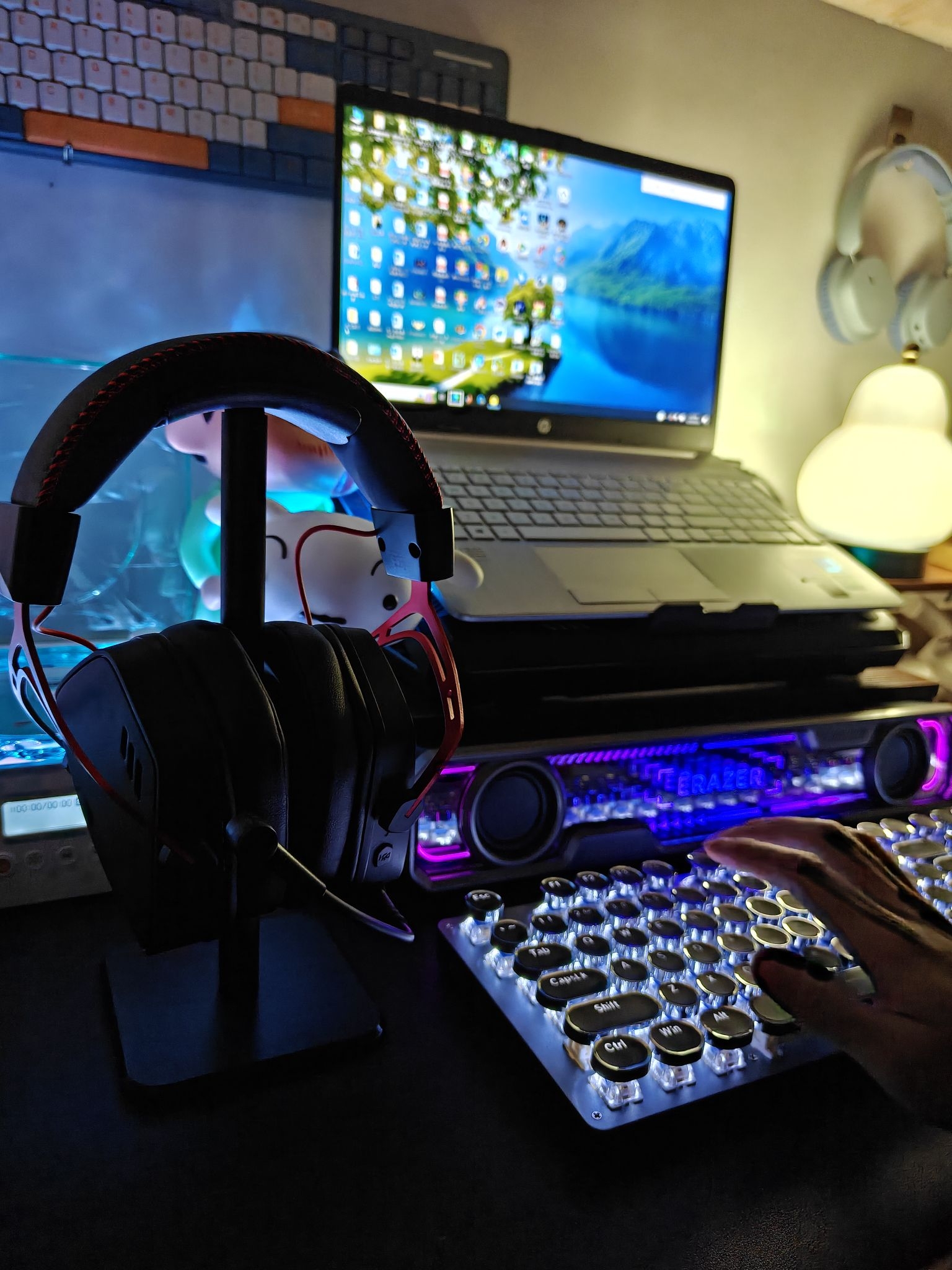 ⭐兄弟们,你能看出我这桌面是在关灯情况下拍摄的吗☺️☺️☺️,rgb灯效真的让我坐在这里都成了一种享受😍😍 ✅我的前行者tk100键盘、蒙奇奇散热器、联想w108音箱的灯效,看起来真的很不错,整个桌面都亮堂堂的 ✅键盘用起来很舒服,敲击感很强,延迟很低⌨️;音箱的深渊镜像灯效很好看🤩🤩,电竞感很强,而且音质也很不错👂🏻👂🏻;散热器的灯效也挺不错,而且两个扇叶,散热效果很好🥵🥵🥵 ✅这个桌面在宿舍用...