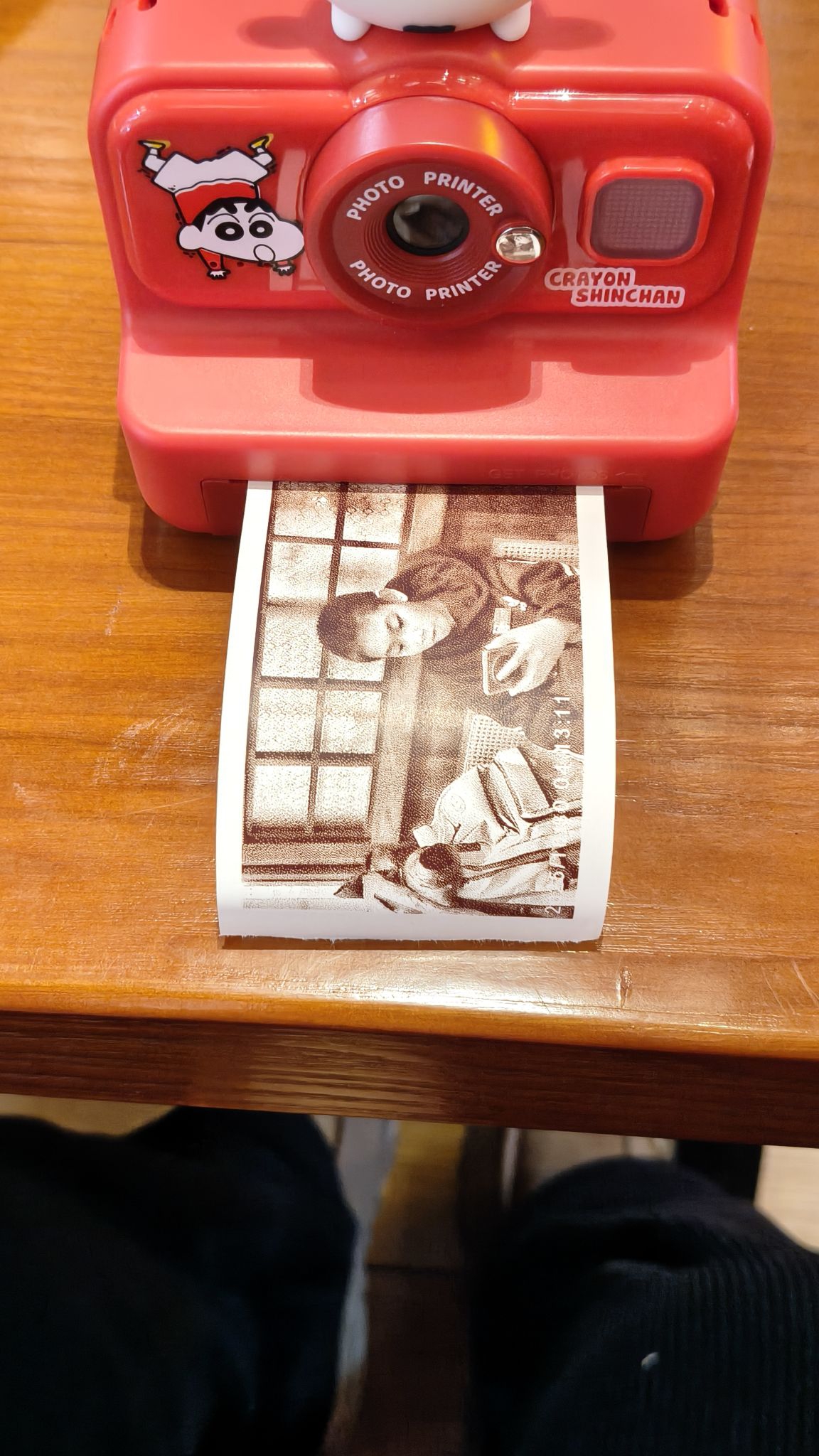 正红色机身超亮眼,漫画感十足,摆在桌上当装饰正合适,双旦送人或者自留都超合适,氛围感直接拉满。 关键是它还能长期用,自带两卷相纸,能用很久。拍完立刻就能出片,你看,儿子的瞬间都打印得一清二楚,虽然是单色的,但那种线条感的复古效果真的绝了,画面逼真又有味道,给娃拍日常、和朋友合照都超有纪念意义,现在已经成了我出门必揣的心头好!#蜡笔小新