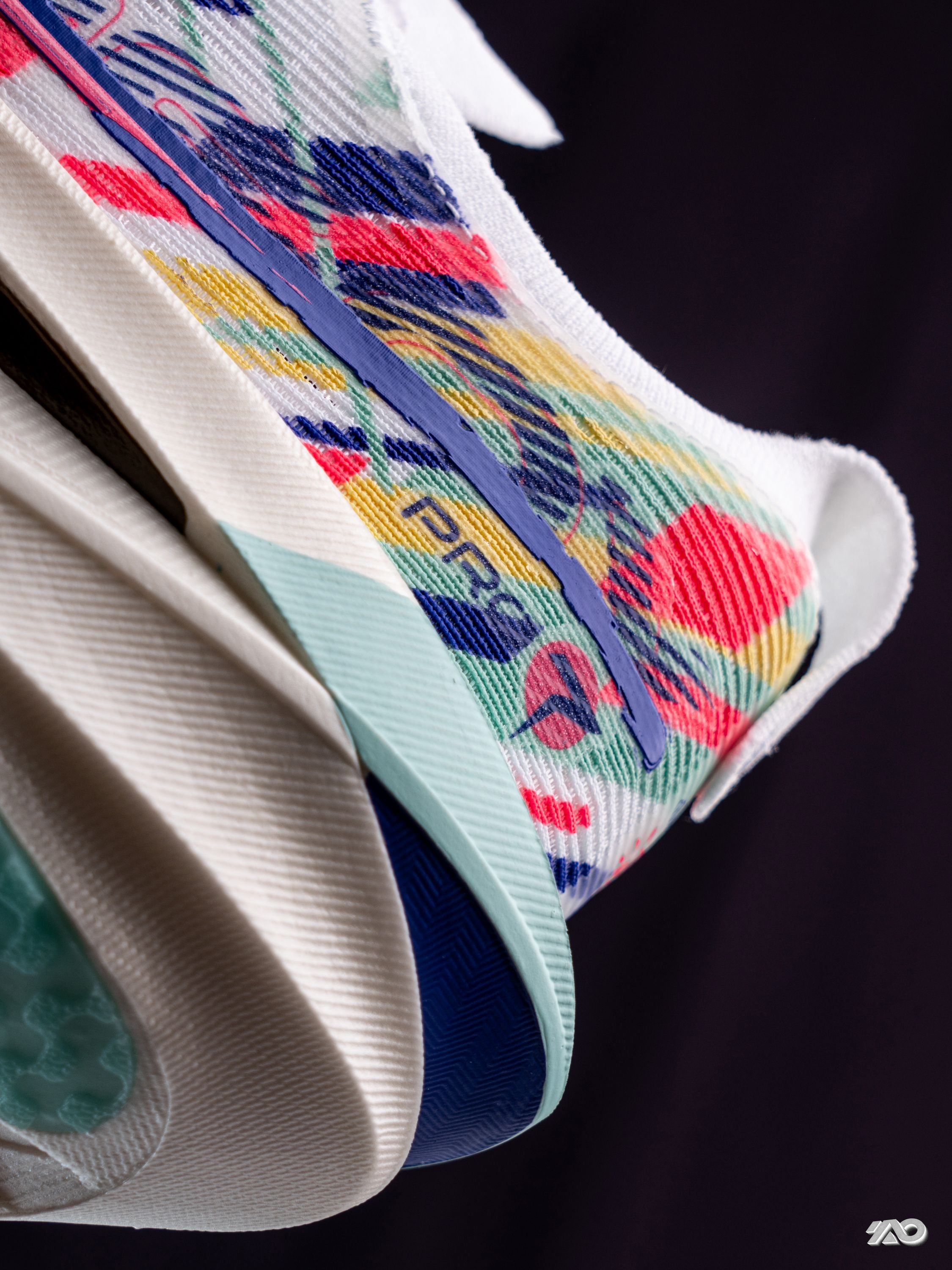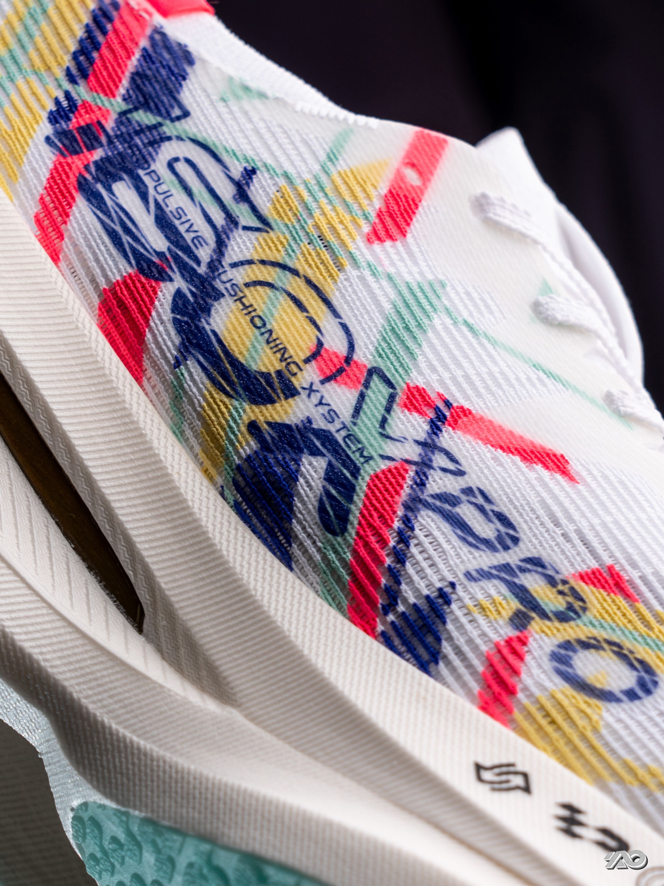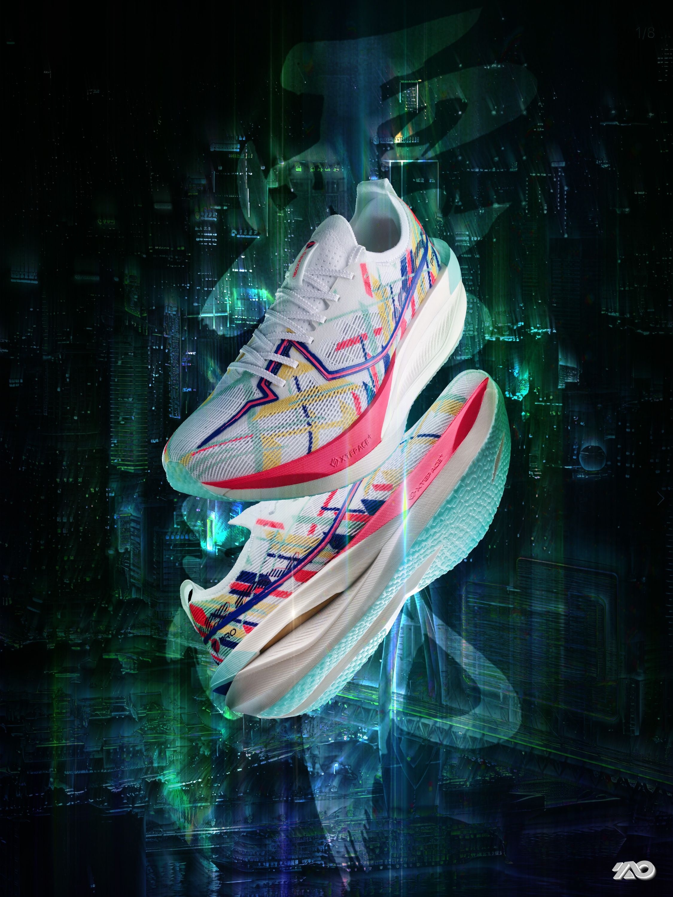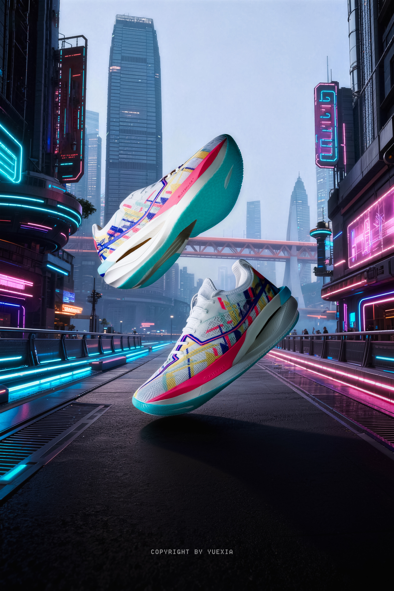 重庆这座城市, 虽然还没机会去, 但拍过跟其相关的产品可不少。 上一次160X 6.5是以重庆的出租车为灵感做的主题配色。 这次160X 7.0 PRO则是把重庆这座8D城市和它迷幻的夜景相结合,带来了赛博朋克般的配色方案。 鞋身上的色块又像霓虹灯牌,又像穿梭楼宇的轻轨,还能让人联想起《重庆森林》这部电影。 鞋后跟的“渝”和“雄起”也延续了今年马拉松城市主题配色的文字元素。 可能只有去一趟重庆, ...