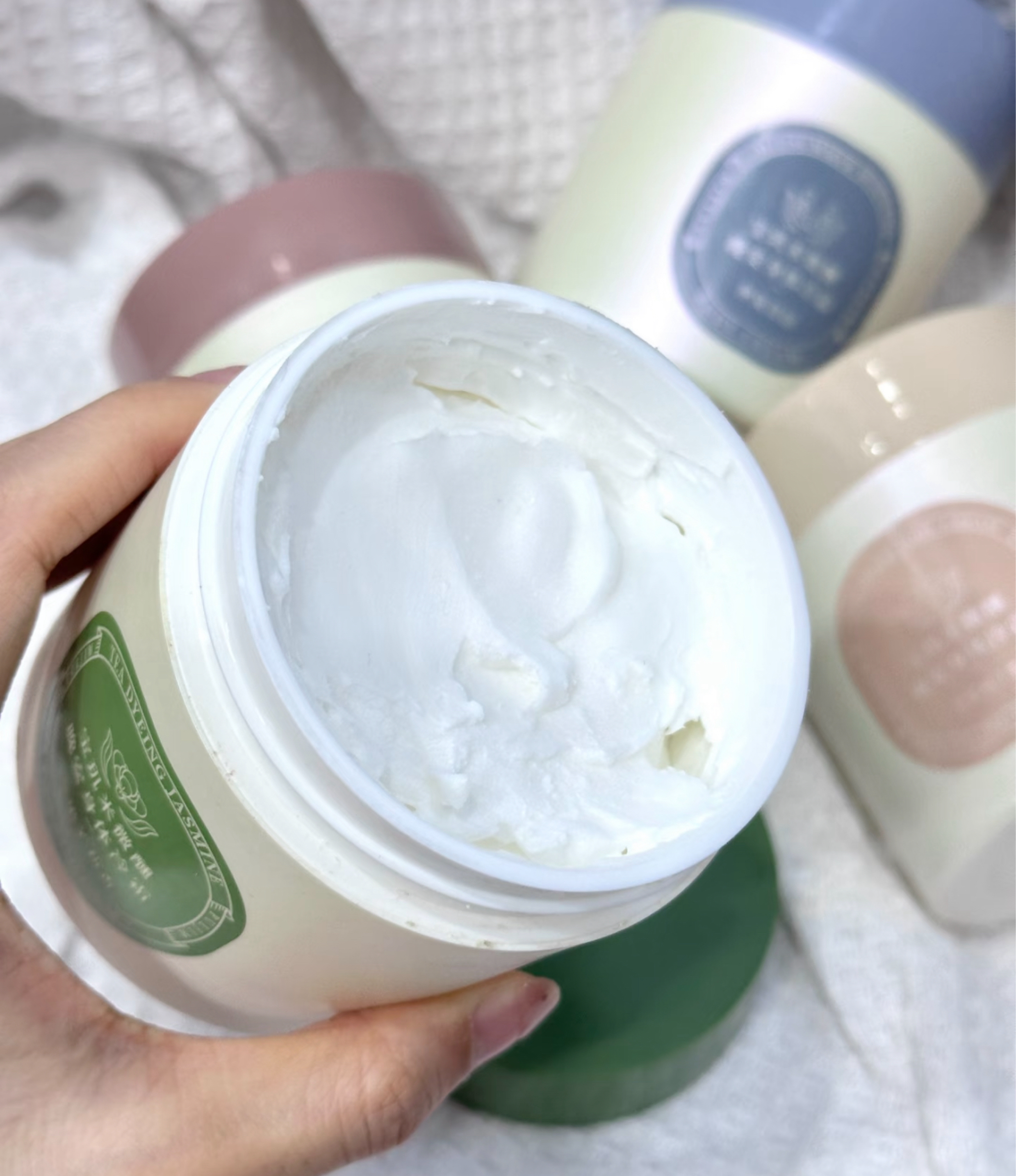 宝玑米冷霜真的好好闻啊,用了小样都觉得好好闻,绿色的茶染茉莉就是很纯正的茉莉味,像茉莉奶绿的味道,夹杂着一些些茶味,夜莺与玫瑰就是淡淡的玫瑰味,闻着让人很安心,躺在被窝里都是那个味道,雪落栀子的味道比较浓一点,很好闻的花香味,不会熏人的那种,空庭与芍药很好闻,也是淡淡的香味,就是衣服洗的很干净的感觉,闻着很上头,这个我也特别喜欢😍米墨丹青是大米的味道,还有一丝丝宝宝的奶香味 推荐指数: 夜莺与玫瑰...