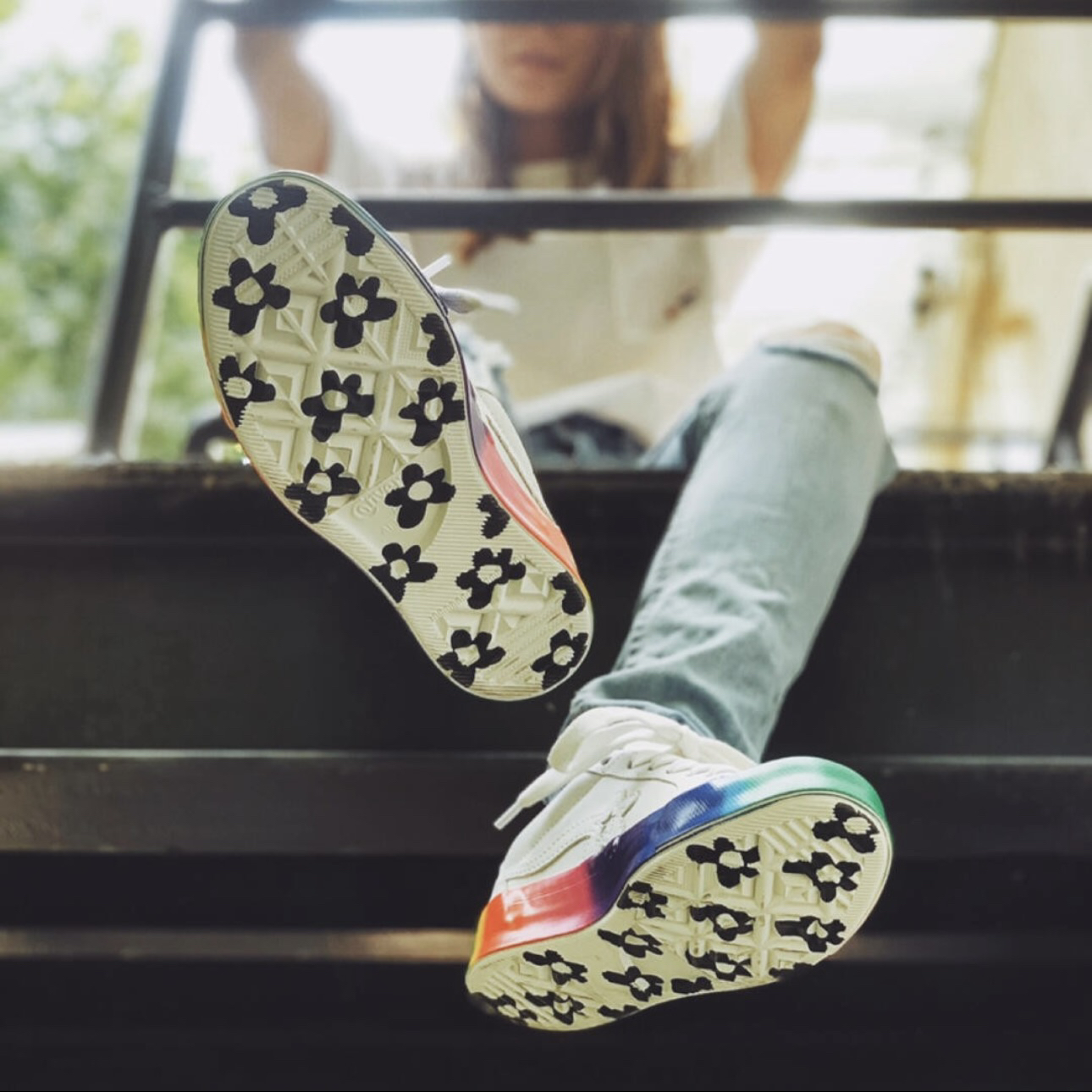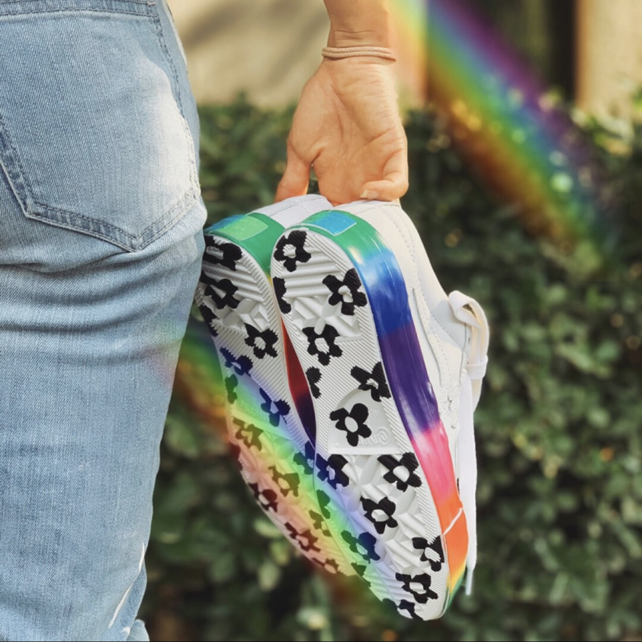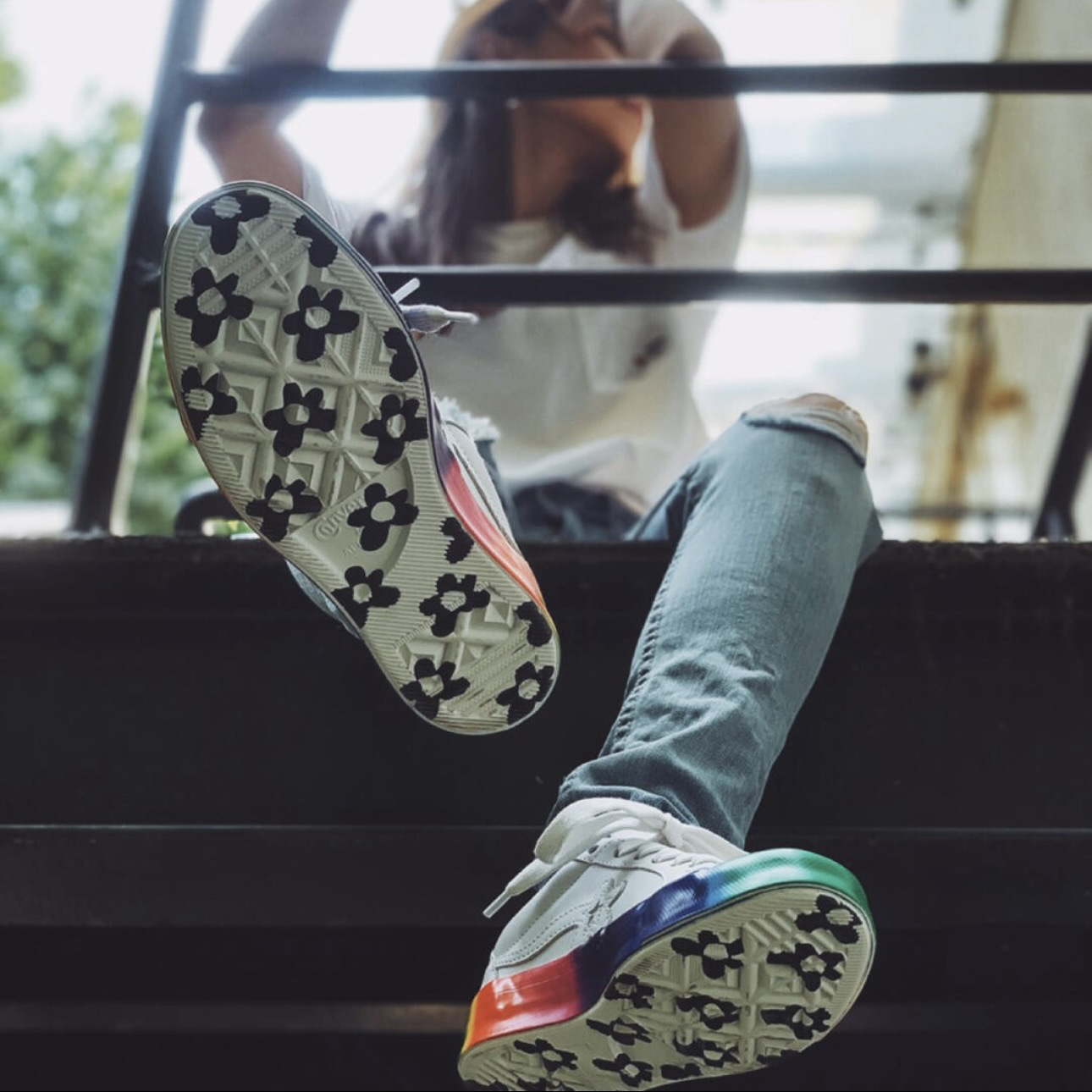 👕推荐单品 Converse x Golf le Fleur One Star 白彩虹底低帮板鞋 🛒推荐理由 Converse与Golf le Fleur联名款采用白色皮革鞋面搭配彩虹渐变果冻大底设计,清新活泼又具潮流辨识度;鞋侧花朵星星标志替代经典星标,细节感拉满,橡胶大底兼顾耐磨性与防滑性,低帮鞋型适配多种穿搭风格,女生可搭配白色短款印花T恤+彩色格纹百褶裙、浅粉色针织开衫+白色高腰阔腿...