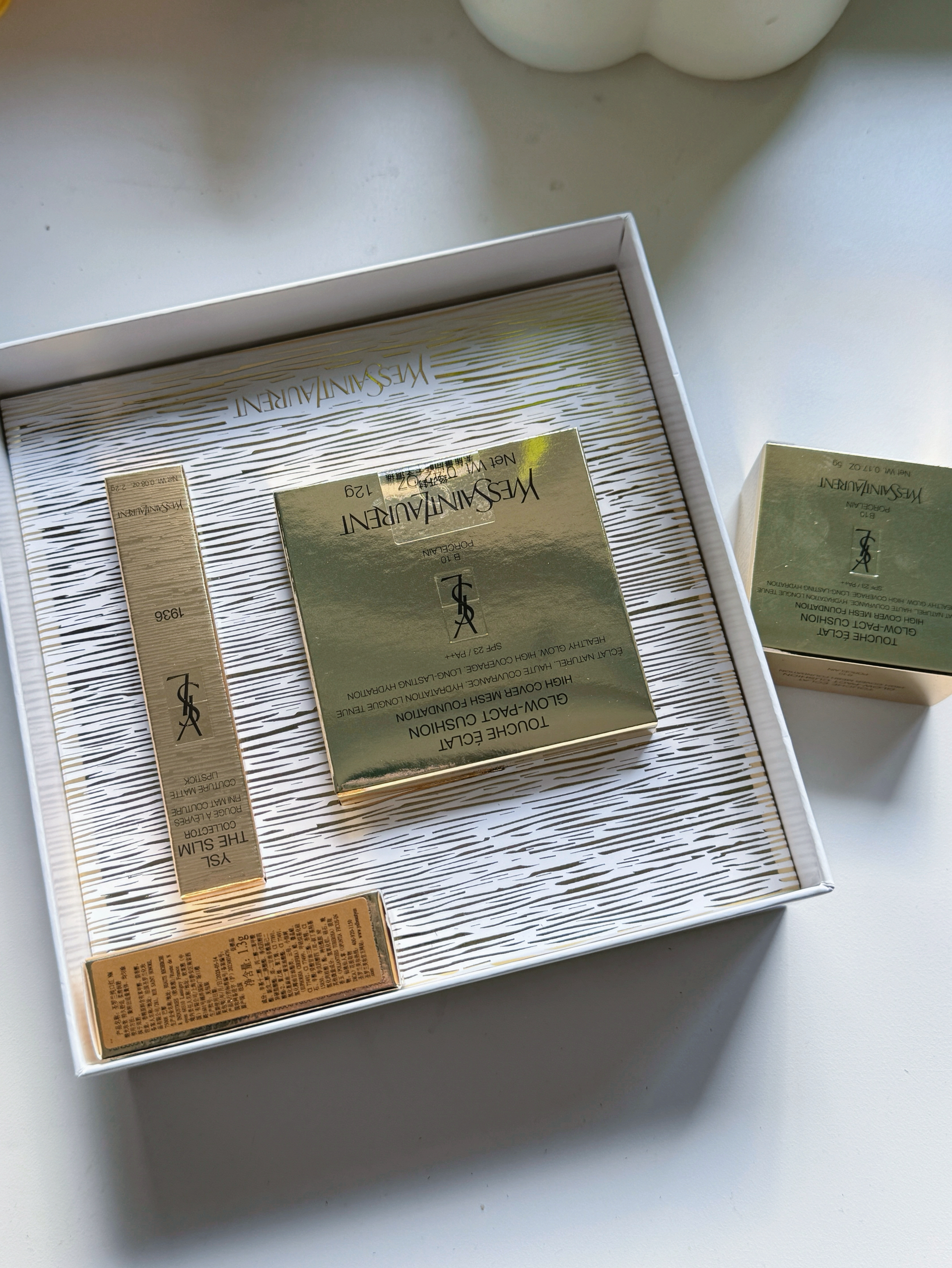 这个银河引力场礼盒真的有吸引到我 光这个包装就闪闪发光✨ 里面也是满满当当的一盒子 有三支唇部产品 眼影 腮红棒 香薰 帆布包 梳子 吸油纸 折叠扇 真的很齐全 而且这些色号都是那种蛮日常的 很适合那种温柔的韩女妆✅ 我真的超爱的好吧……